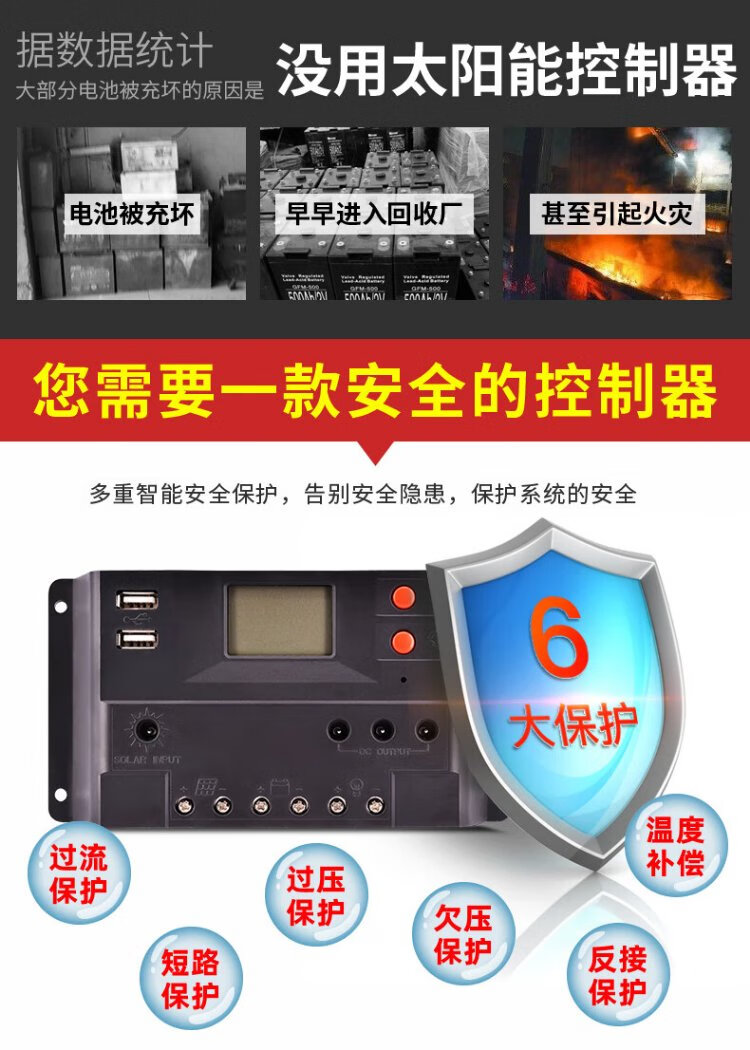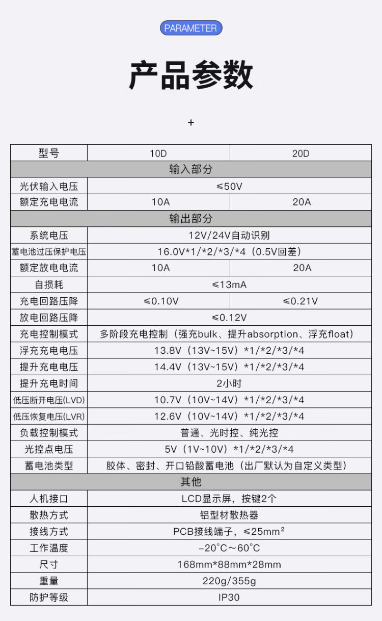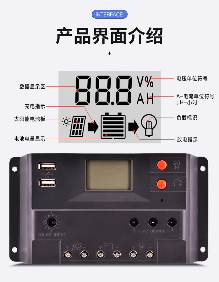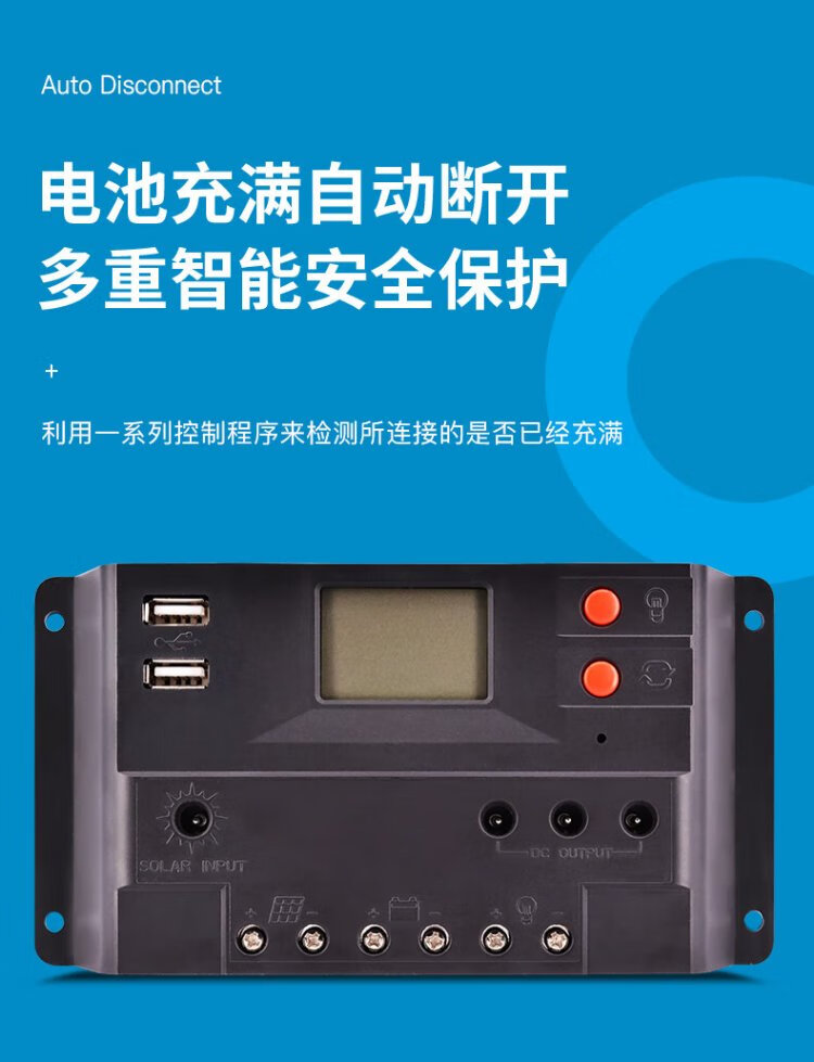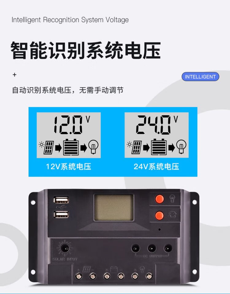 Jingbiao smart solar photovoltaic power generation panel battery charging PWM controller discharge controller fully automatic universal 12V24V10A 10A 12V/24V