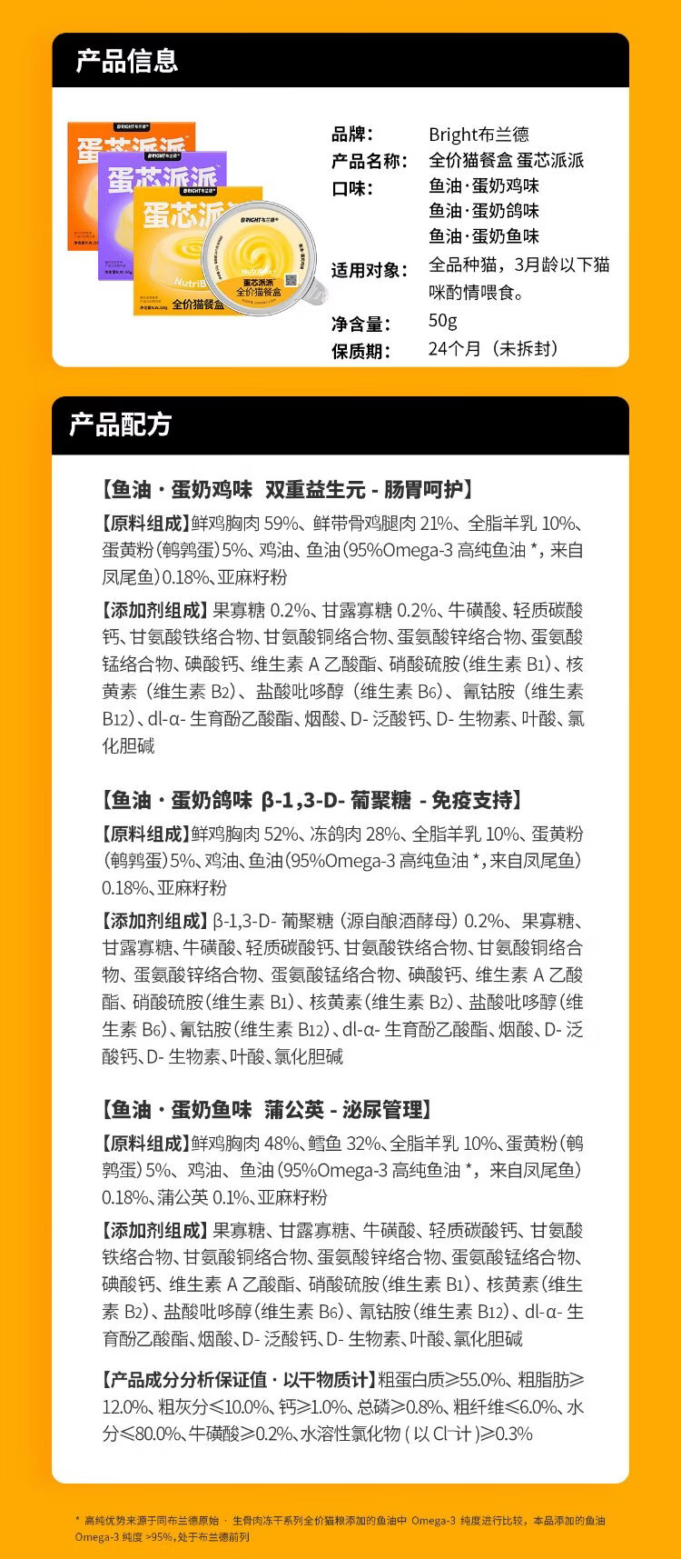 Brand Egg Core Pie Full Price Cat Staple Food Meal Box Goat Milk Fish Oil Meal Pack Wet Food Fish Oil Egg Milk Chicken Flavor 50g