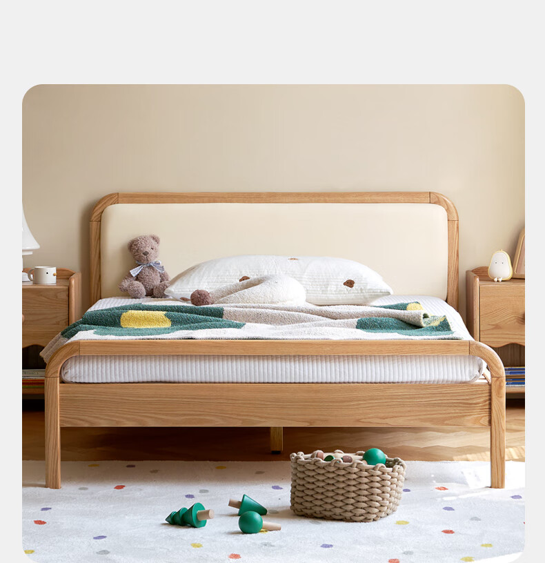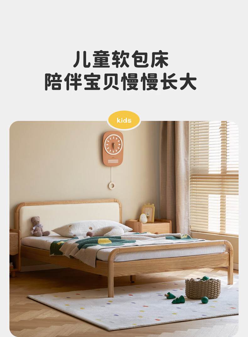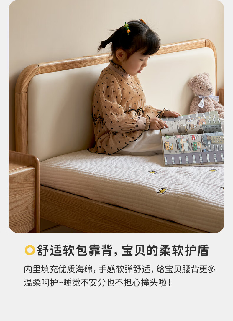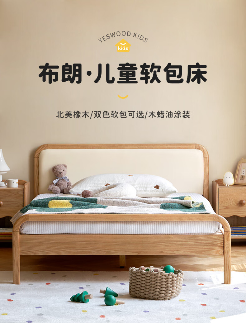 Genji Muyu solid wood children's bed soft package bed teen small bed boy single bed princess bed 1.5*2m (milky white soft package)