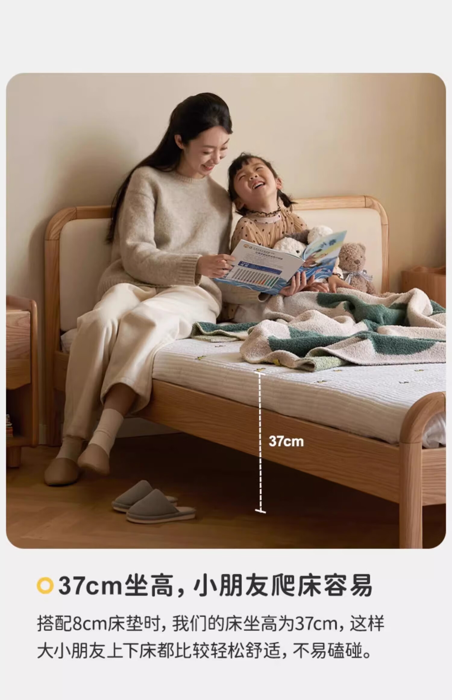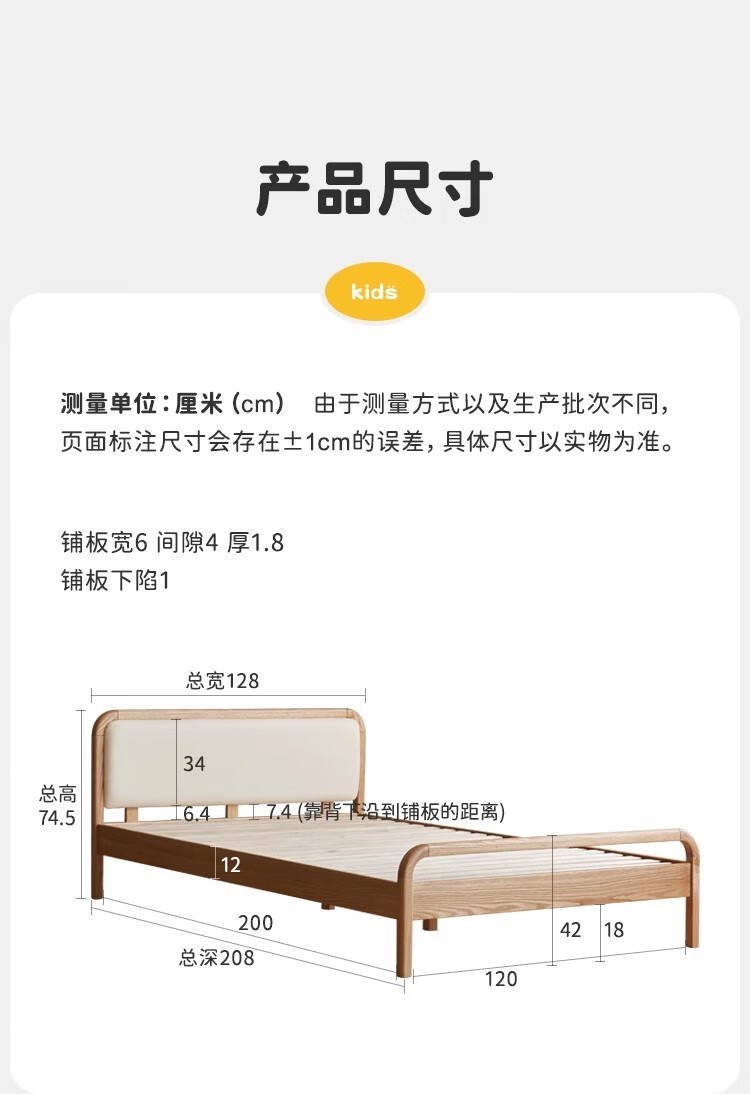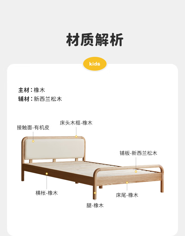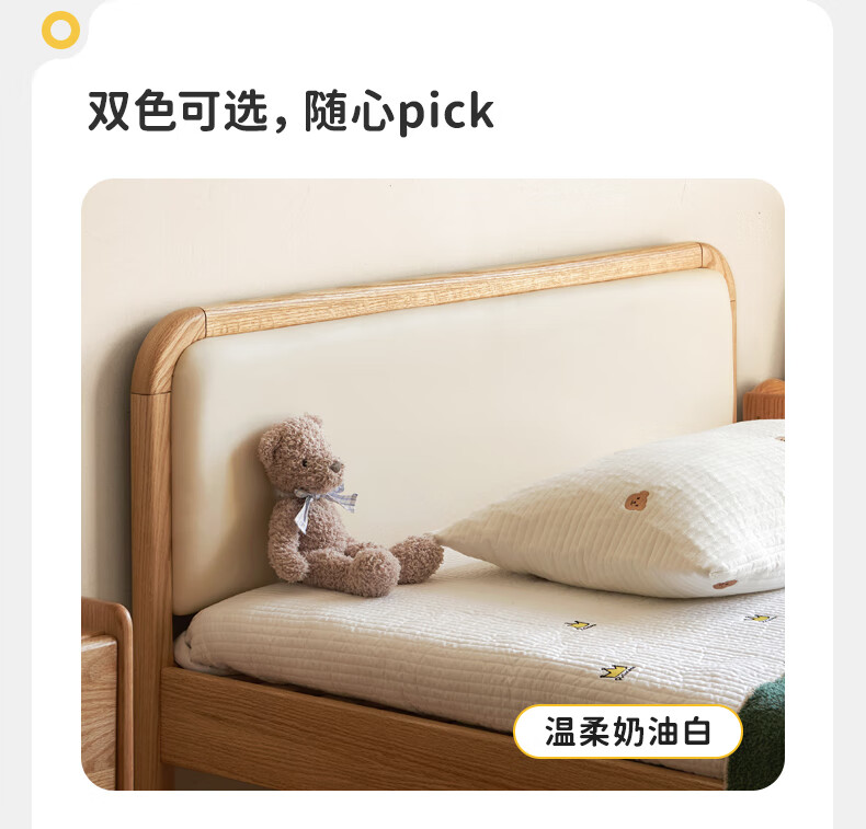 Genji Muyu solid wood children's bed soft package bed teen small bed boy single bed princess bed 1.5*2m (milky white soft package)