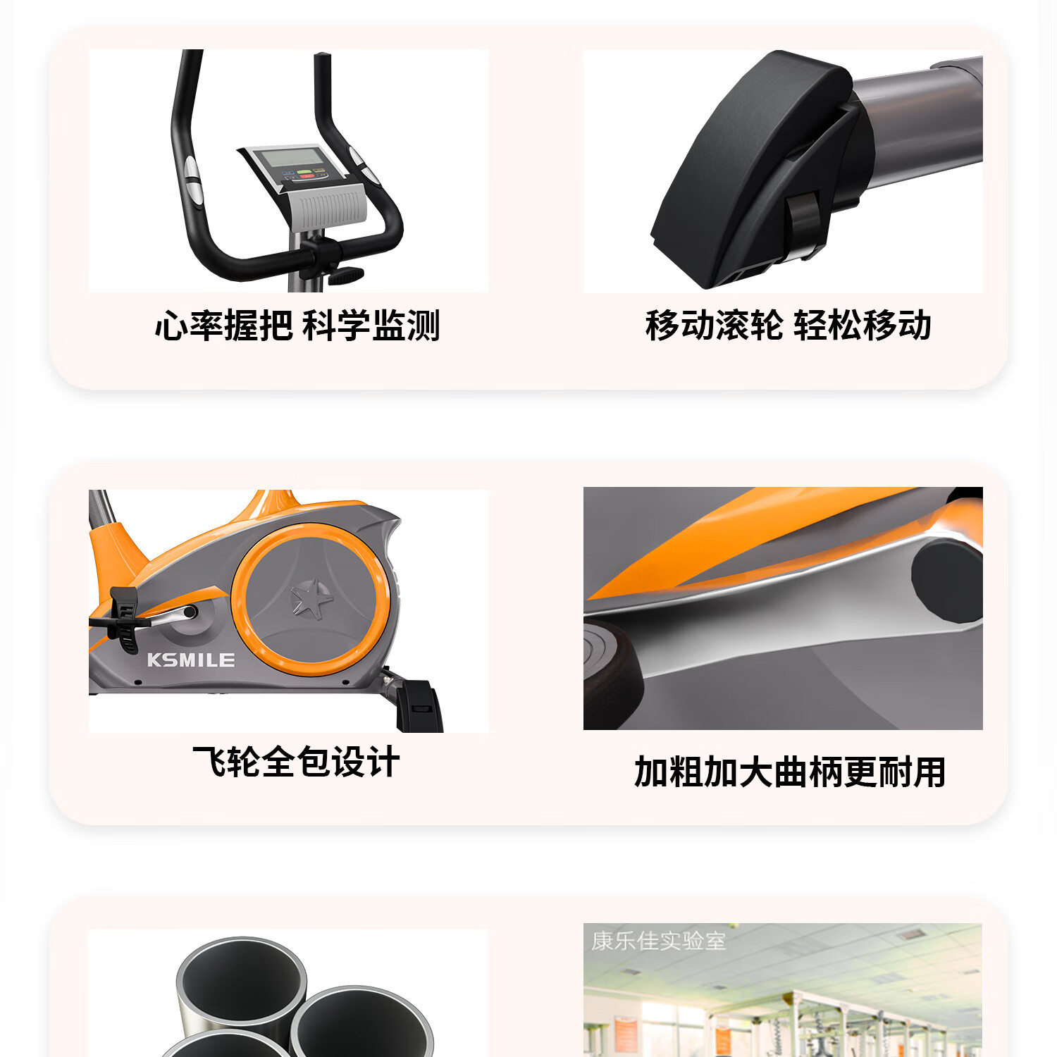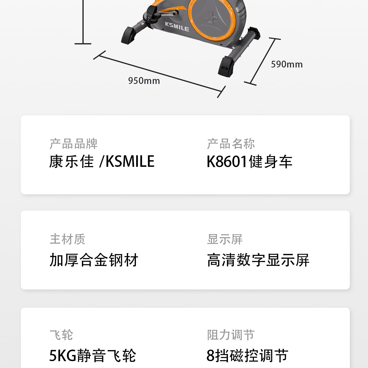 Kanglejia Home Exercise Bike Magnetic Control Spin Bike Bicycle Sports Fitness Equipment for Middle-aged and Old People K8601 Gray with Orange - Delivery Upstairs
