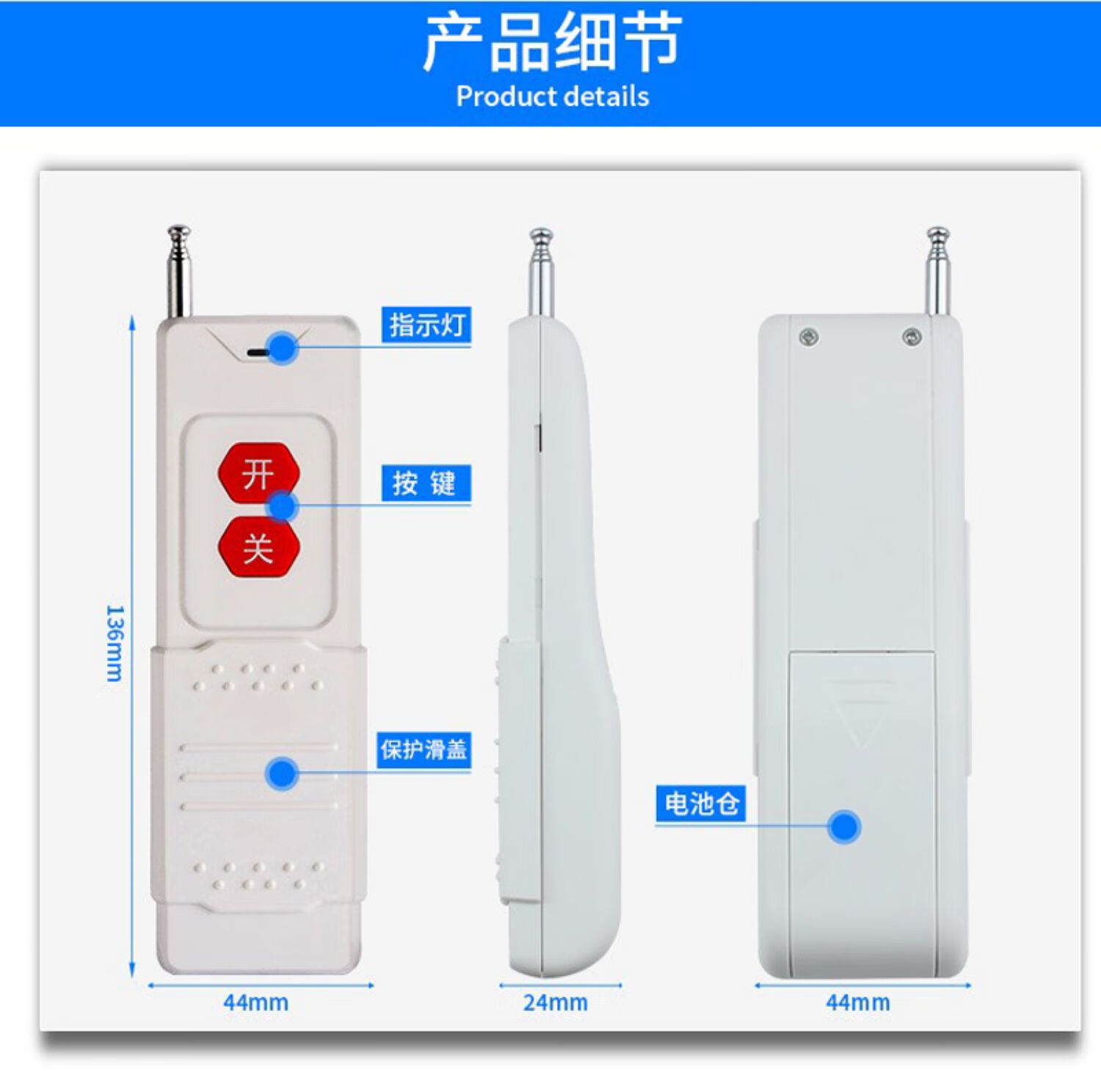 Puffin remote control limit switch battery 3000m high-power two-button remote control rechargeable lithium battery 2-button new 3000m remote control
