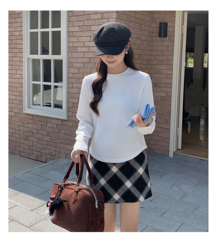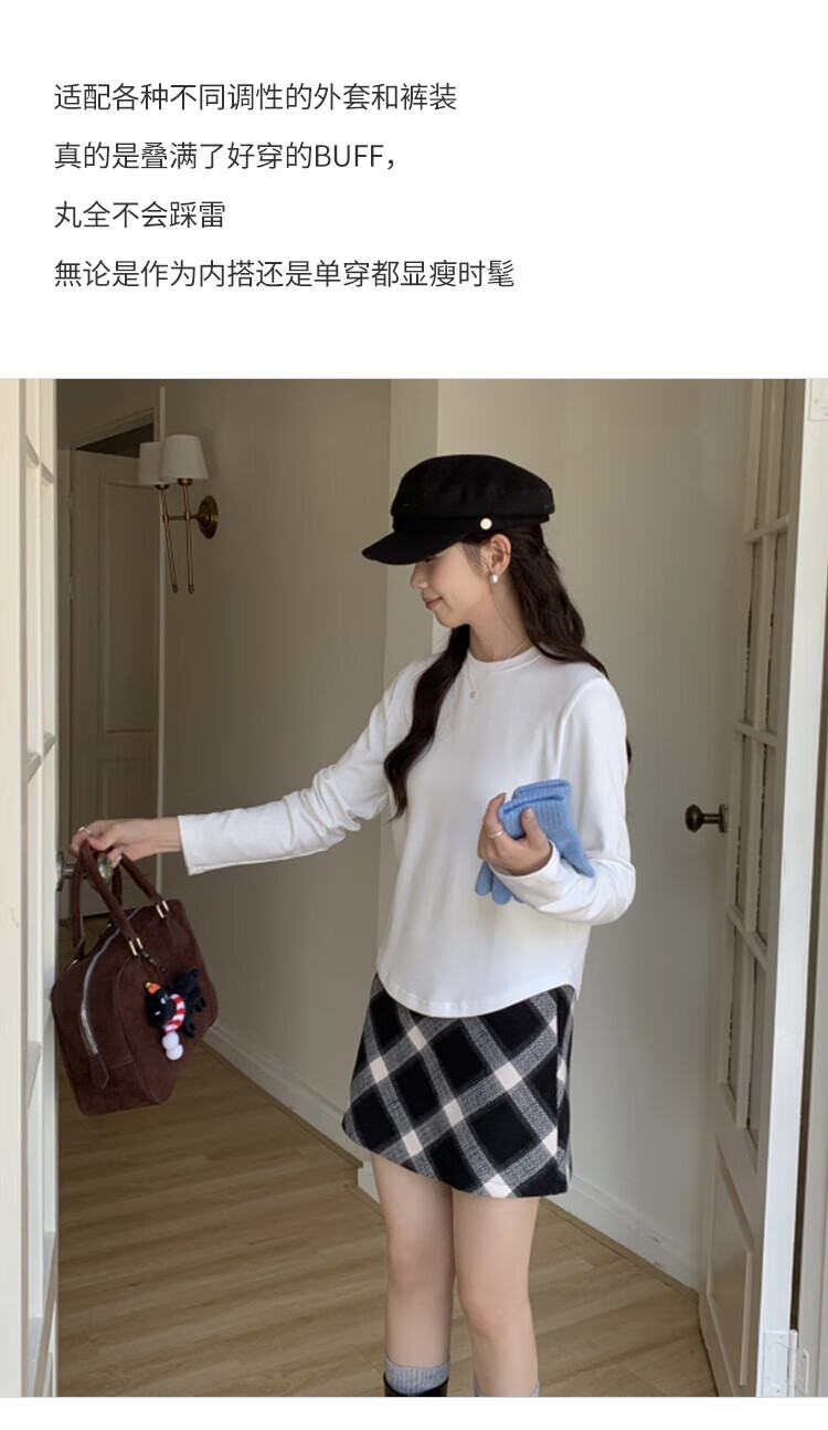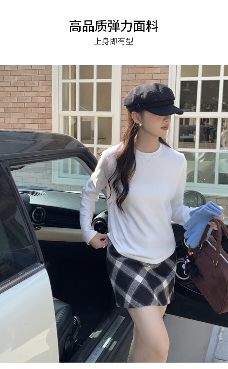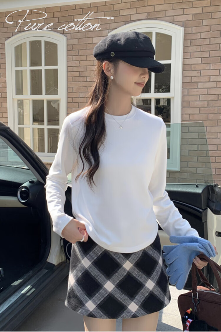 Odyfen bottoming shirt for women 100% cotton autumn and winter comfortable and skin-friendly solid color round neck versatile long-sleeved T-shirt underwear white M