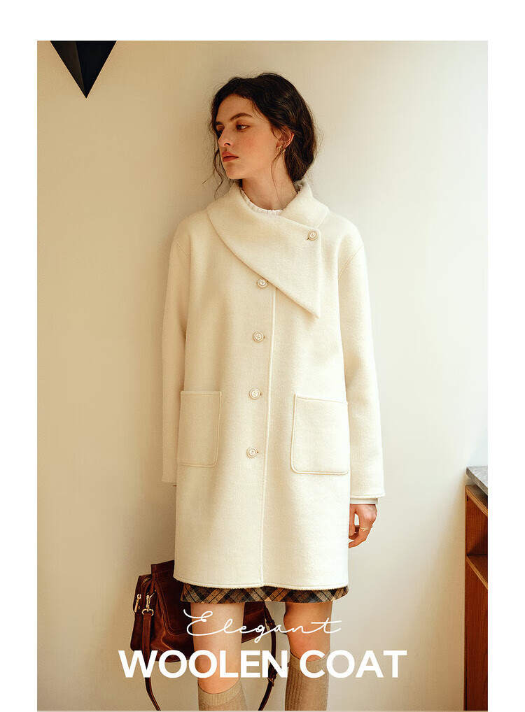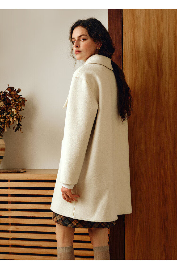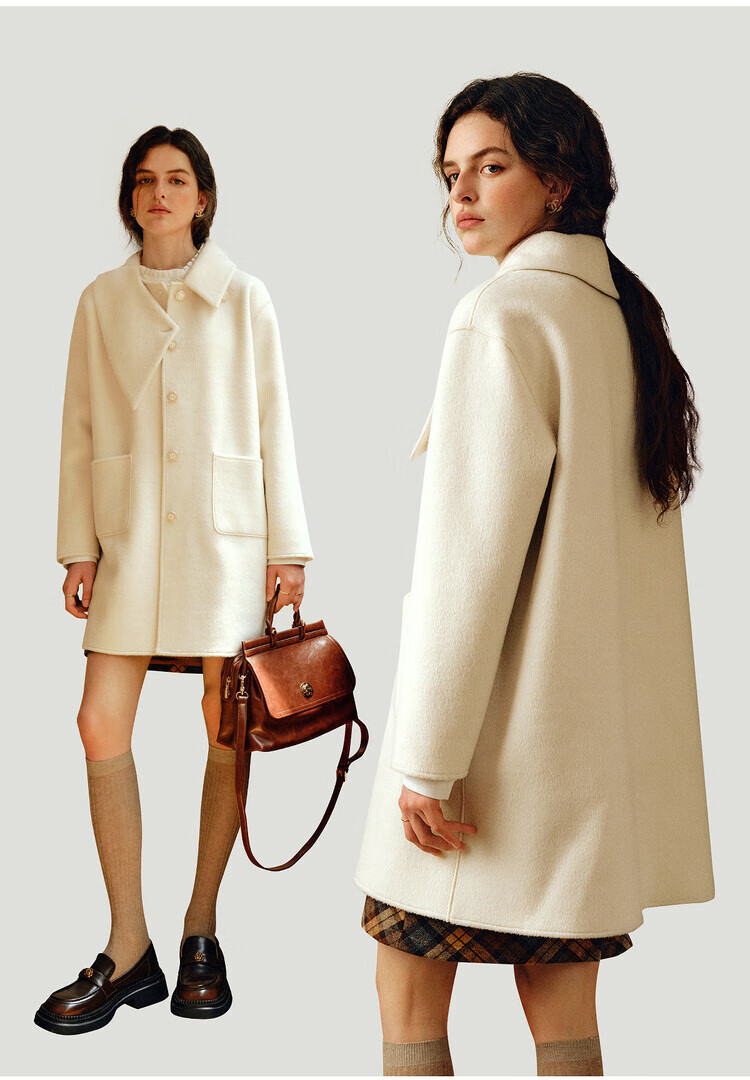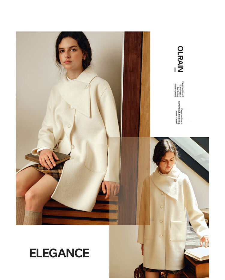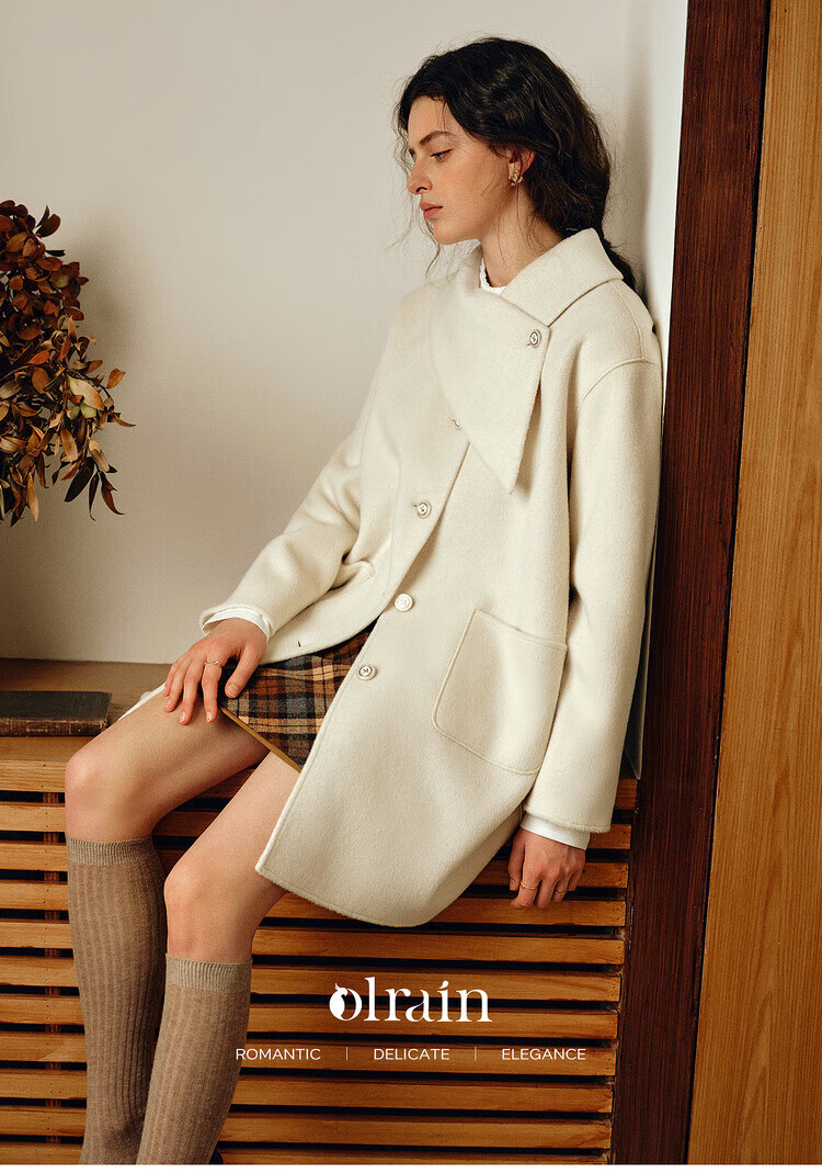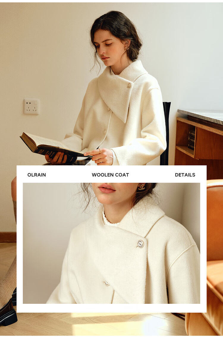 Olrain casual commuting double-sided woolen winter women's design collar loose warm jacket off-white S