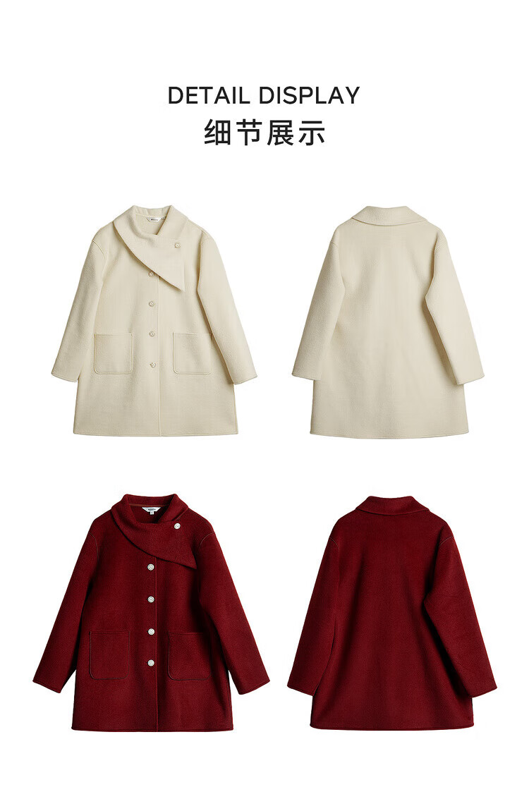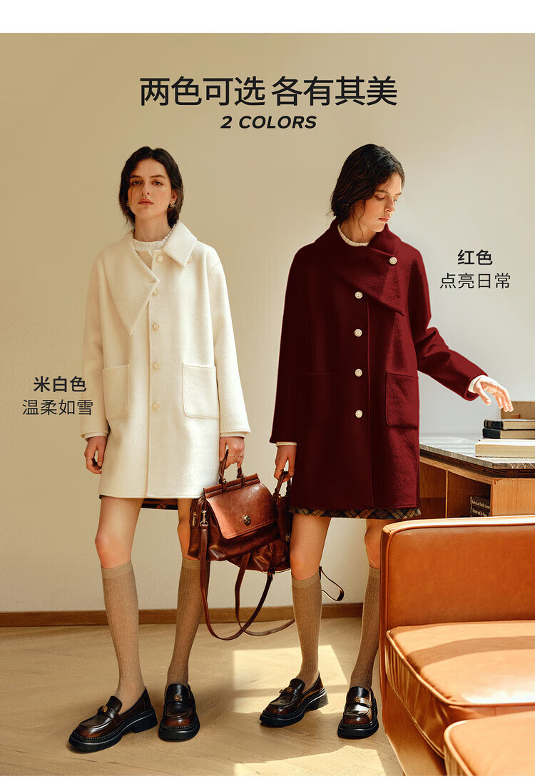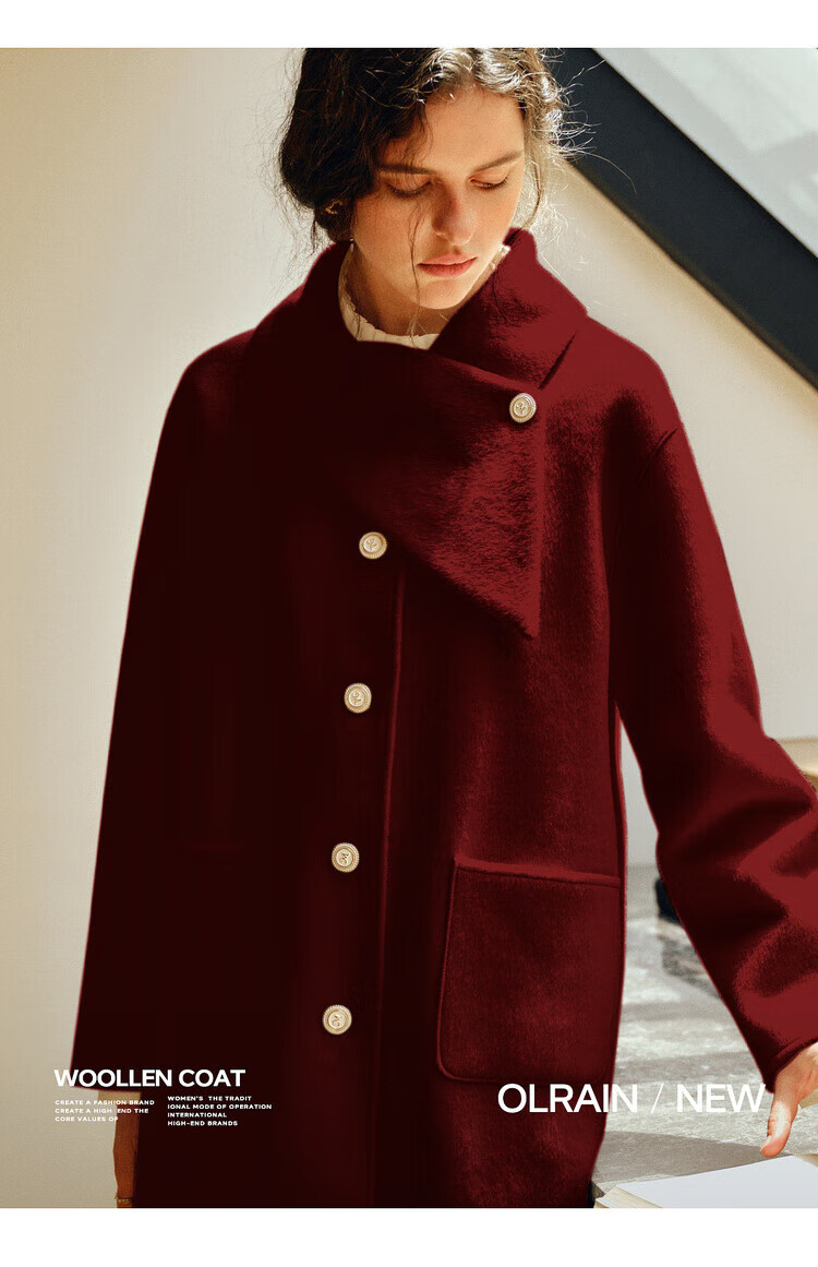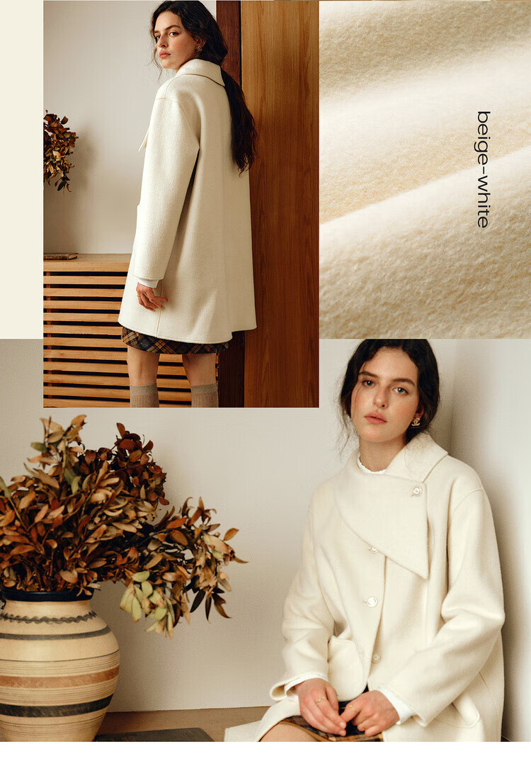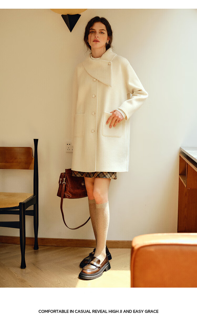 Olrain casual commuting double-sided woolen winter women's design collar loose warm jacket off-white S