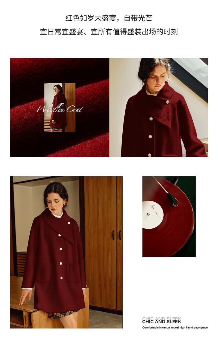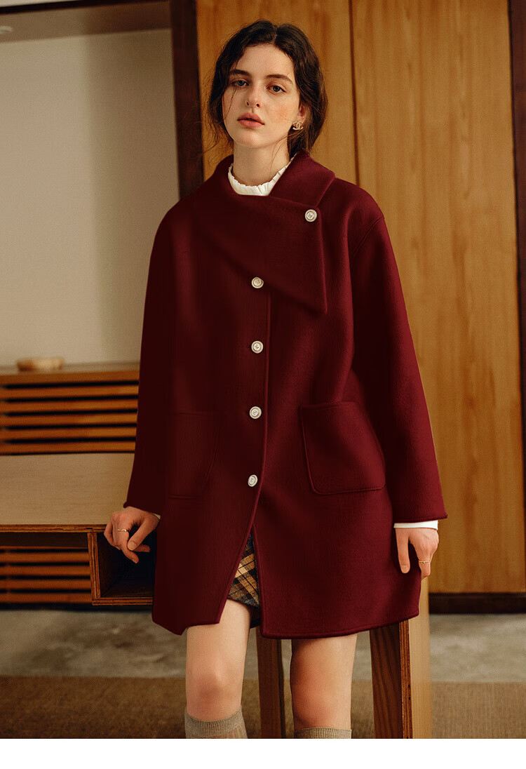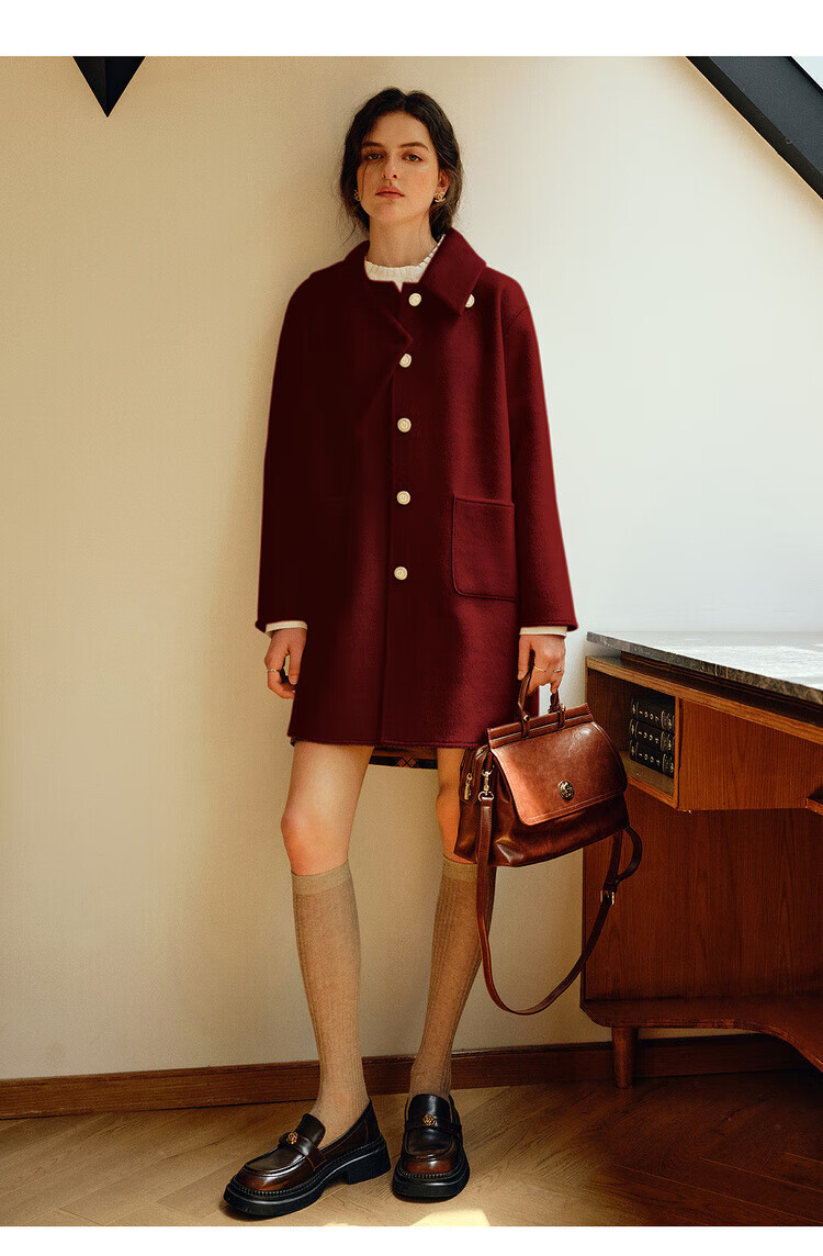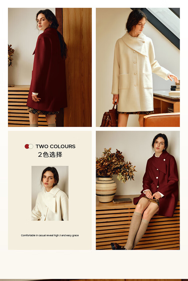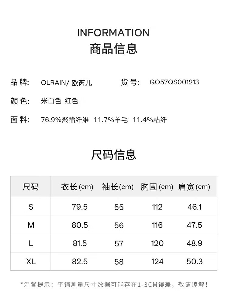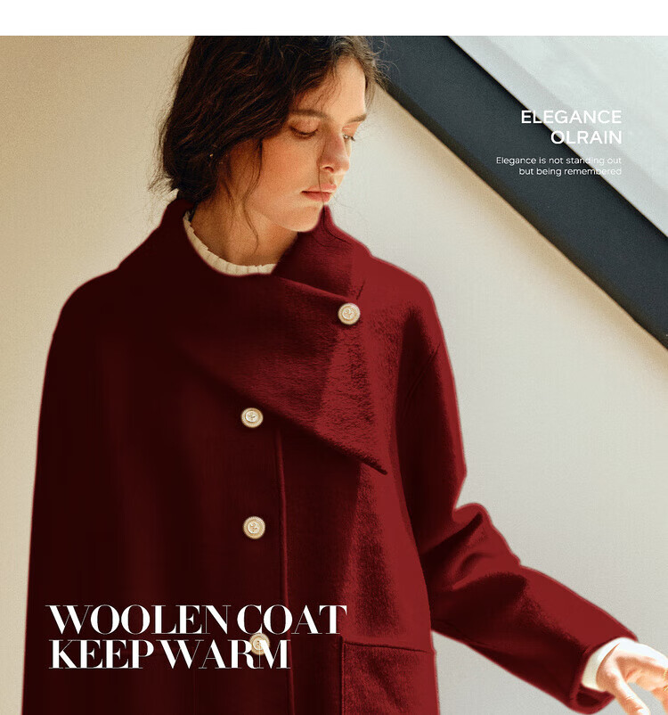 Olrain casual commuting double-sided woolen winter women's design collar loose warm jacket off-white S