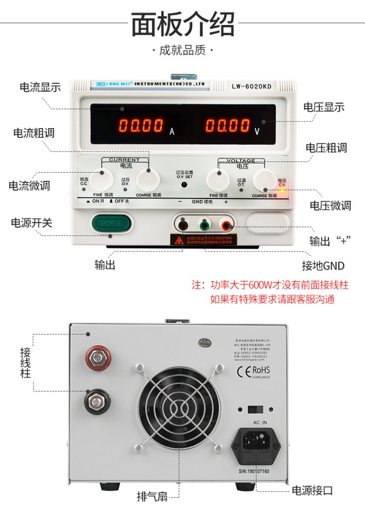 Longwei Hong Kong controllable high-precision DC regulated power supply LW-6020KD digital display high-power switching power supply 60V20A LW-6020KD 60V20A four-digit display switching power supply