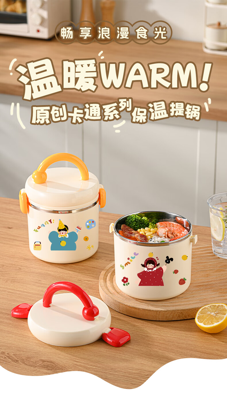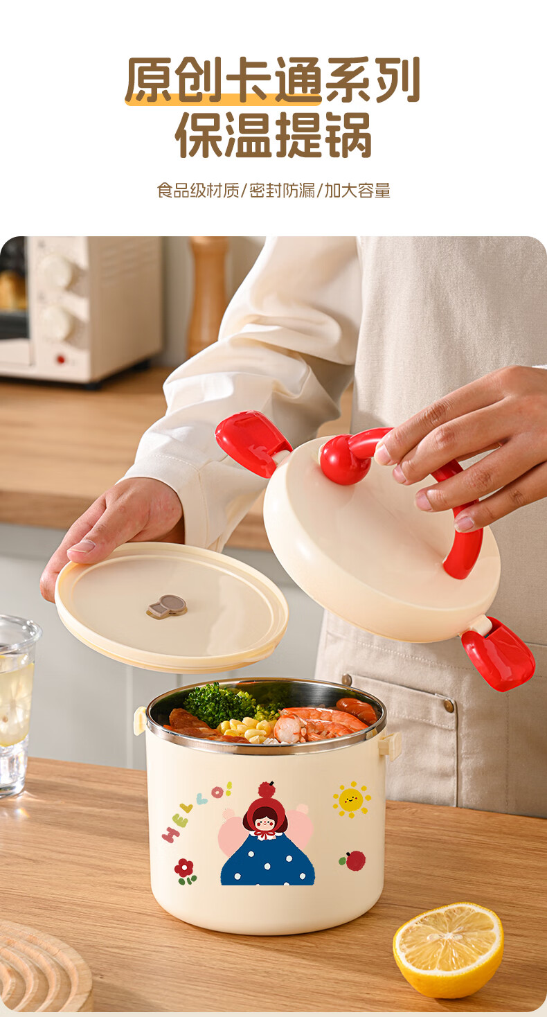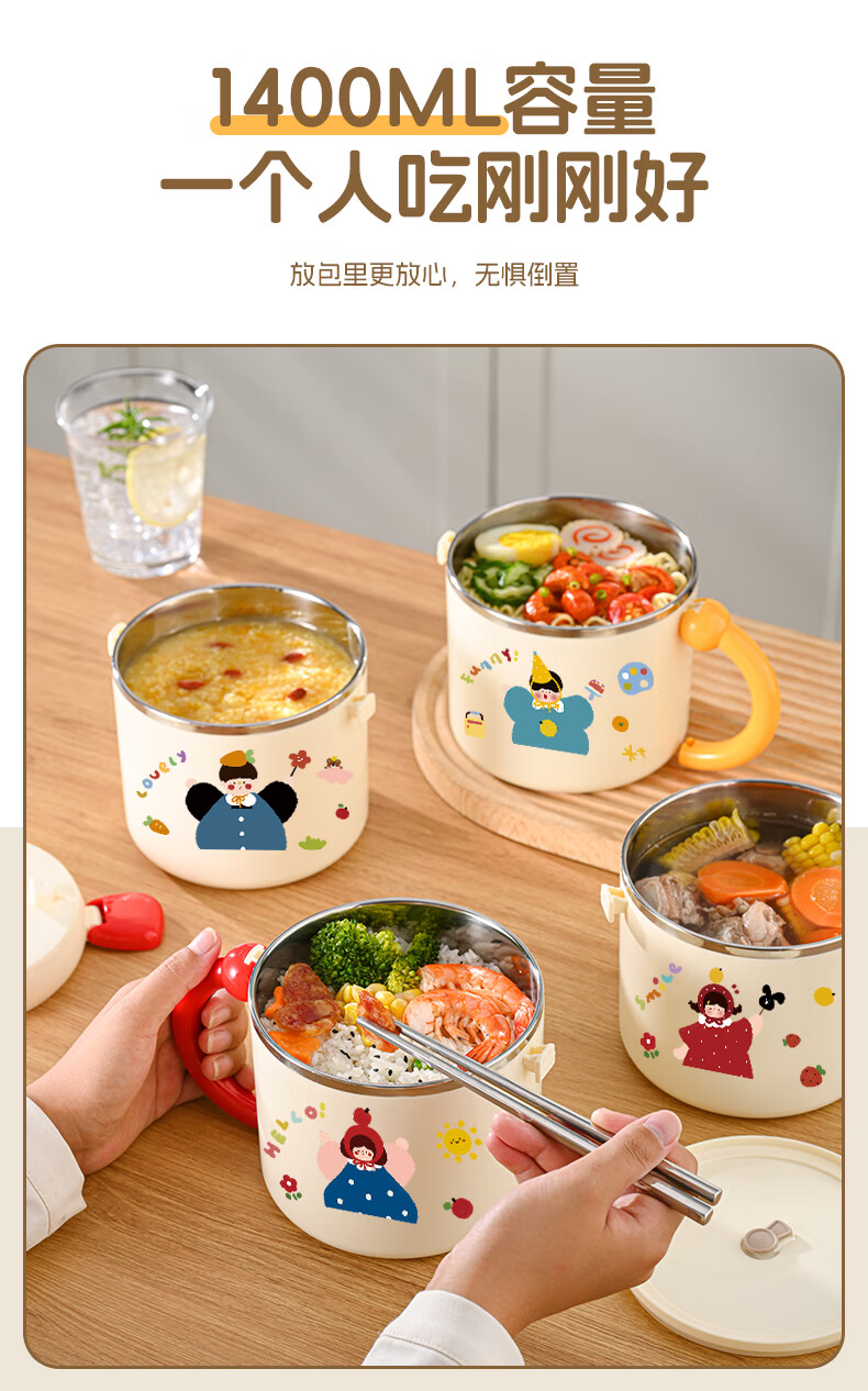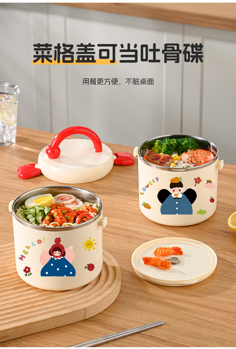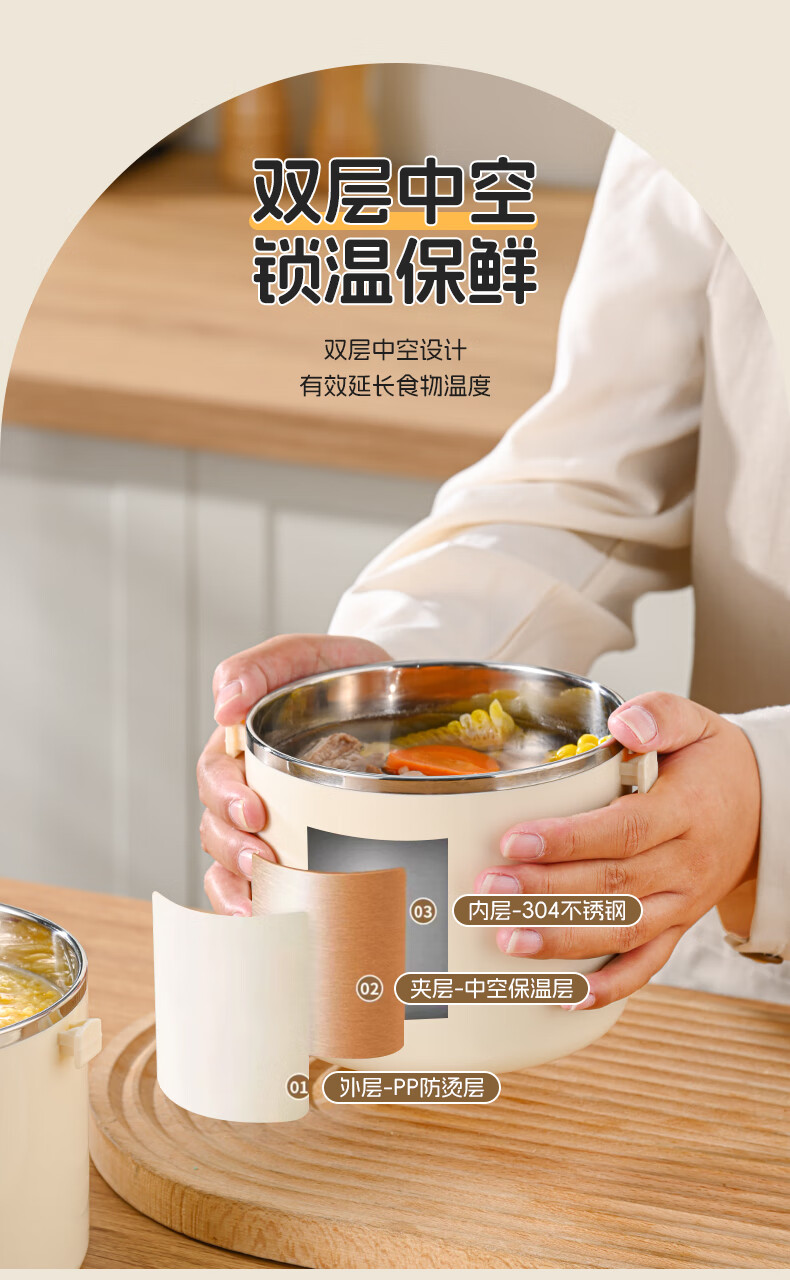 COOKSS insulated lunch box bucket 304 stainless steel office worker insulated bucket can be microwaved student lunch box bucket soup bowl