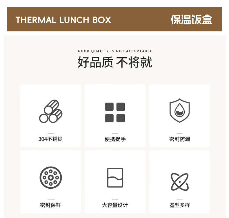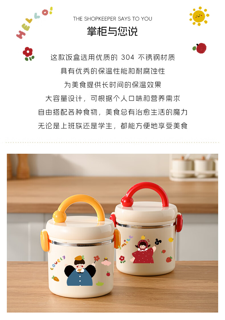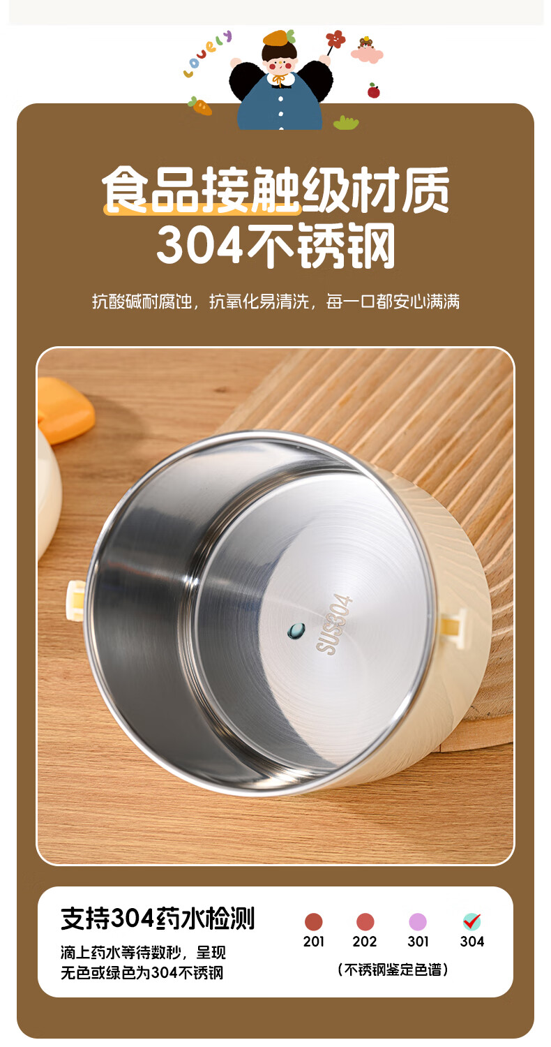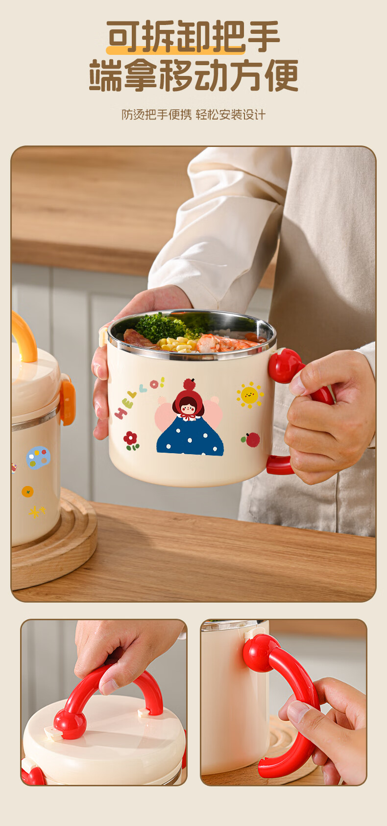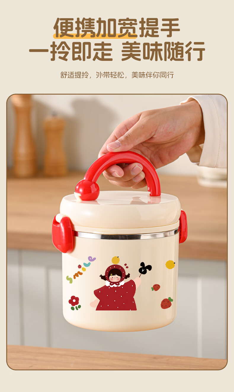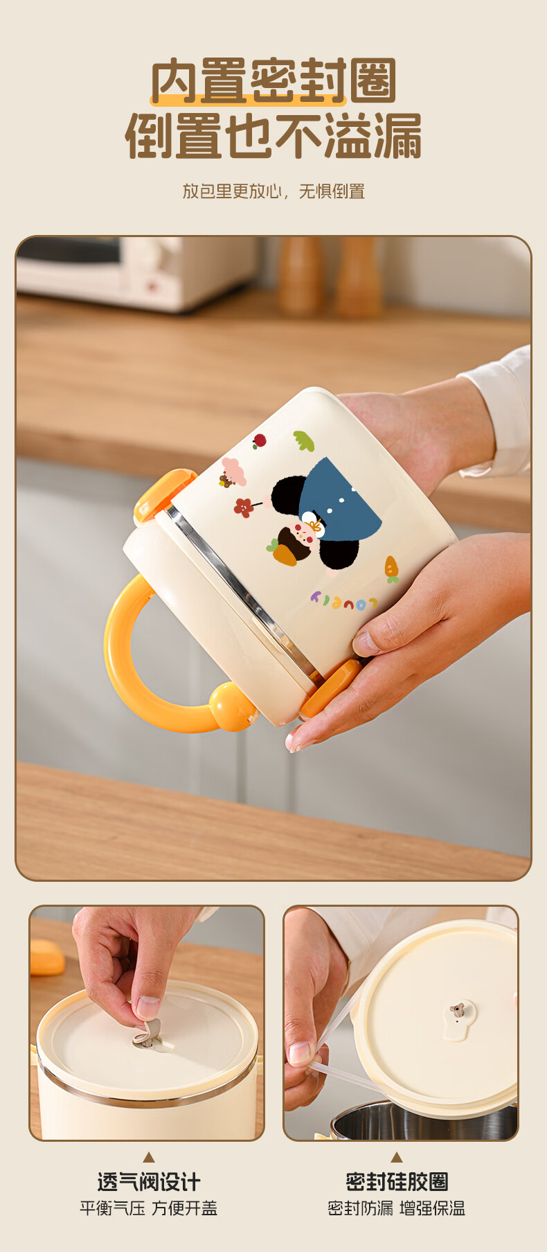 COOKSS insulated lunch box bucket 304 stainless steel office worker insulated bucket can be microwaved student lunch box bucket soup bowl