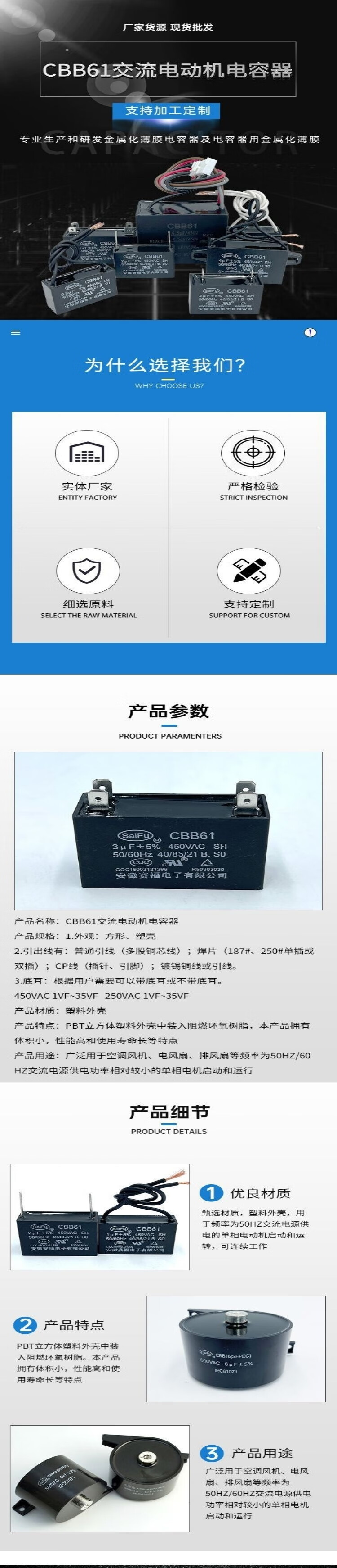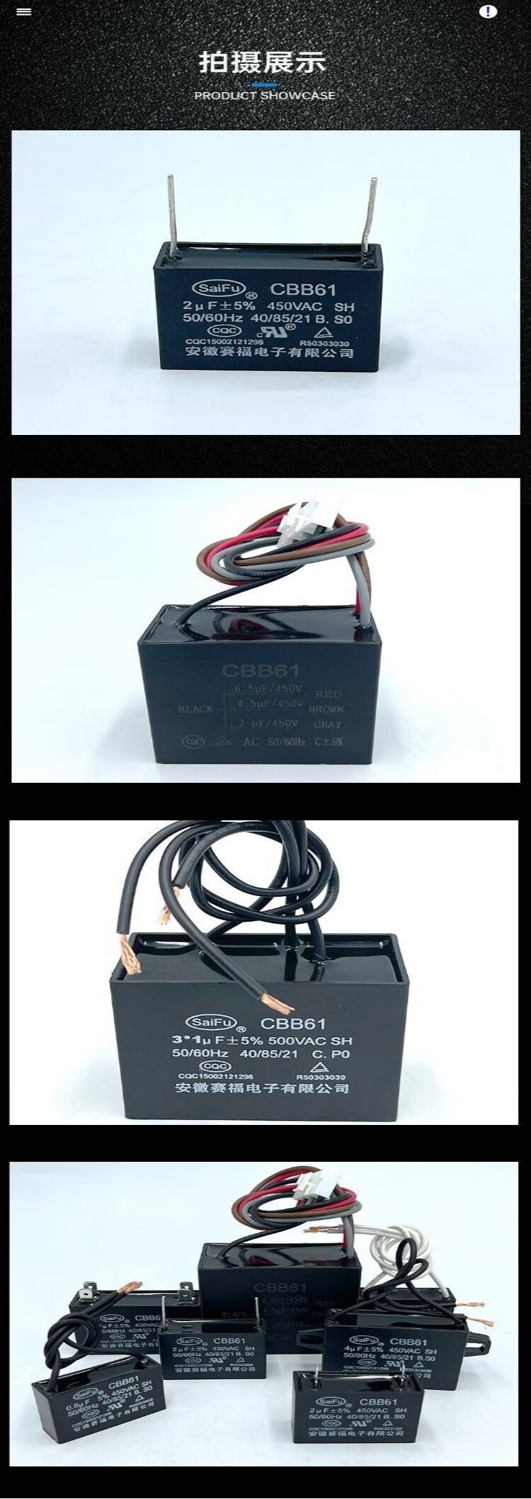 SaiFu CBB61 electric fan starting capacitor, air conditioner starting capacitor, Class B 450V universal, floor fan, ceiling fan range hood, wiring type 1UF (1 piece comes with wiring cap)