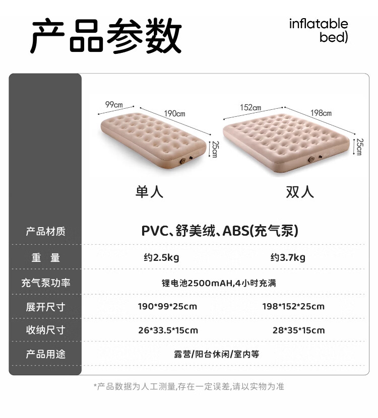 Quluying automatic inflatable bed two-way pump car-mounted self-driving camping air mattress single model-40cm thick
