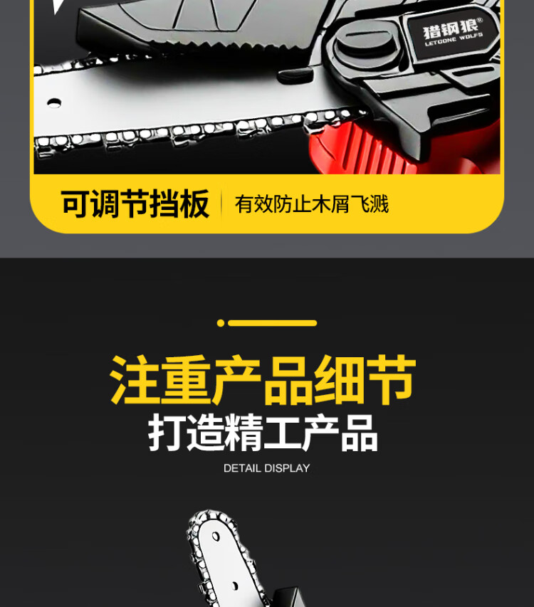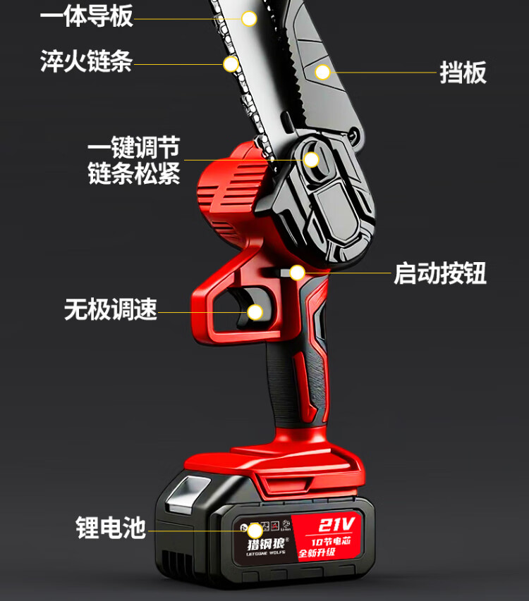 Letgone wolves handheld lithium-ion electric chain saw single-handed saw rechargeable household chainsaw small wireless electric outdoor logging saw