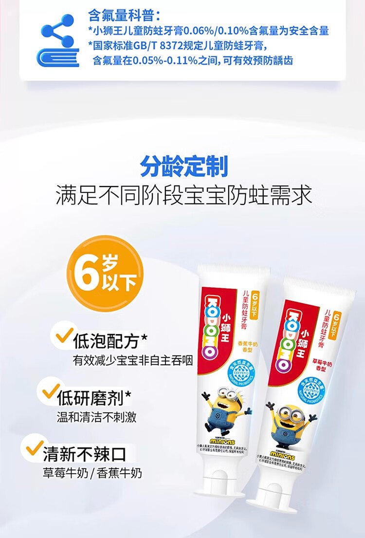 Lion King Little Lion King Children's Anti-moth Toothpaste 1-6 years old (Banana Milk) 50g Minion Anti-moth Toothpaste is on clearance.