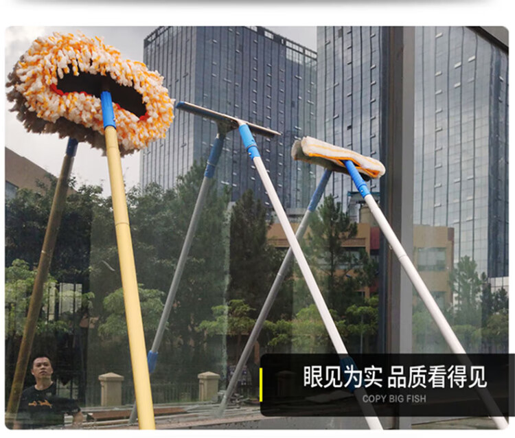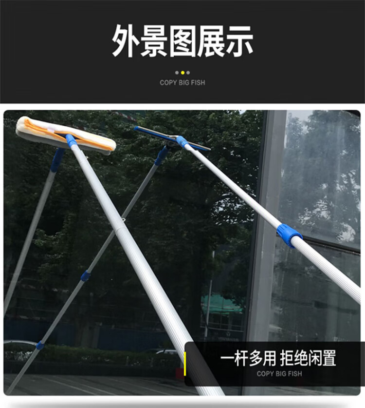 Yigongding Aluminum alloy glass scraper multi-functional removable telescopic pole glass wiper window wiper 1.2m three-piece set