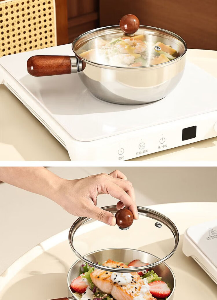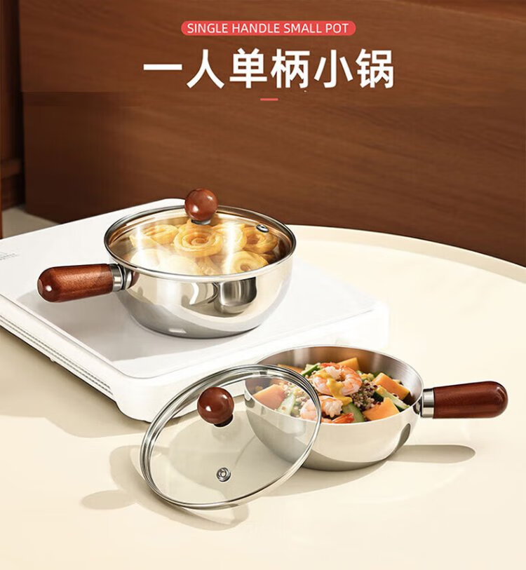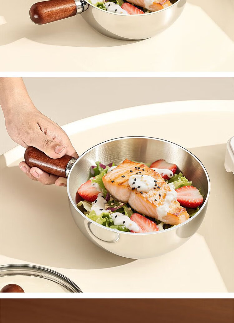 Dinner General stainless steel instant noodle bowl with lid, large size with wooden handle, Korean style home dormitory student rice bowl instant bowl