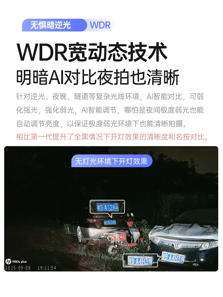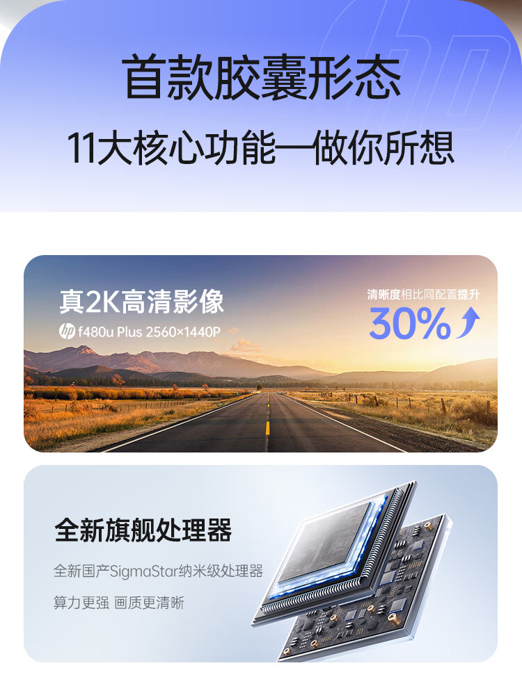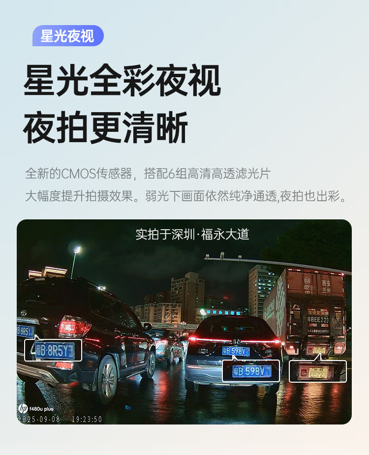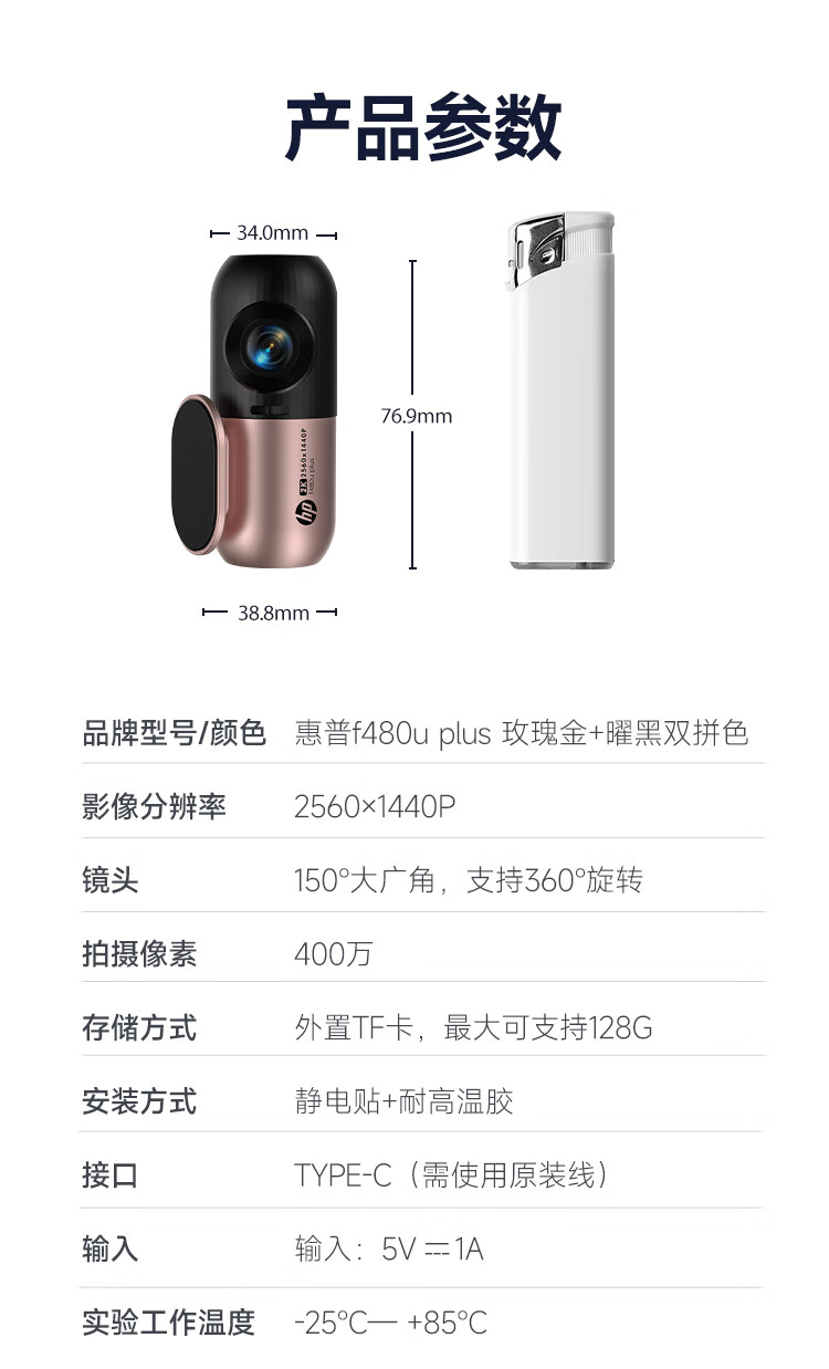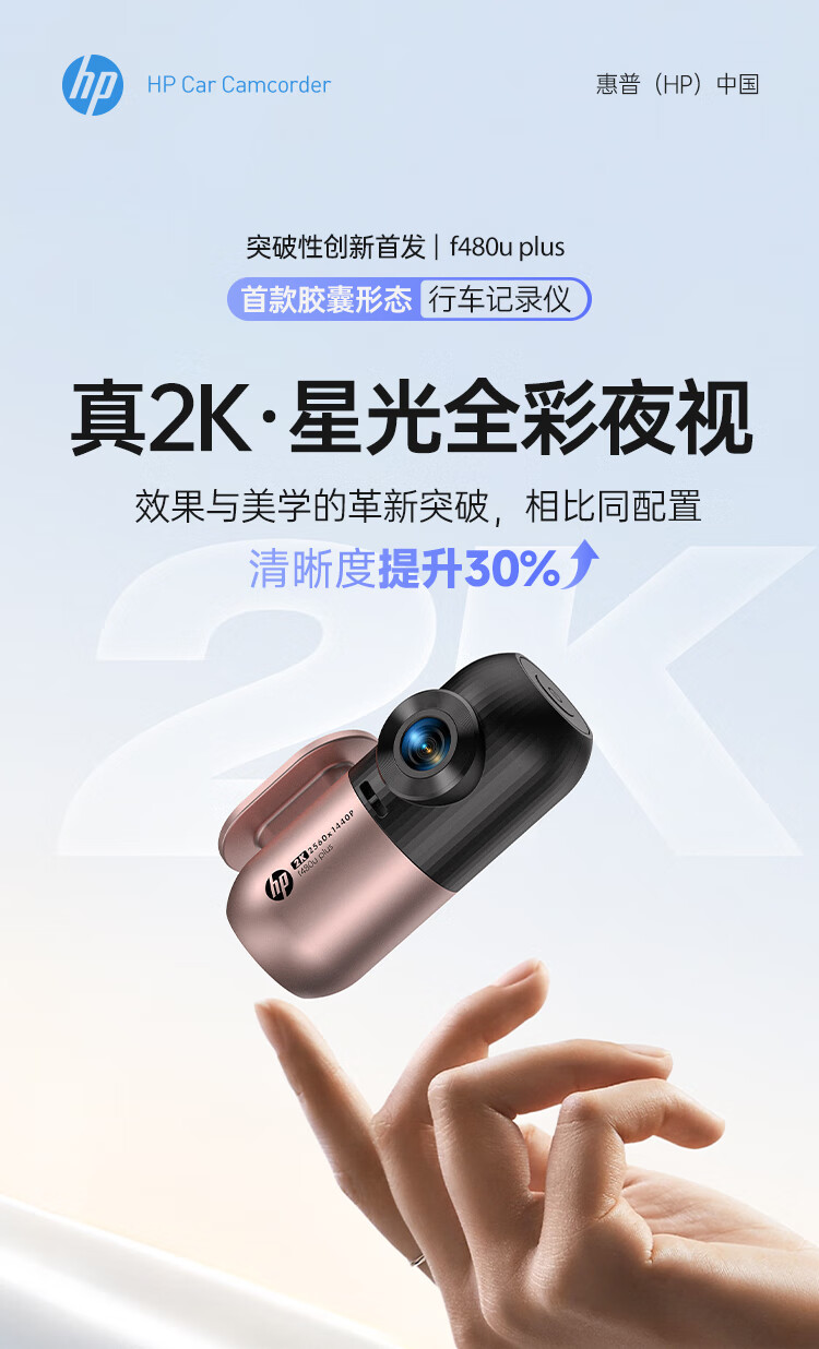 HP driving recorder f480u Plus 2K ultra-clear starlight night vision intelligent voice control 2025 new capsule type