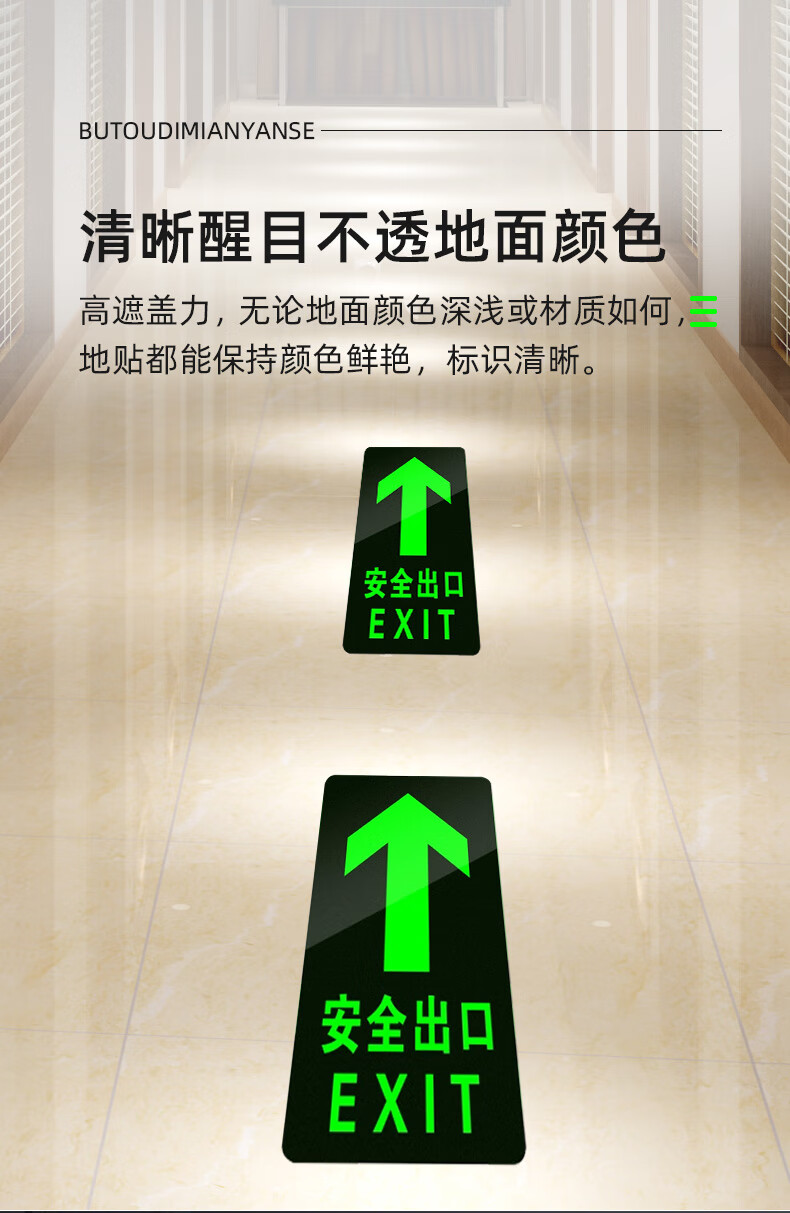 Cuttlefish safety exit turn right emergency evacuation sign fire safety warning ground sticker 14.5*29CM luminous guide sign