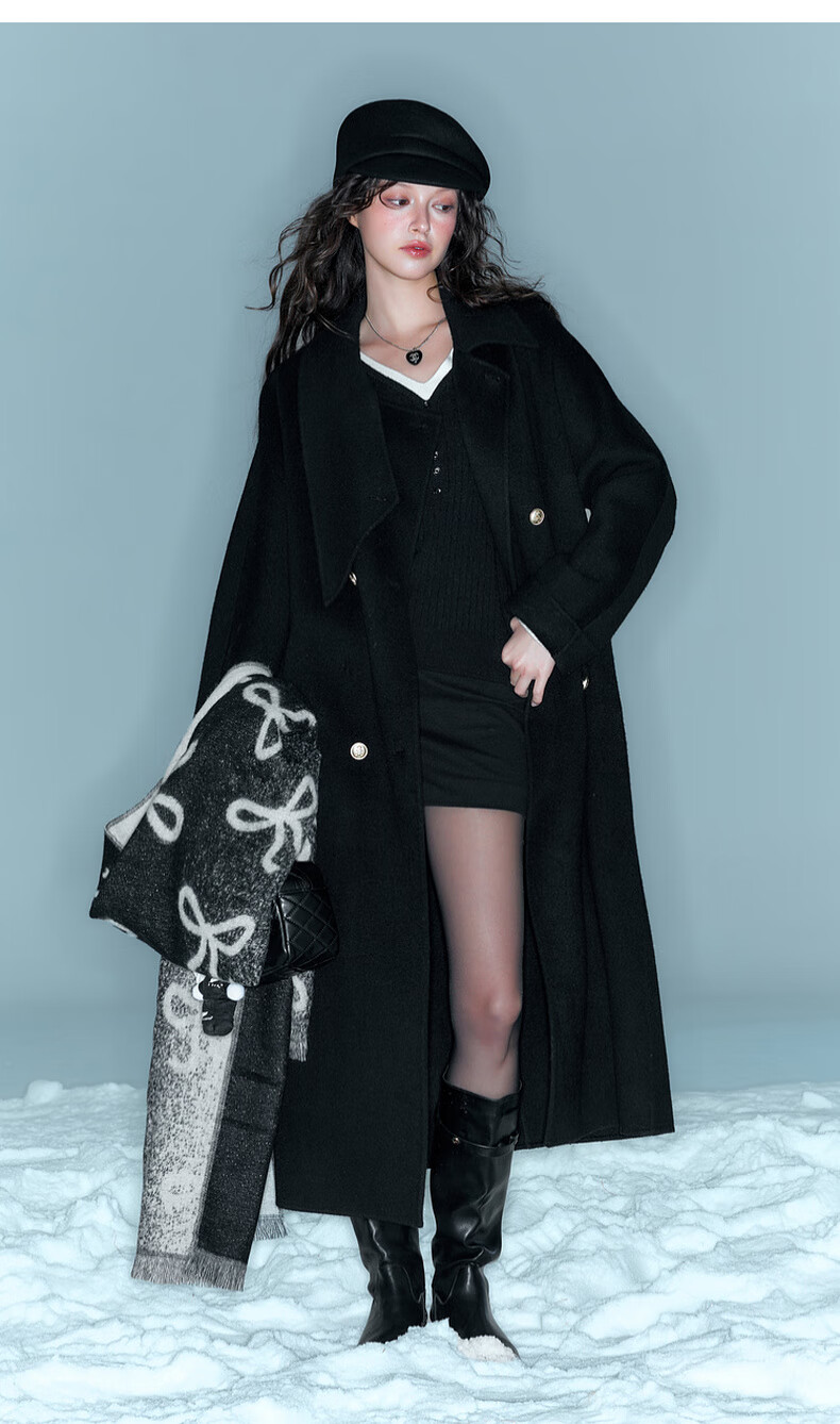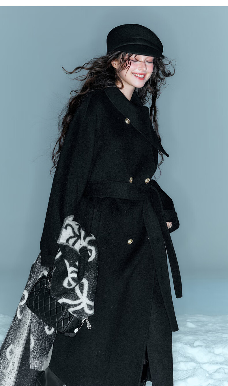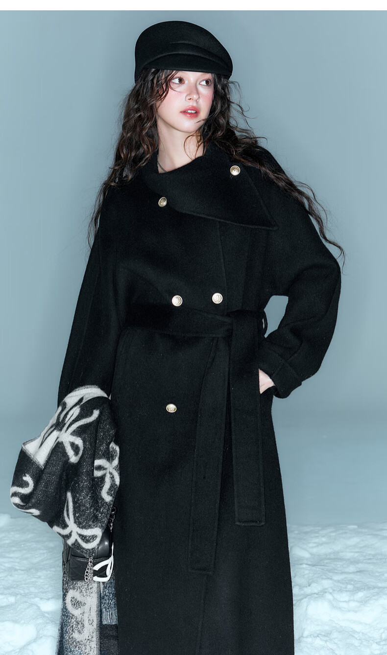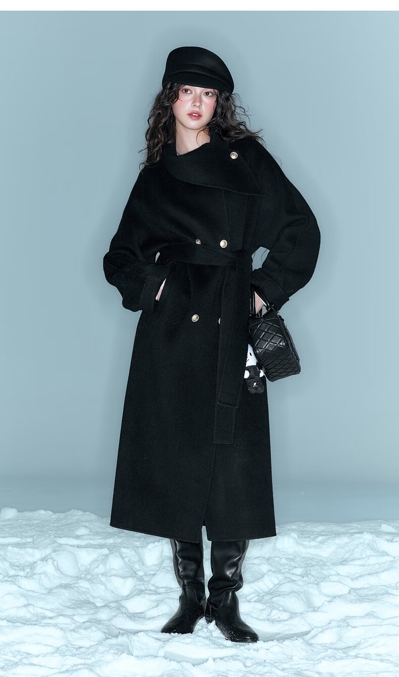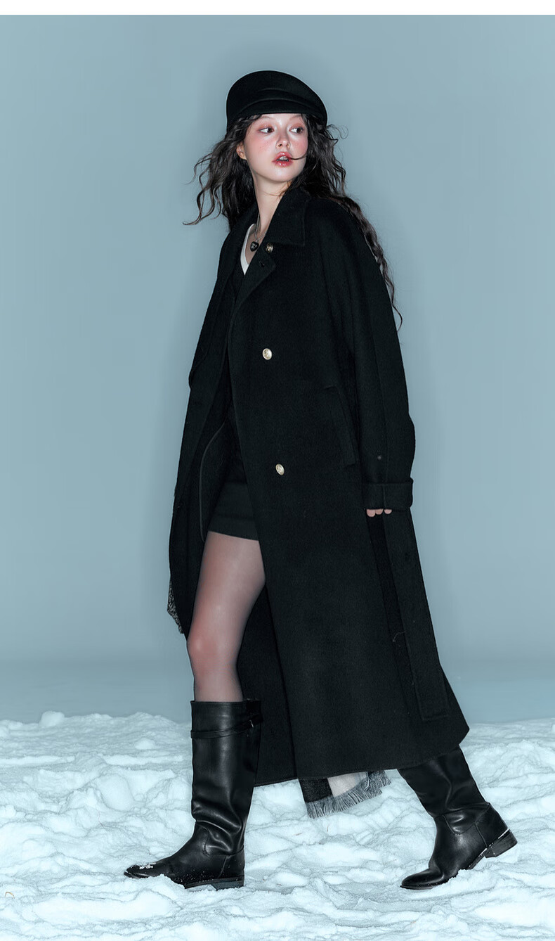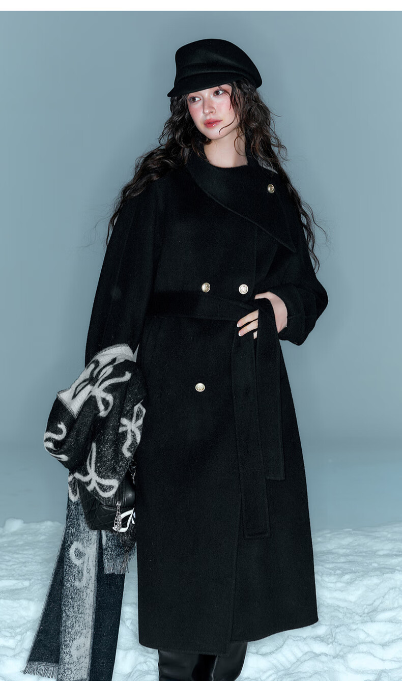 Sancai 2025 winter new double-sided woolen coat double-breasted long woolen coat F