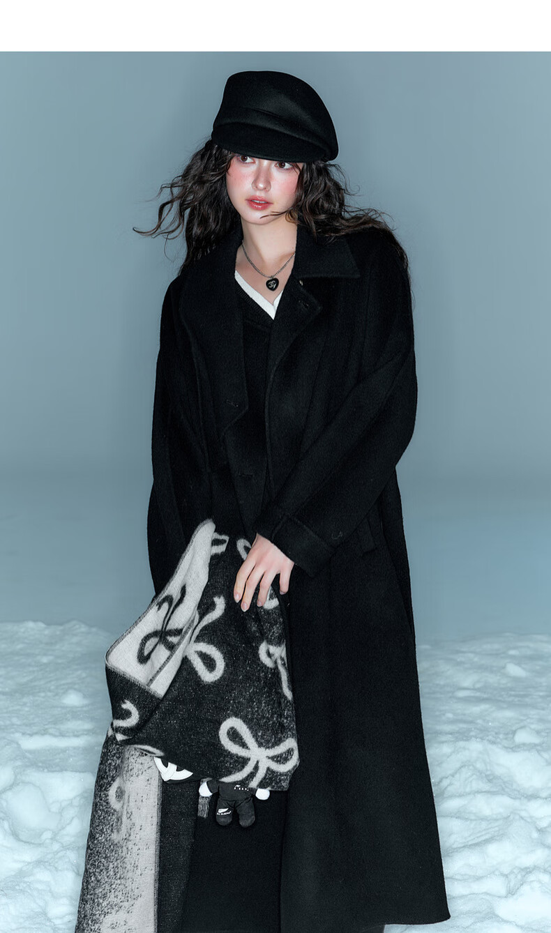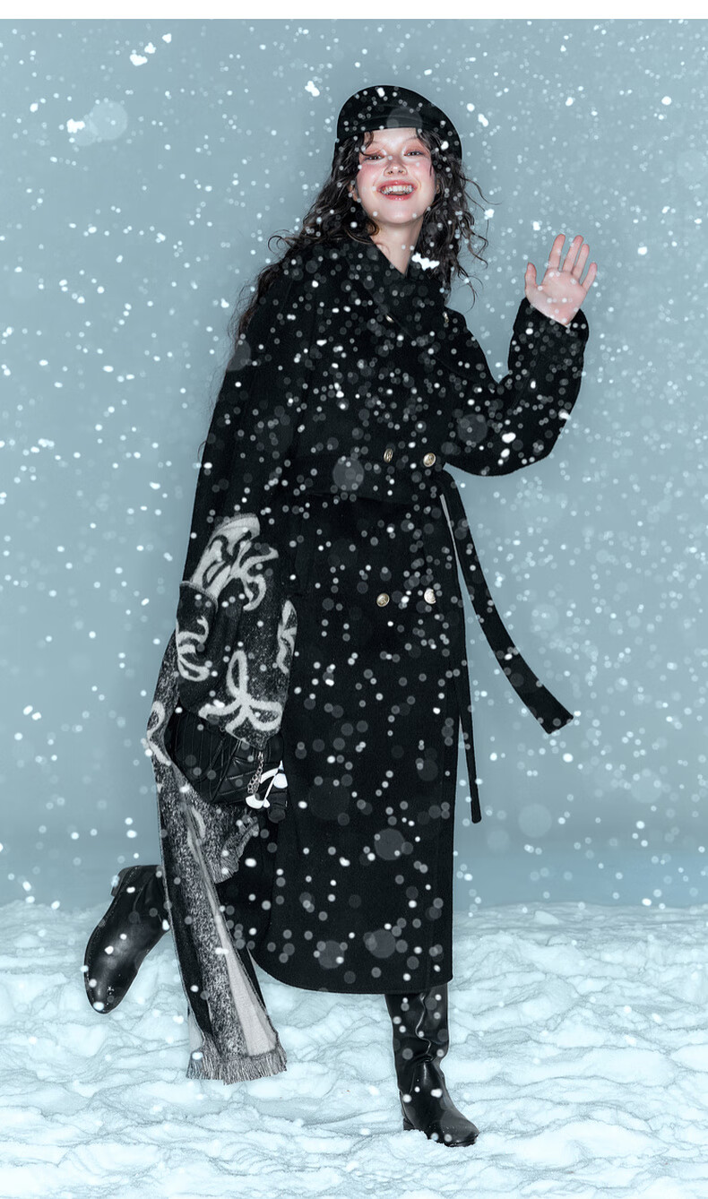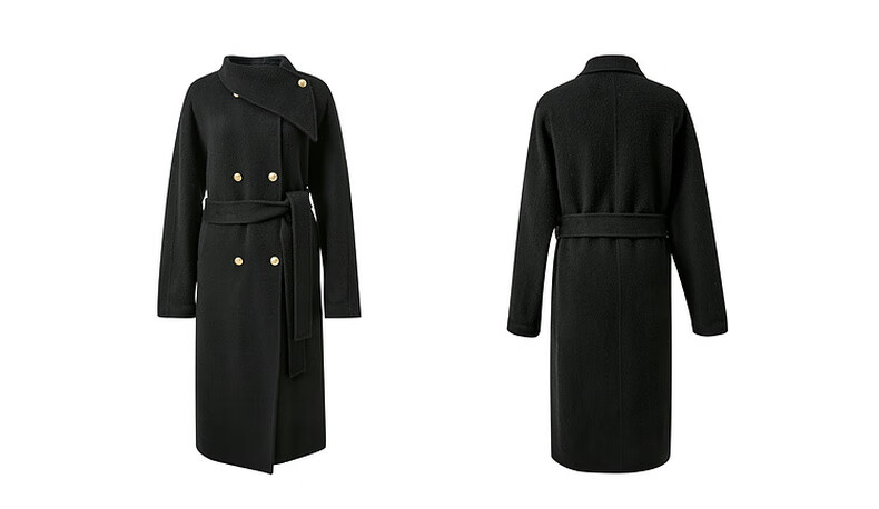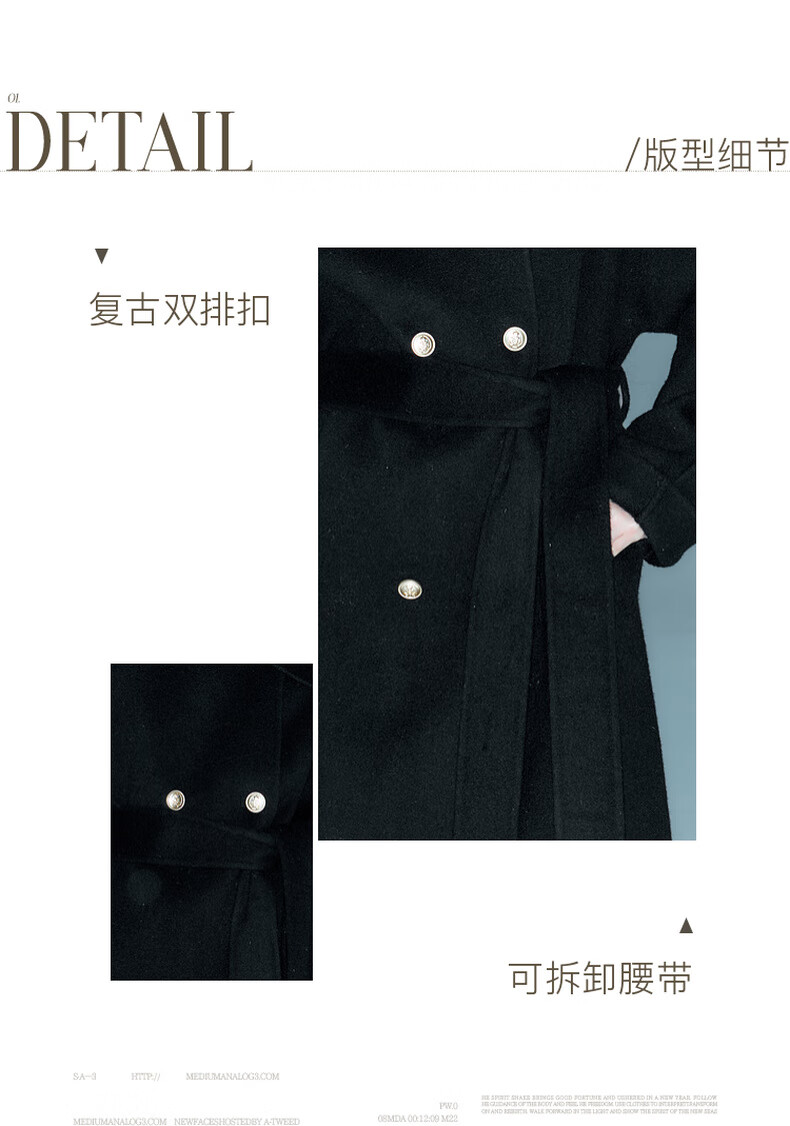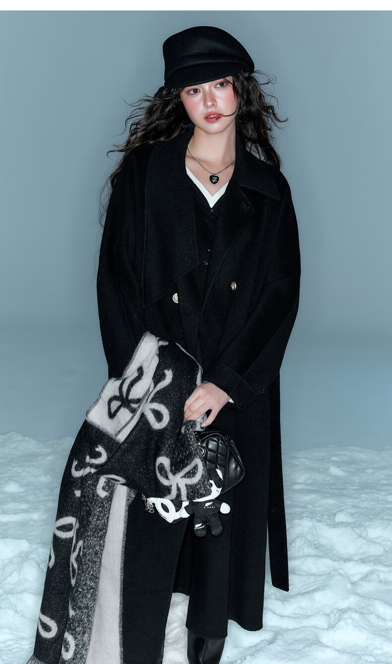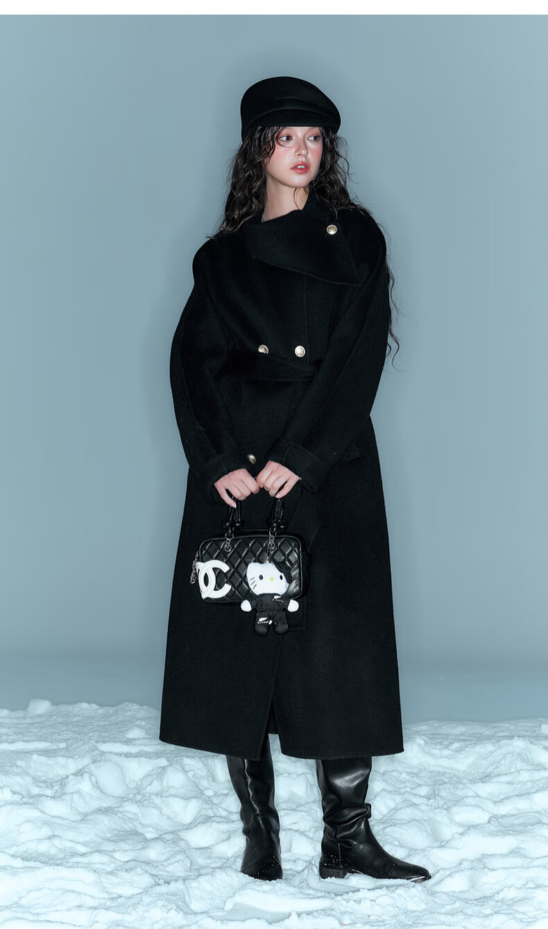 Sancai 2025 winter new double-sided woolen coat double-breasted long woolen coat F