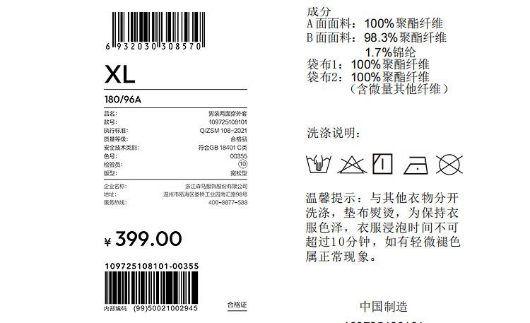 Semir protective jacket | Men's winter double-sided windproof and three-proof jacket 2025 outdoor loose top 109725108101