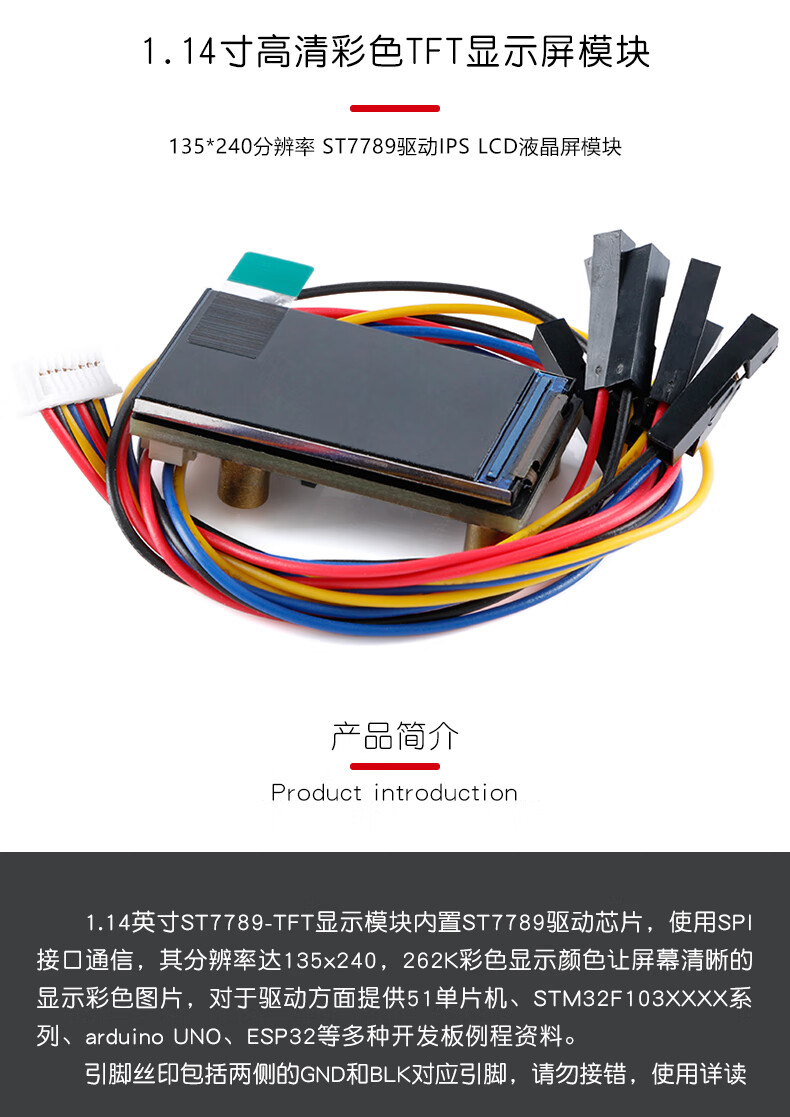 YourCee 1.14-inch high-definition color TFT display module 135*240 resolution ST7789 driver IPS LCD screen module