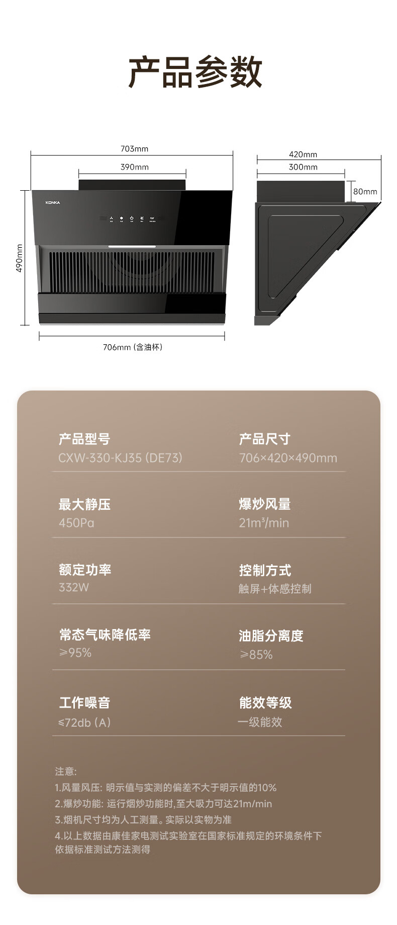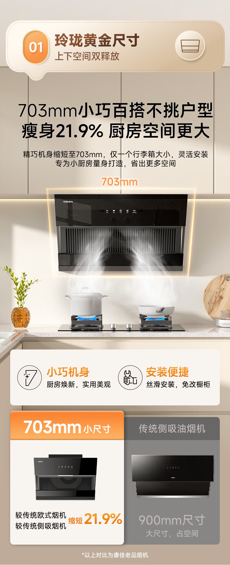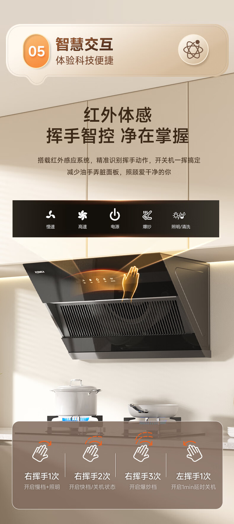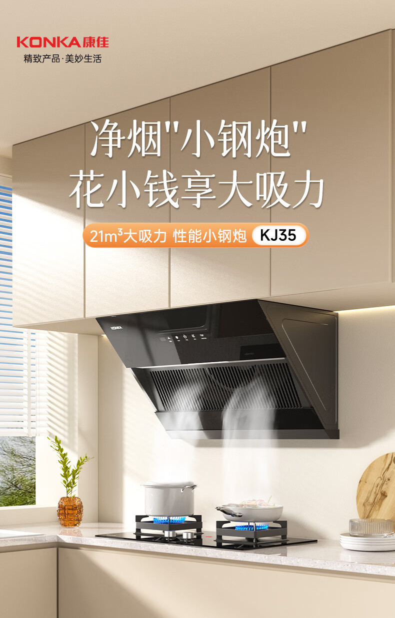 KONKA range hood household side suction type 21 cubic meters large suction small size rental apartment replacement 450Pa large static pressure wave wave intelligent self-cleaning CXW-330-KJ35