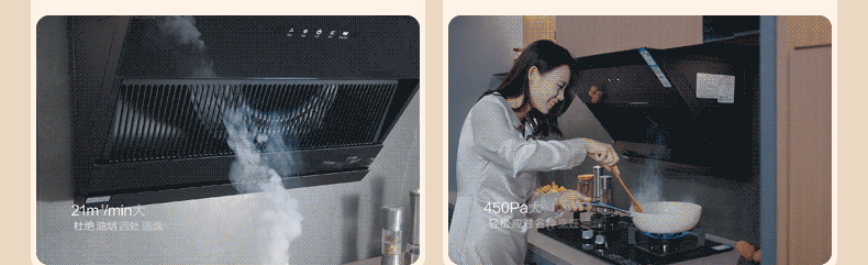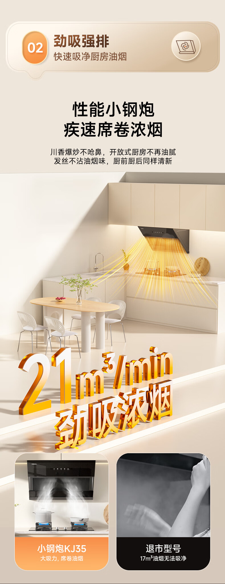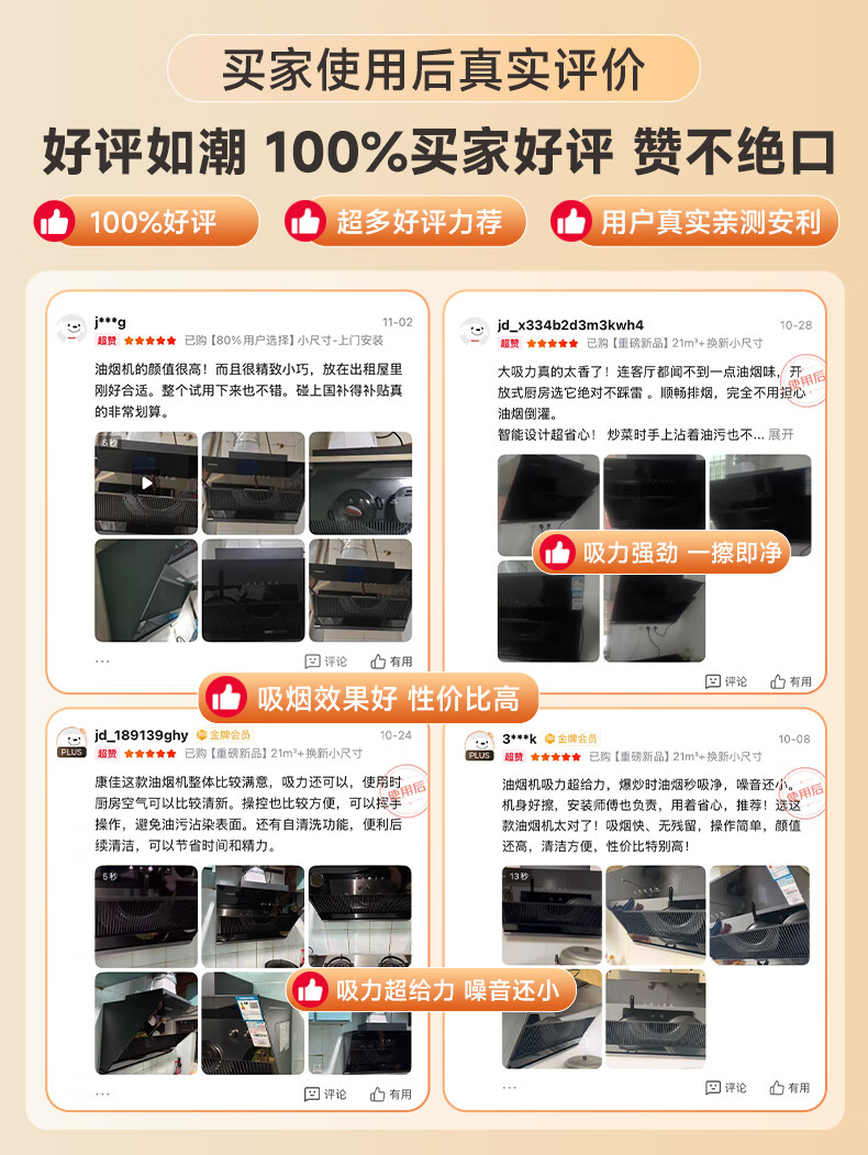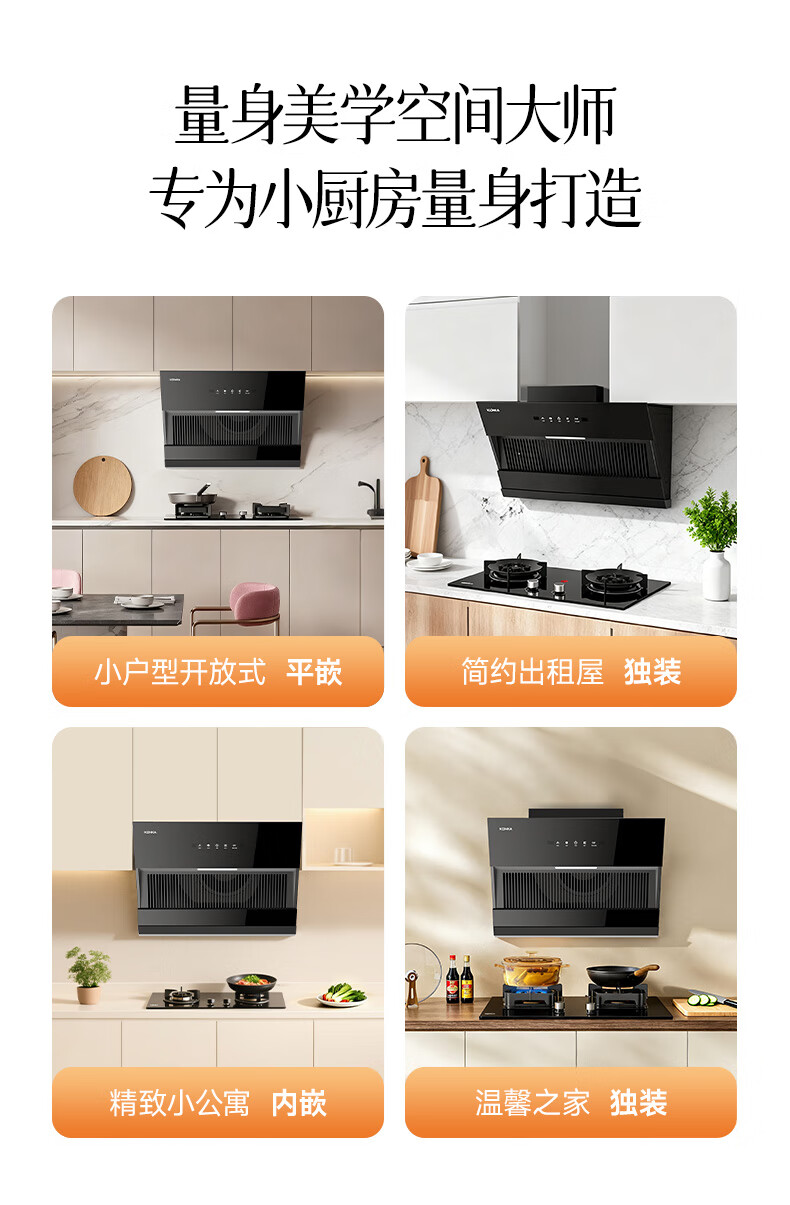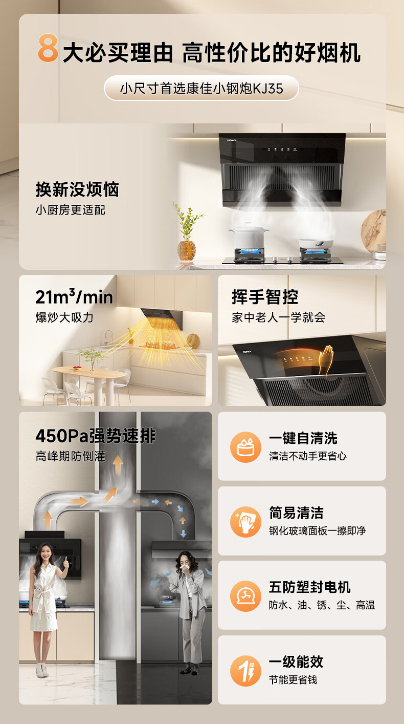 KONKA range hood household side suction type 21 cubic meters large suction small size rental apartment replacement 450Pa large static pressure wave wave intelligent self-cleaning CXW-330-KJ35