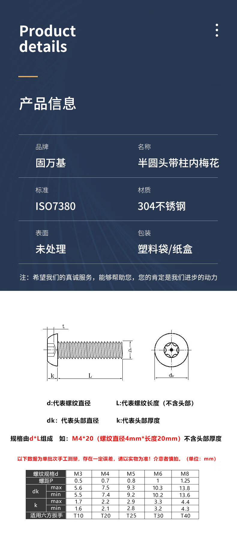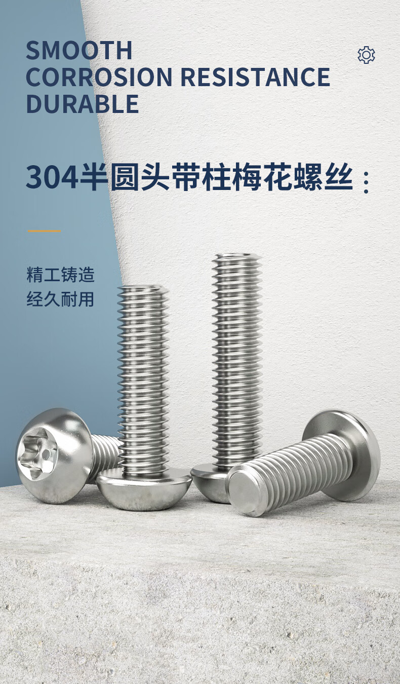 Guwanji 304 stainless steel inner plum blossom anti-theft screws semi-round head screws pan head with column special-shaped needle with column core bolt M5*16 10 pieces