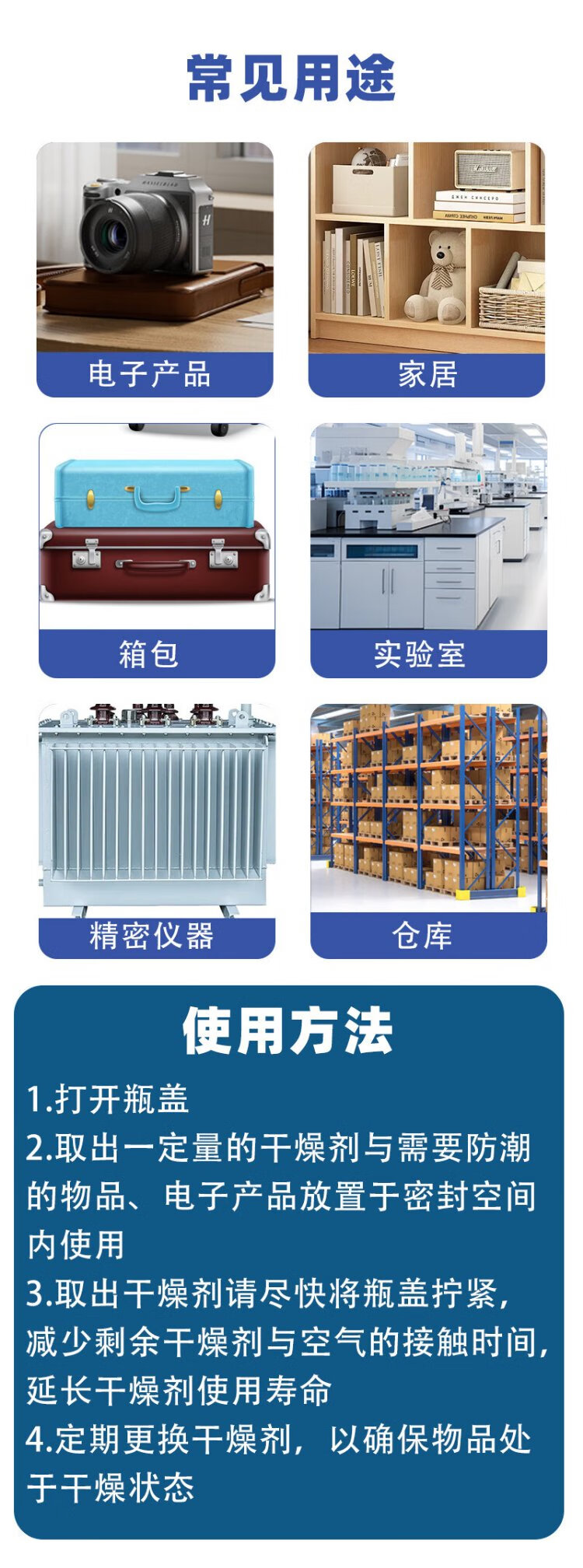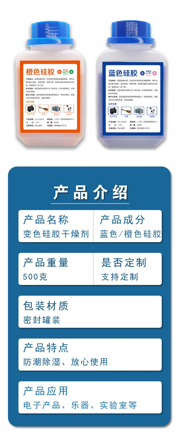 Zhaoshen desiccant moisture-proof and hygroscopic color-changing silica gel particle industrial desiccant reusable bottle blue 500g/bottle Jingcangfa