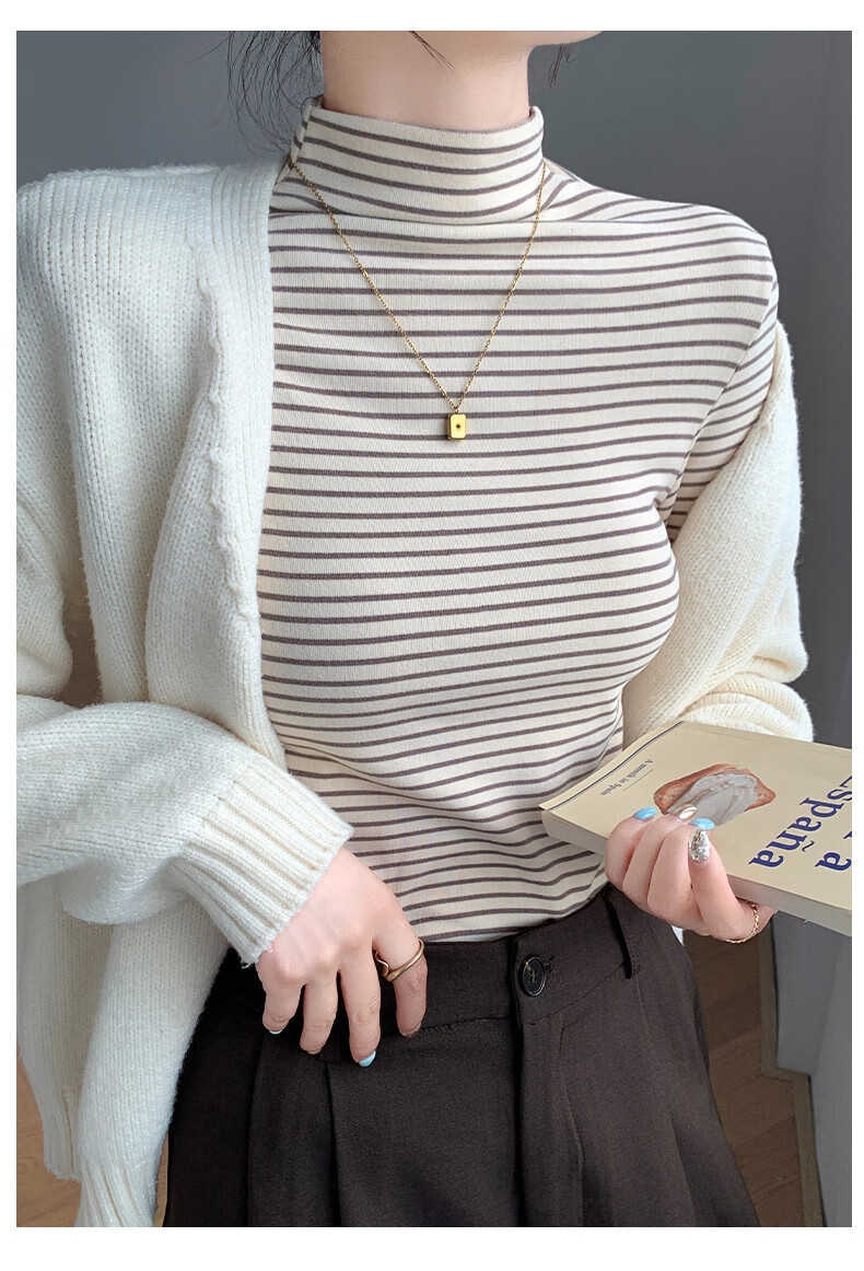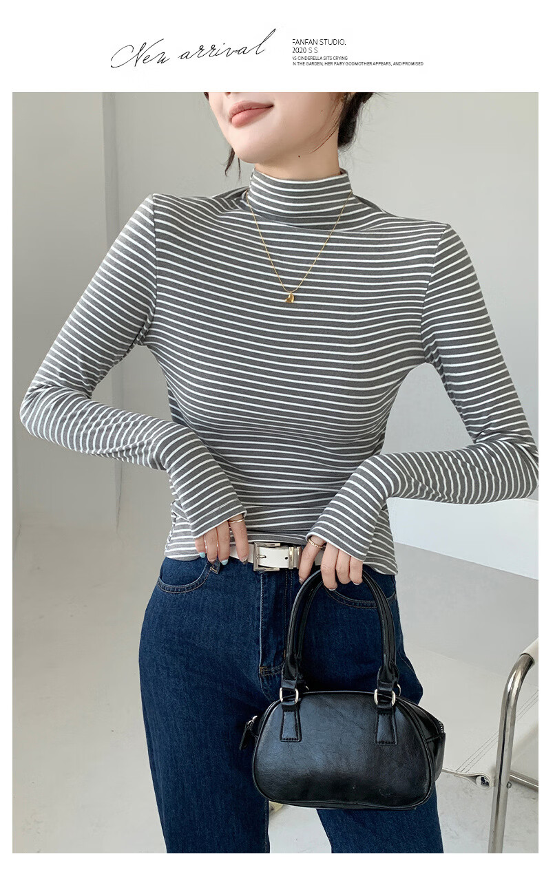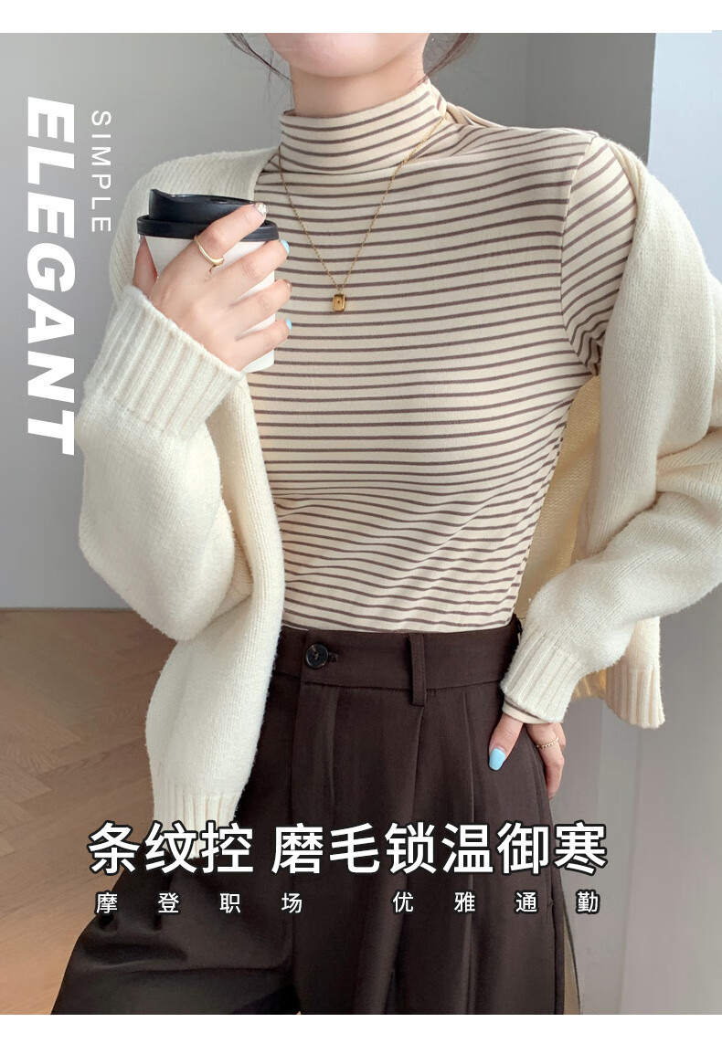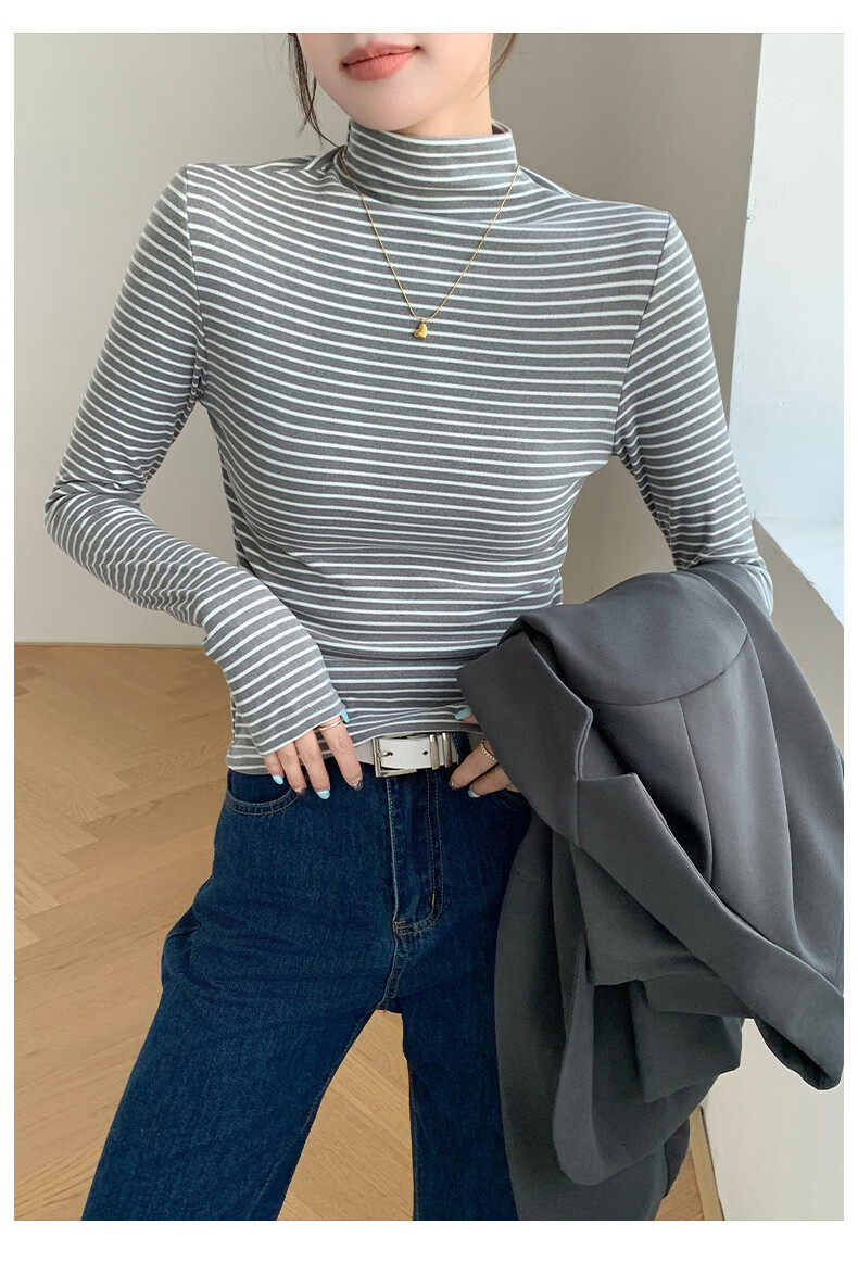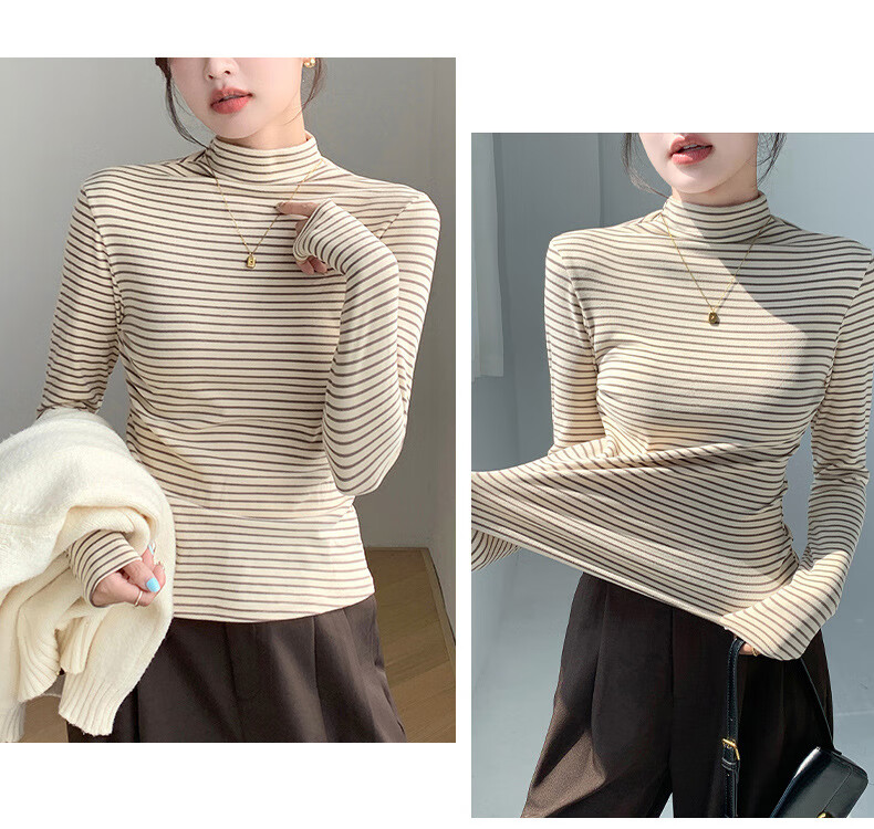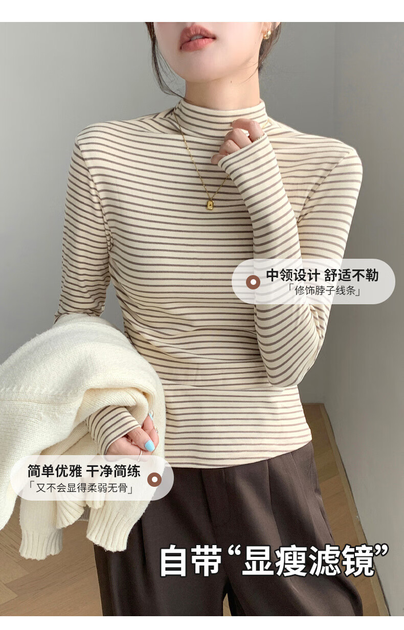 Langsha striped bottoming shirt for women winter 2025 new double-sided brushed half-high collar slim slim long-sleeved inner top
