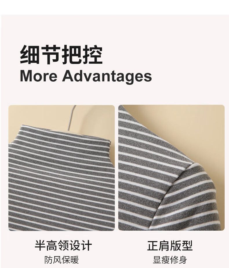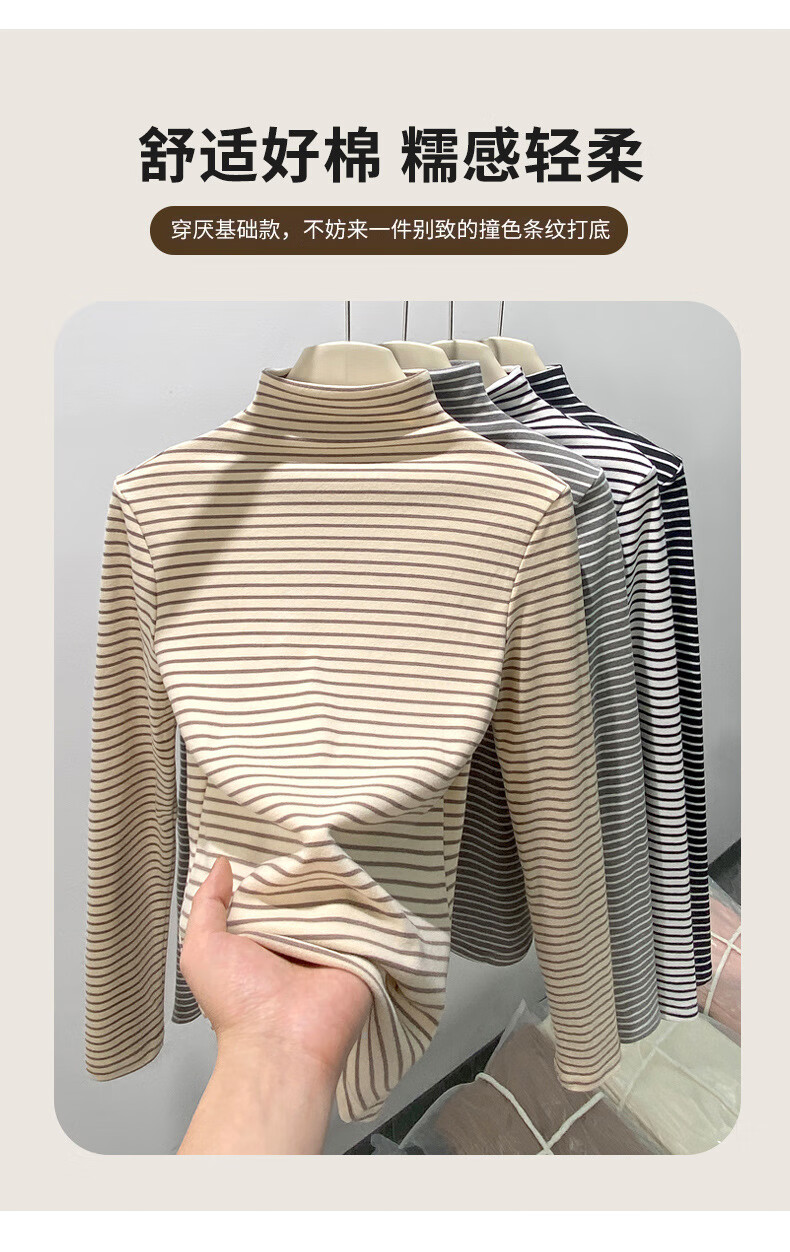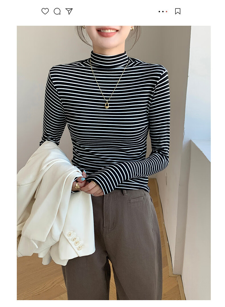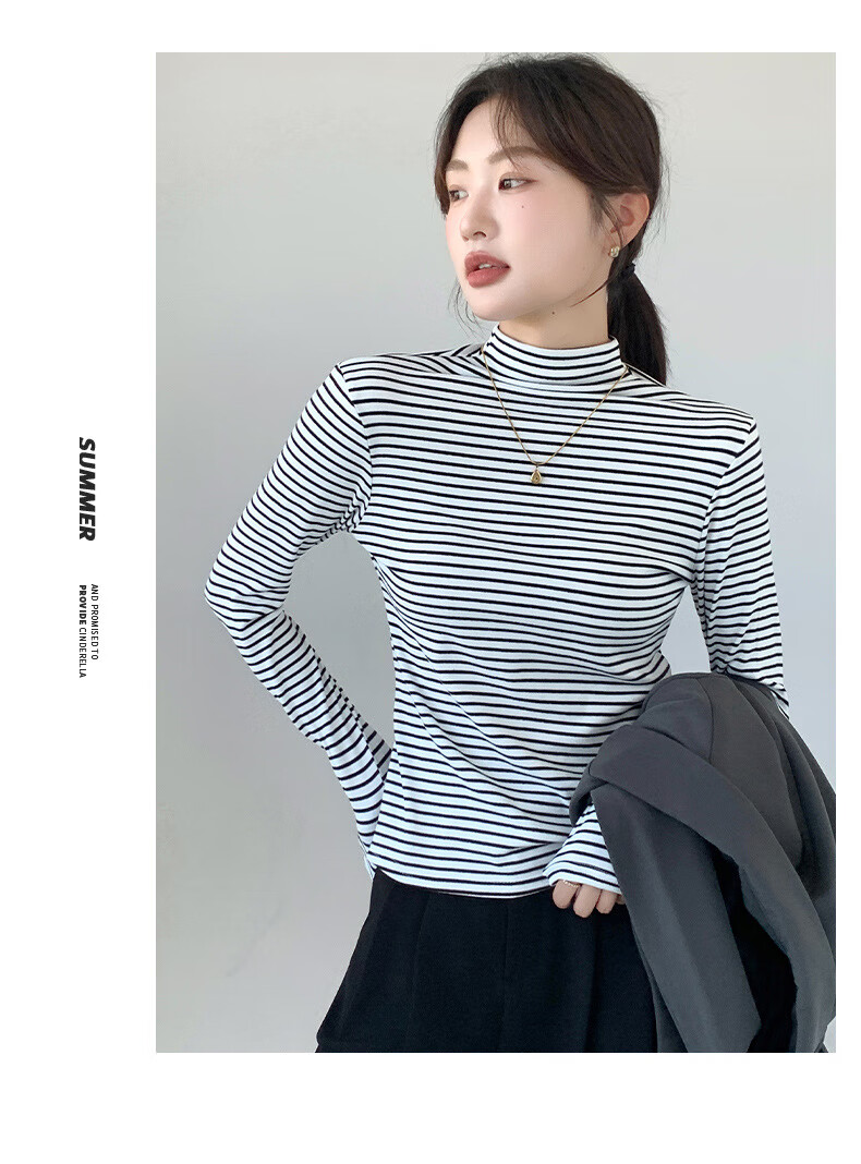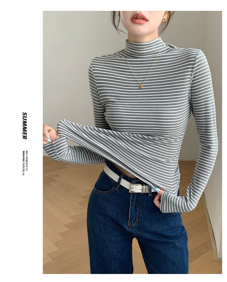 Langsha striped bottoming shirt for women winter 2025 new double-sided brushed half-high collar slim slim long-sleeved inner top