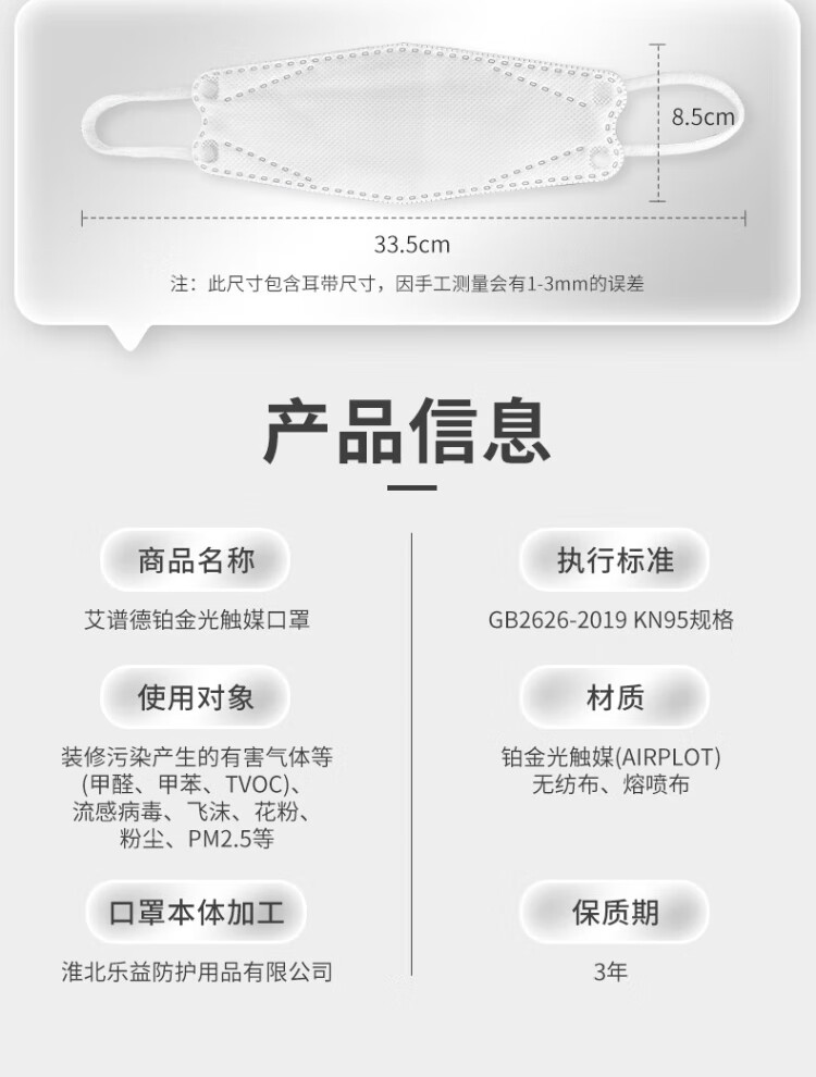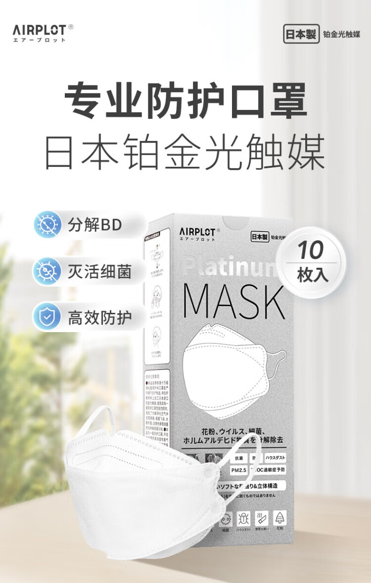 AIRPLOT Japan imported platinum photocatalyst 10-piece anti-formaldehyde special mask sterilization grade anti-droplet dust odor