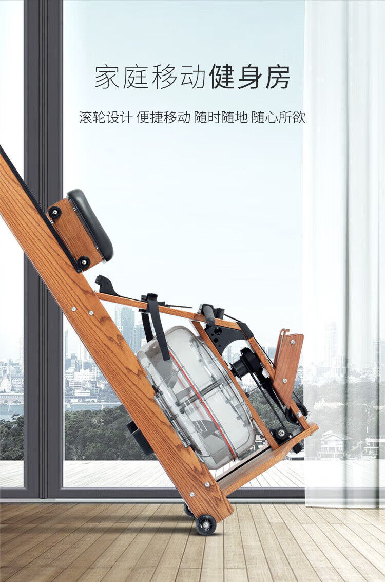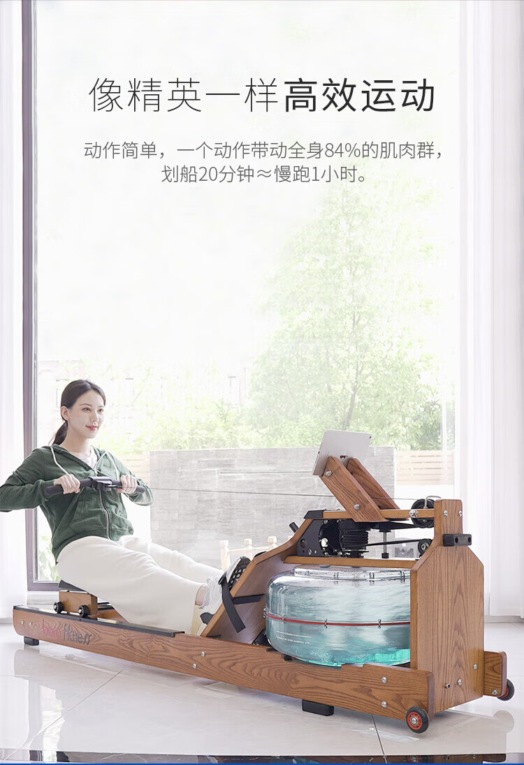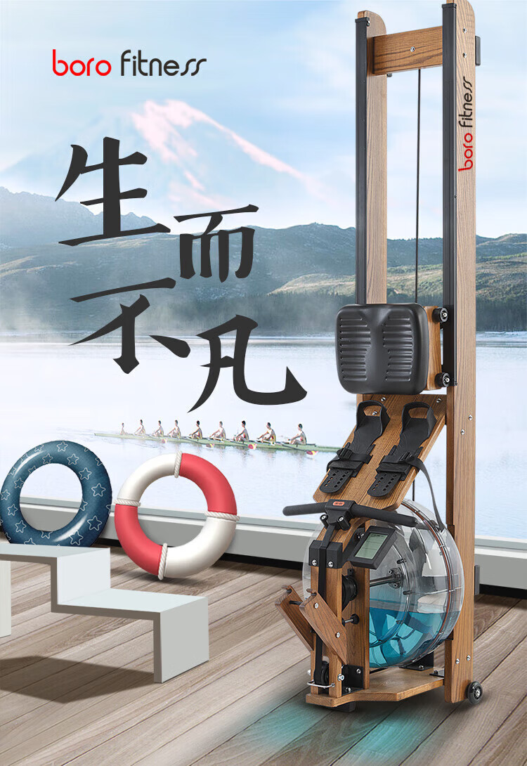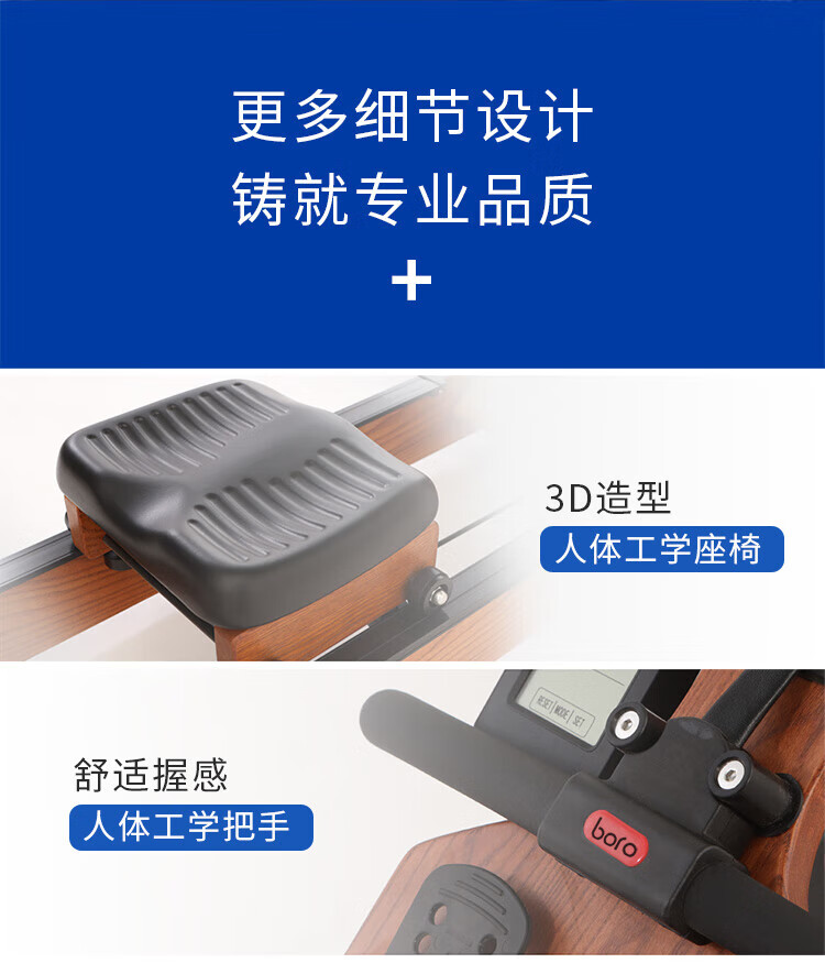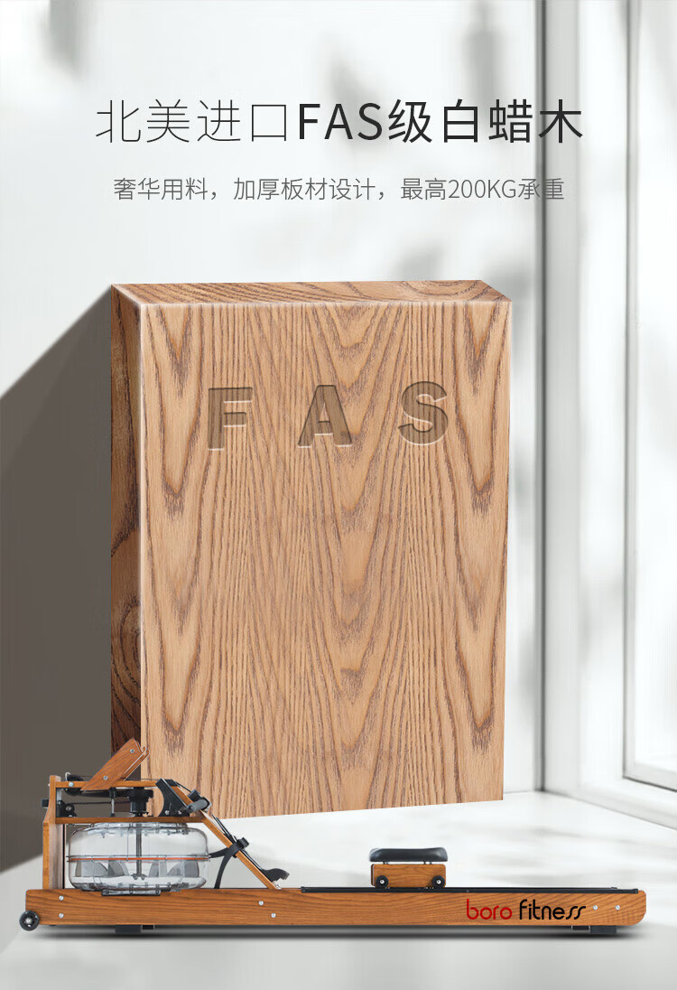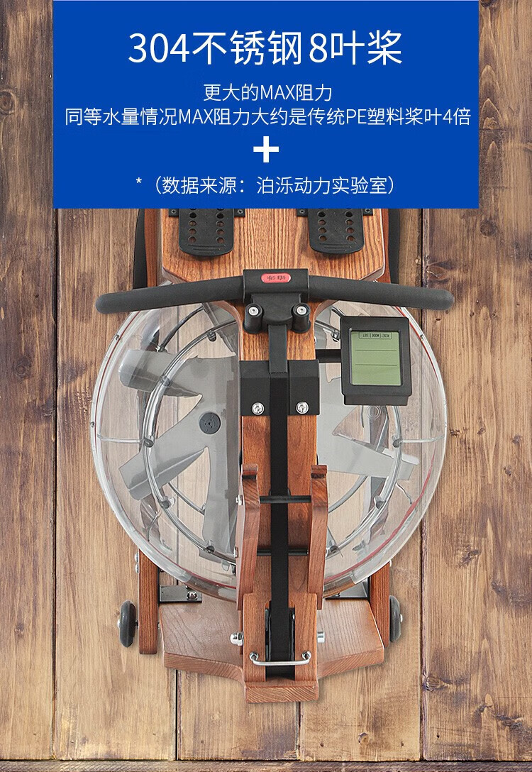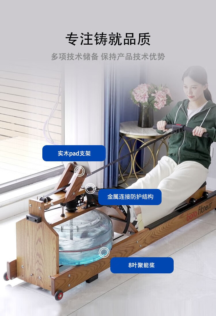 BORO rowing machine household water resistance imported solid wood double-rail rowing machine rubber wood WR-04-plastic 3-leaf pulp