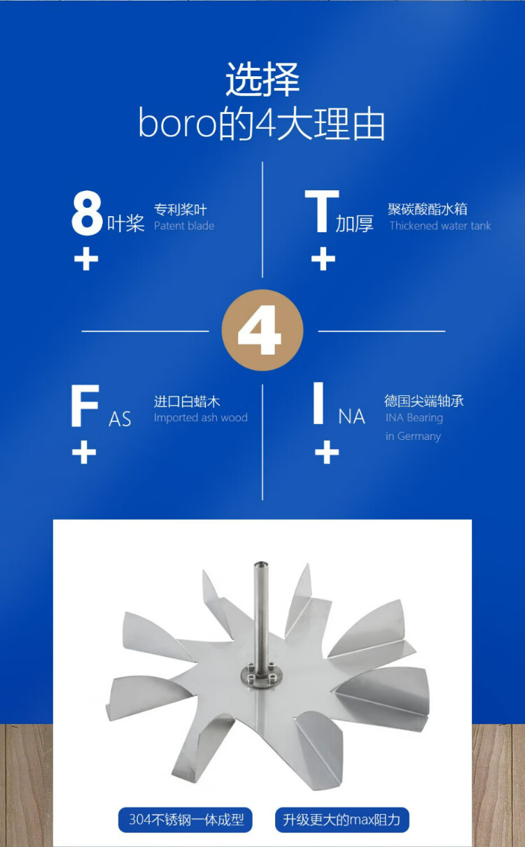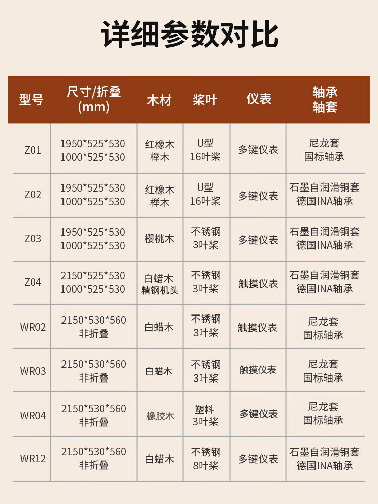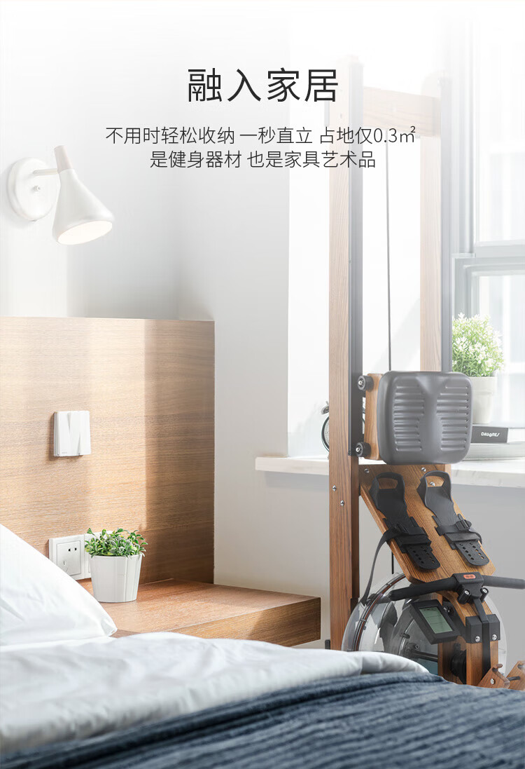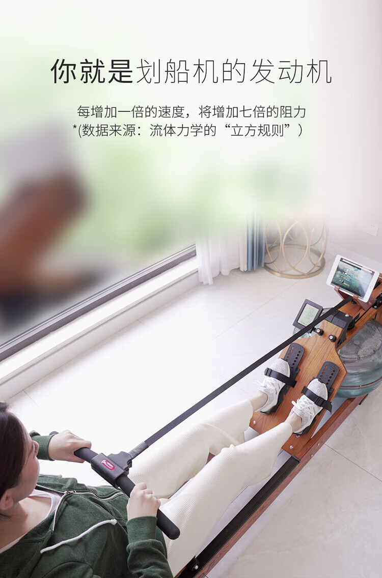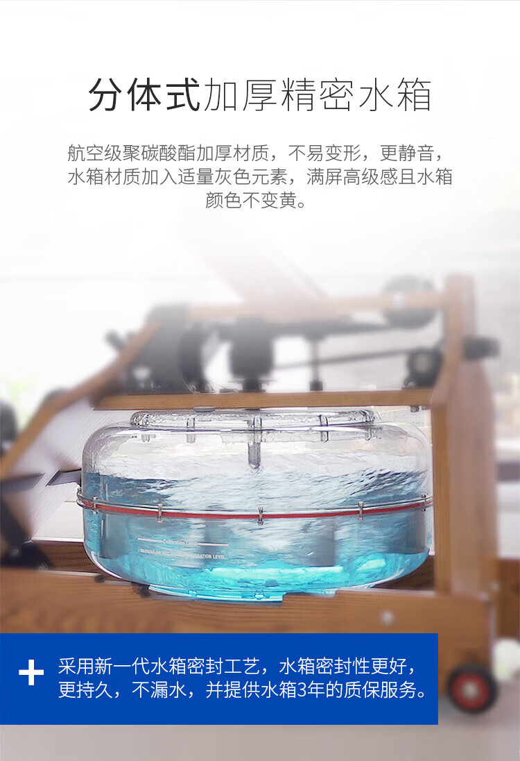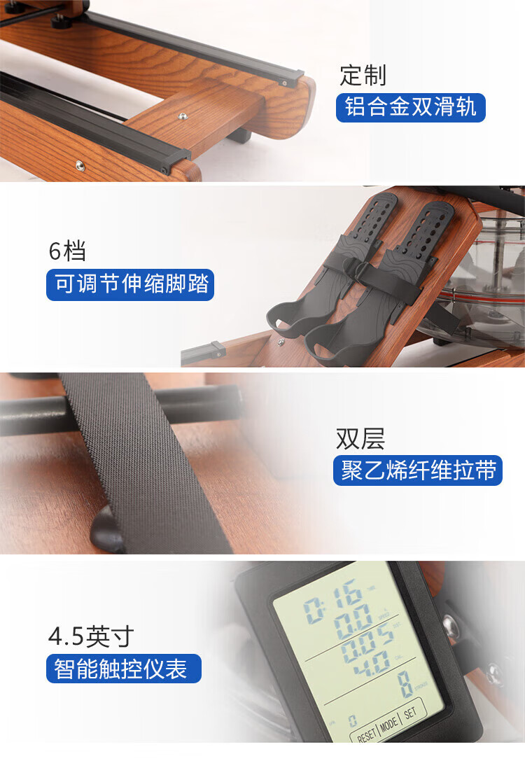 BORO rowing machine household water resistance imported solid wood double-rail rowing machine rubber wood WR-04-plastic 3-leaf pulp
