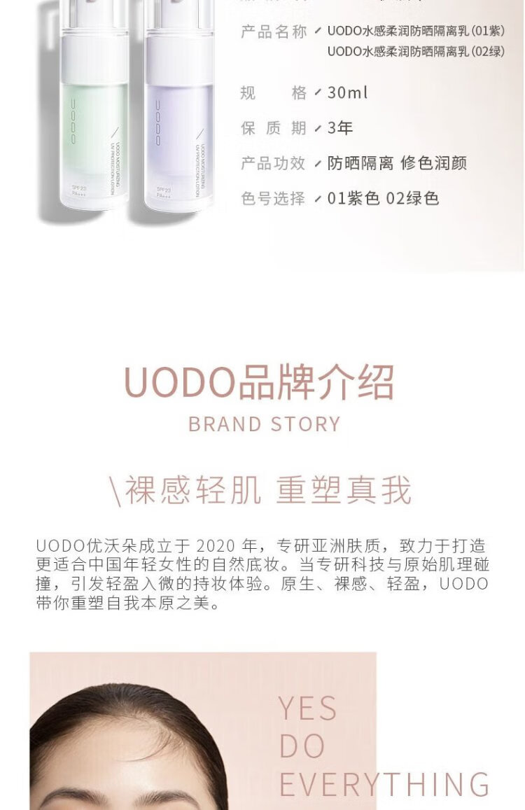 UODO Soft Glowing Makeup Primer Brightens Skin Invisible Pores Oil Controls Concealer Primer Moisturizing and Hydrating for Men and Women Red Skin Sunscreen Isolation Milk #Green Bottle