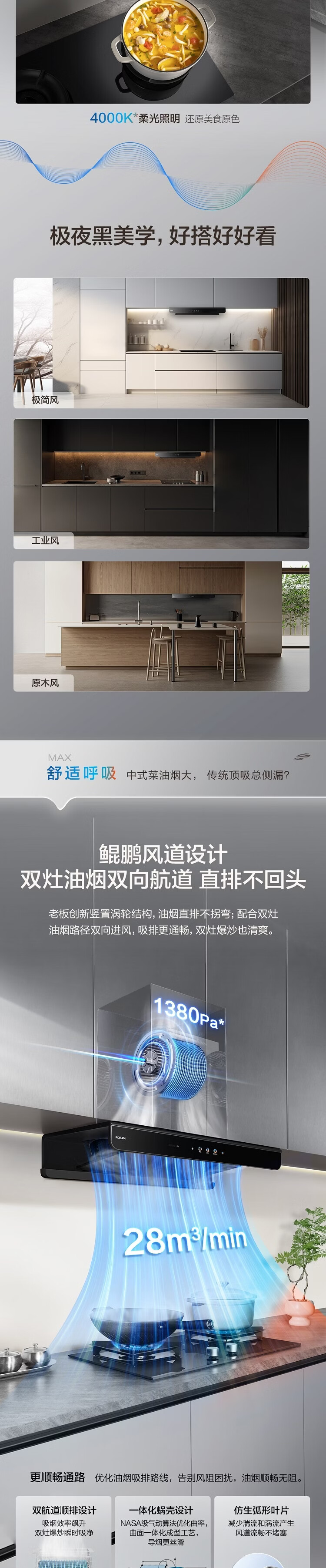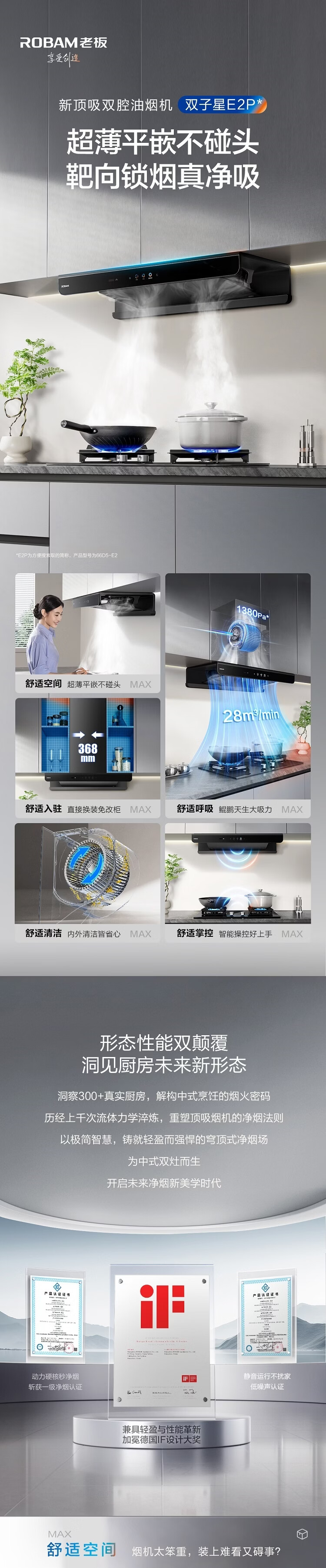 Boss (Robam) Gemini E2P range hood European-style top smoking stove linked dual-chamber frequency conversion 28 air volume household large suction smart range hood 66D5-E2 trade-in