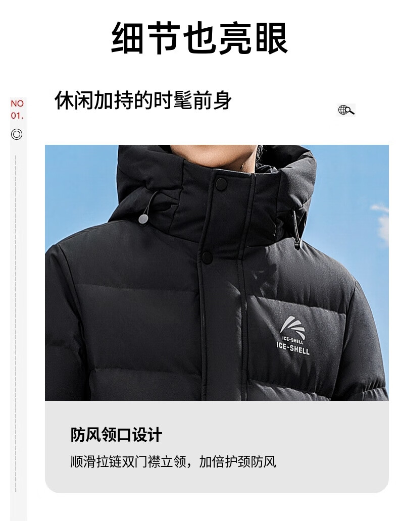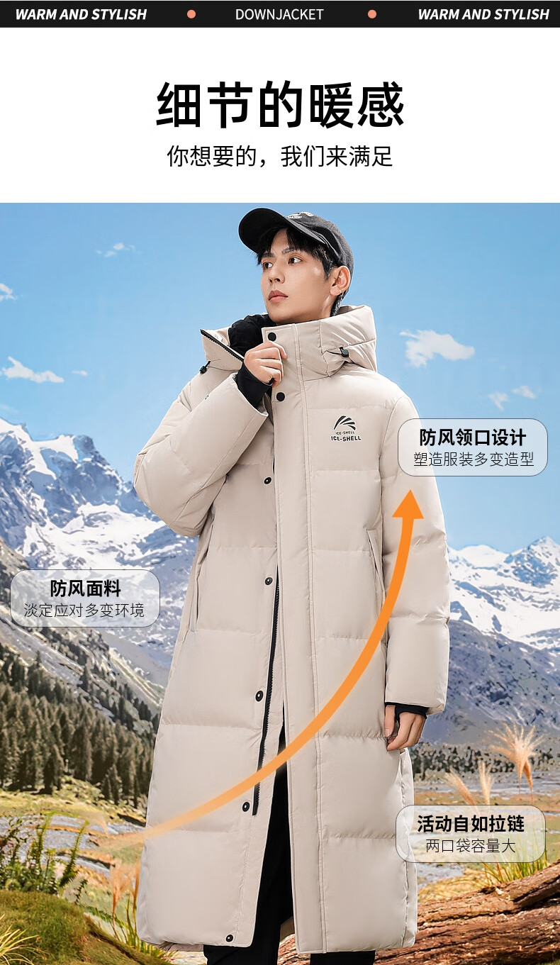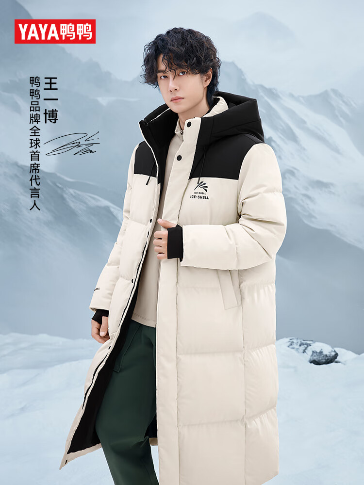 YAYA Wang Yibo Ice Shell 3.0 mid-length down jacket for women and men, same style hooded thickened extreme cold jacket
