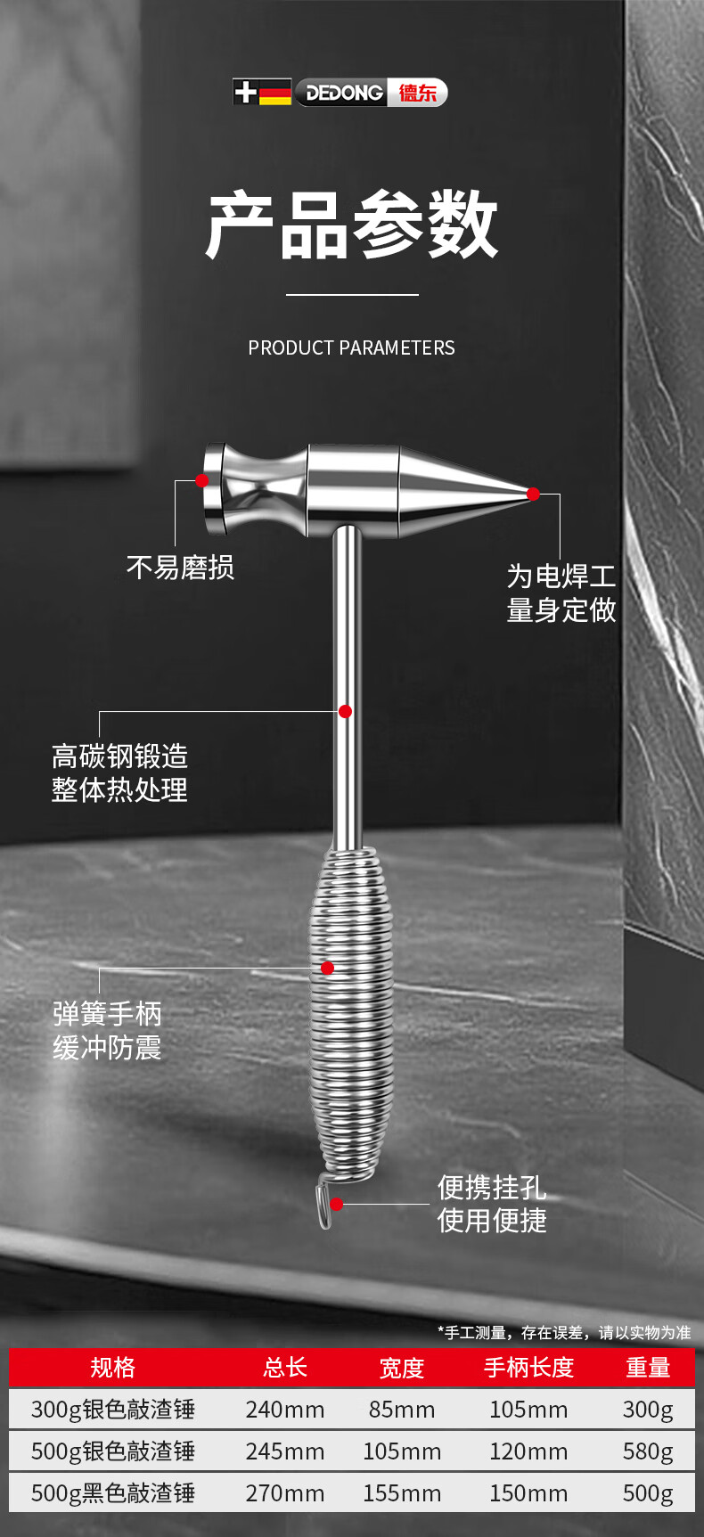 Dedong electric welding slag hammer electrician special welder spring pointed flat head hammer