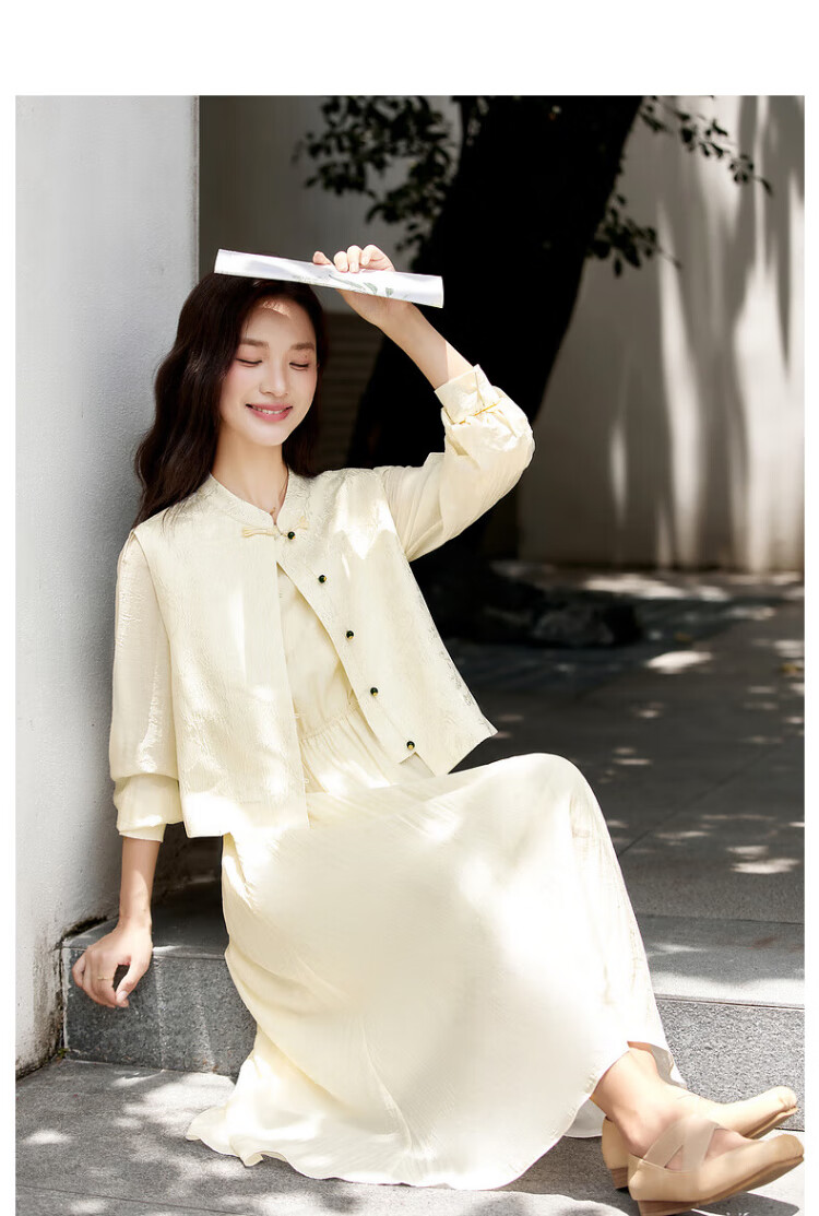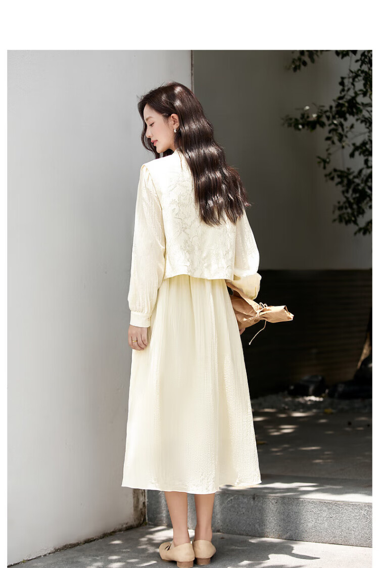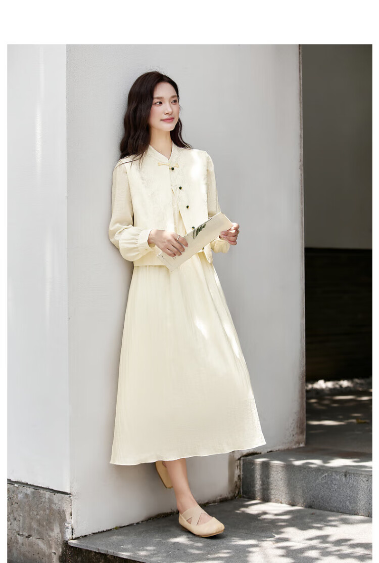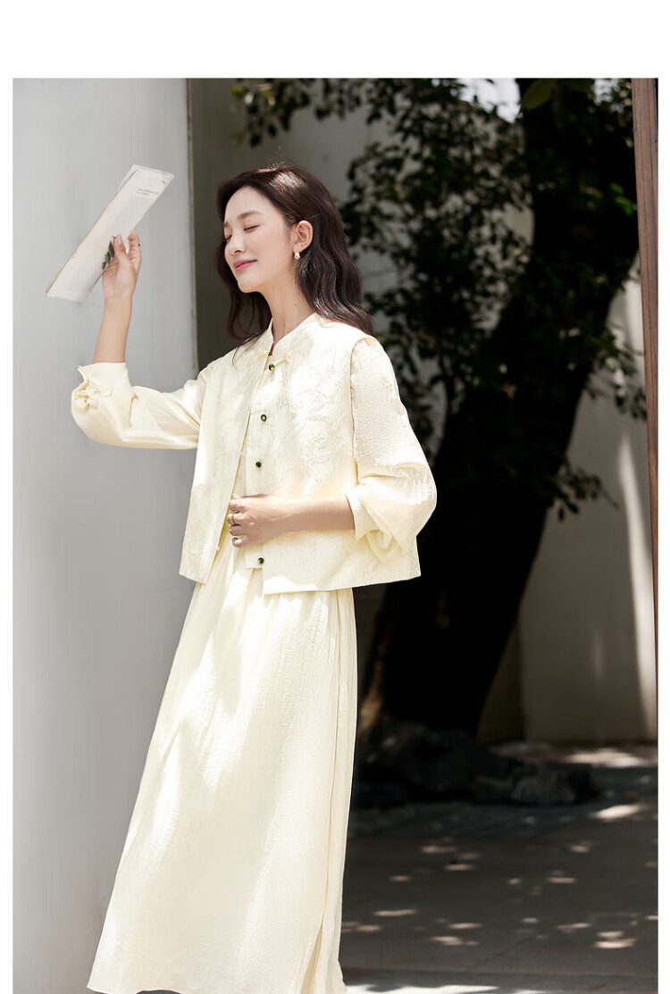 Fanximan Elegant Chinese Suit Women's Autumn New Jacquard Vest Round Neck Dress Suit Elegant Apricot L