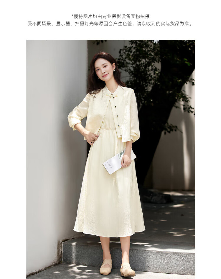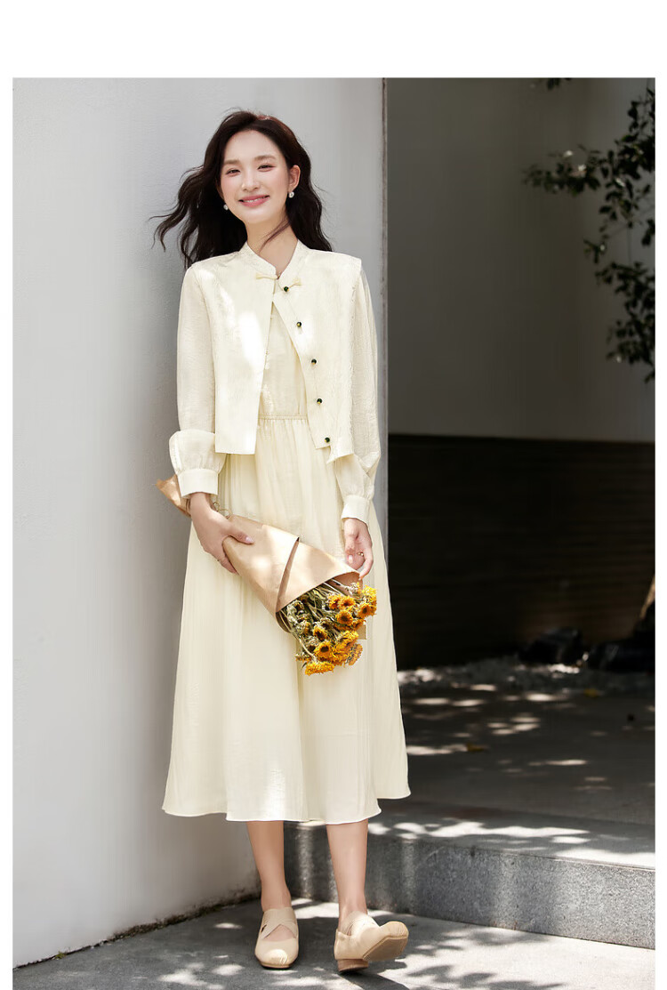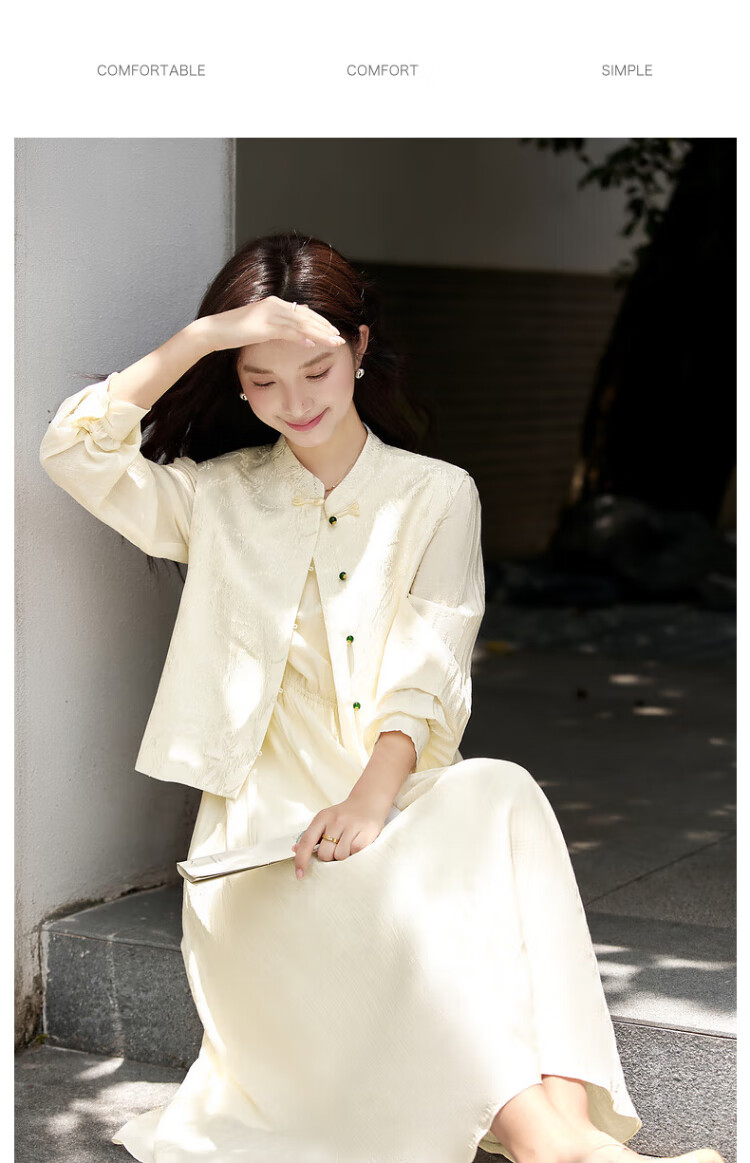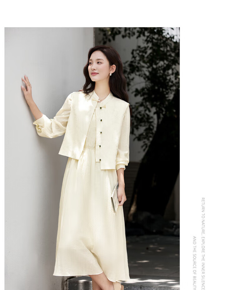Fanximan Elegant Chinese Suit Women's Autumn New Jacquard Vest Round Neck Dress Suit Elegant Apricot L