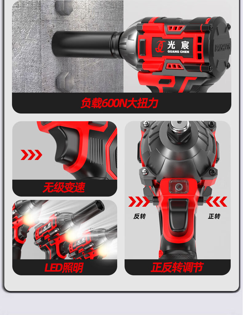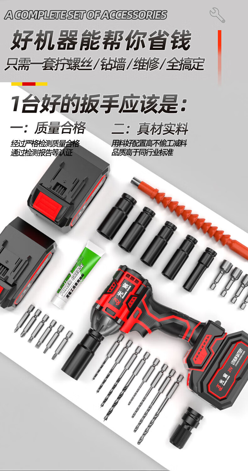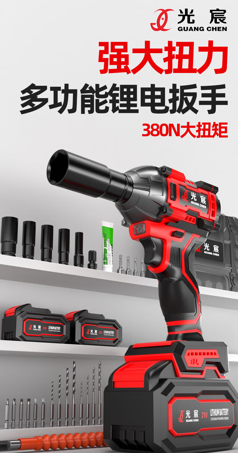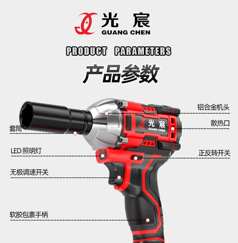 Guangchen Brushless Electric Wrench Lithium Impact Wrench Rechargeable Wind Cannon Electric Scaffolding Auto Repair Kit Power Tools