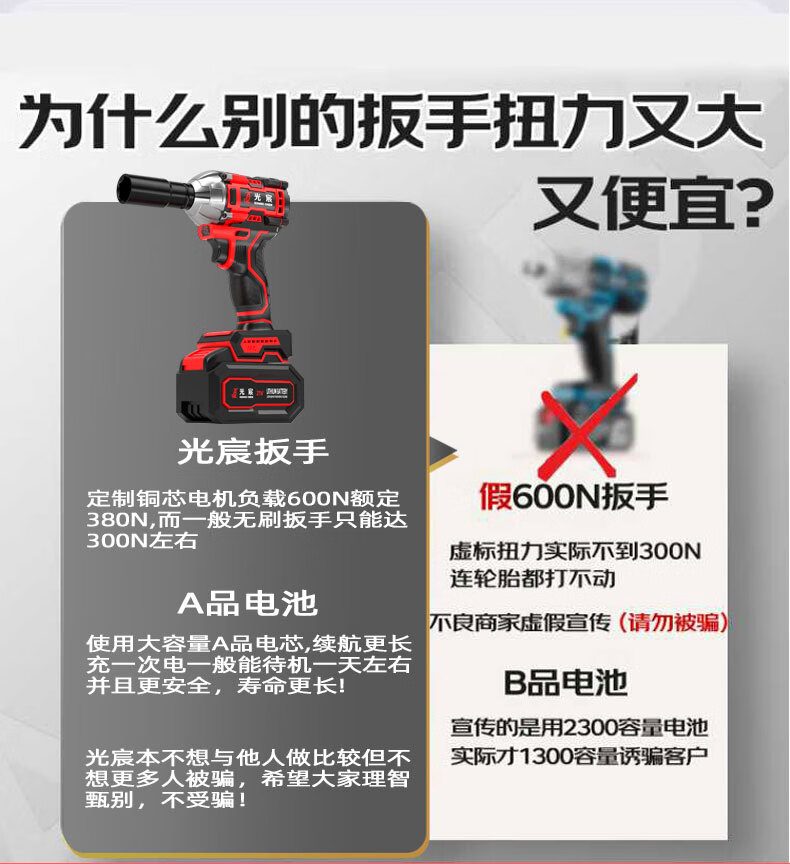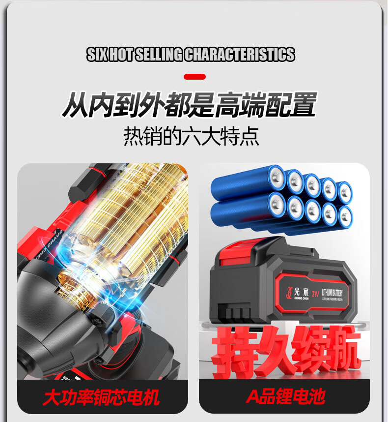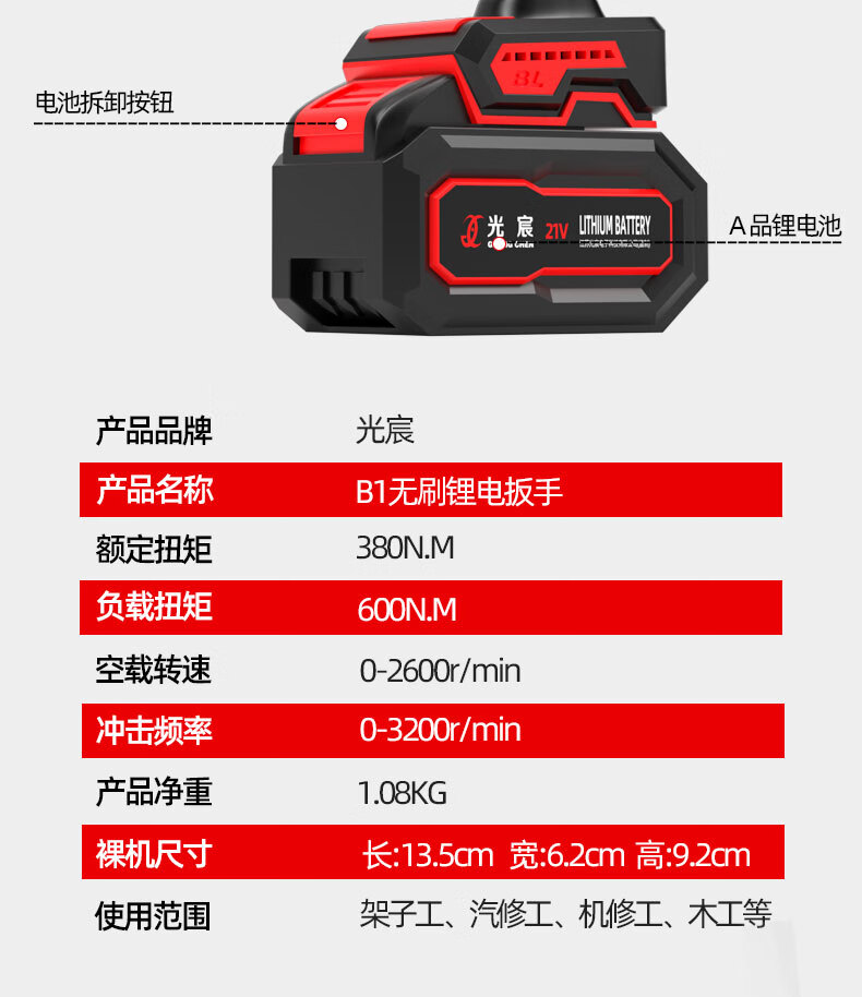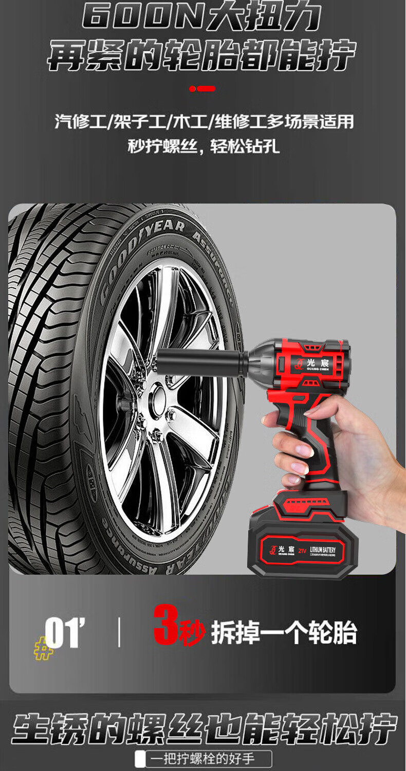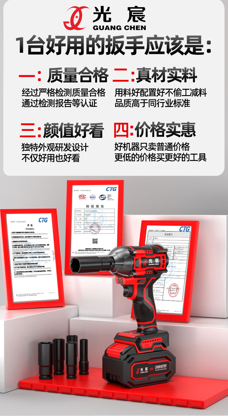 Guangchen Brushless Electric Wrench Lithium Impact Wrench Rechargeable Wind Cannon Electric Scaffolding Auto Repair Kit Power Tools