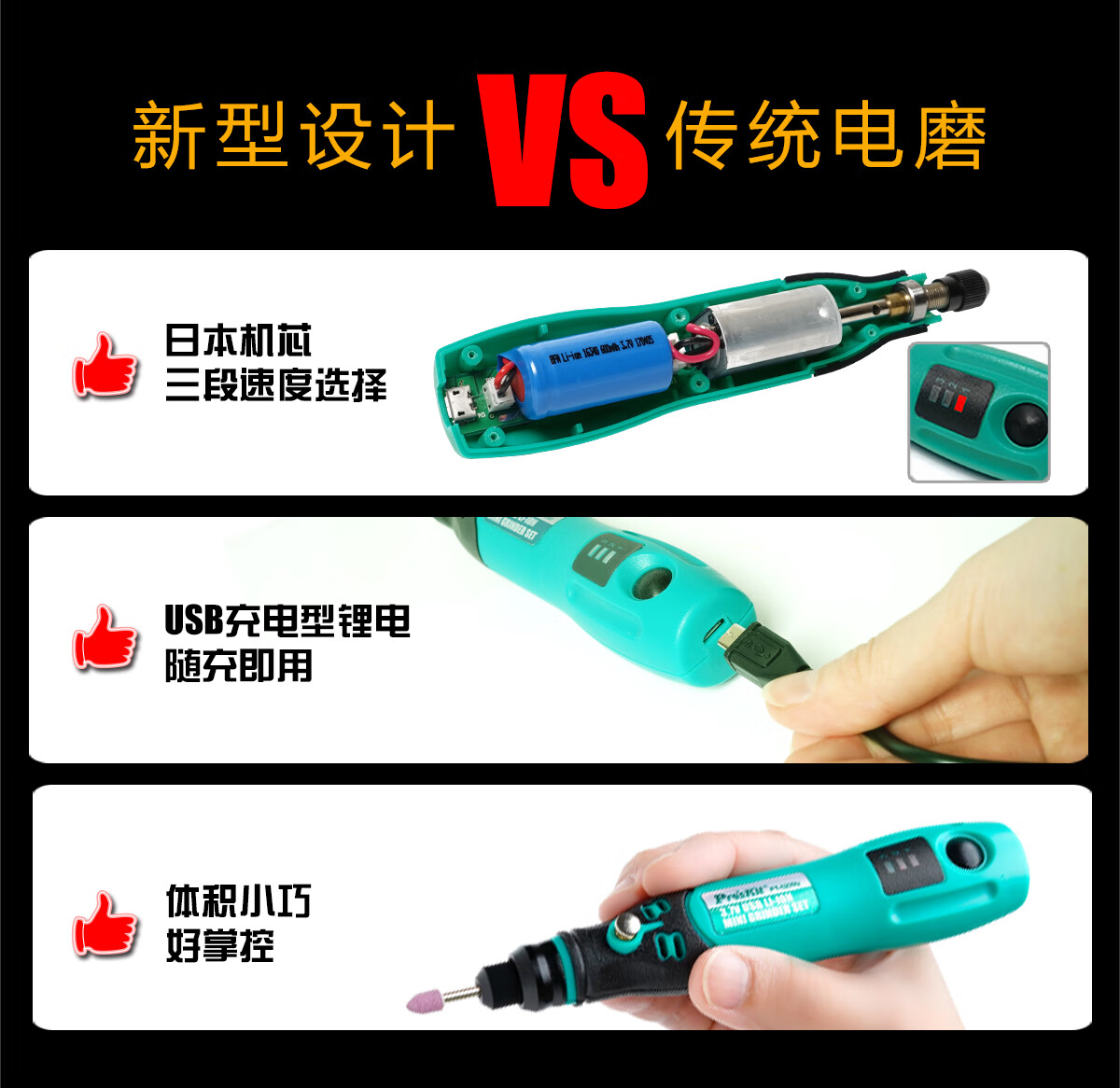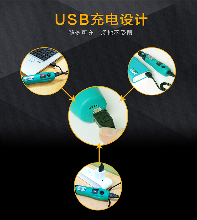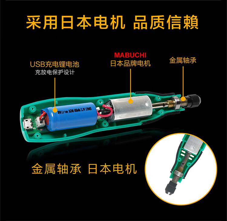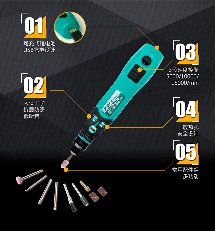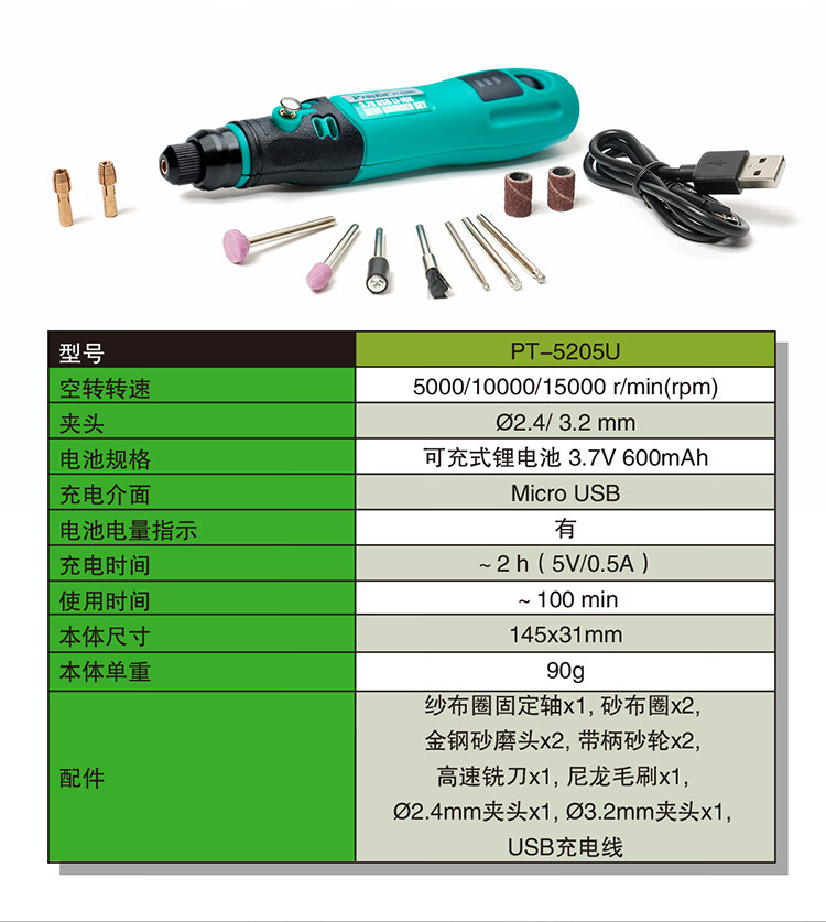 Baogong (Pro sKit) USB rechargeable electric grinding set hand electric drill hand-held polishing jade wood carving cutting engraving tool polishing PT-5205U