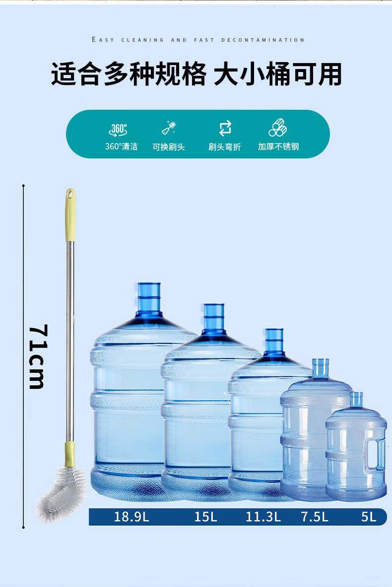 Kelibang Bucket Brush Curved Mineral Water Bucket Long Handle Brush Stainless Steel Handle Bucket Brush Head KB2043