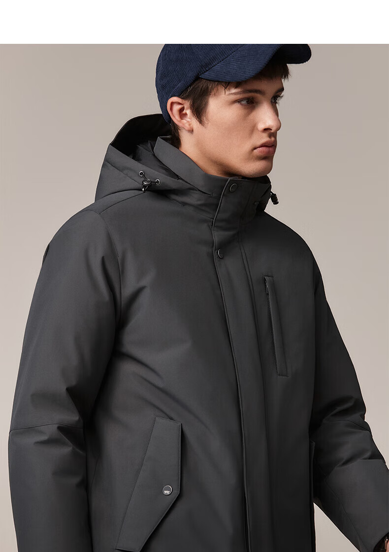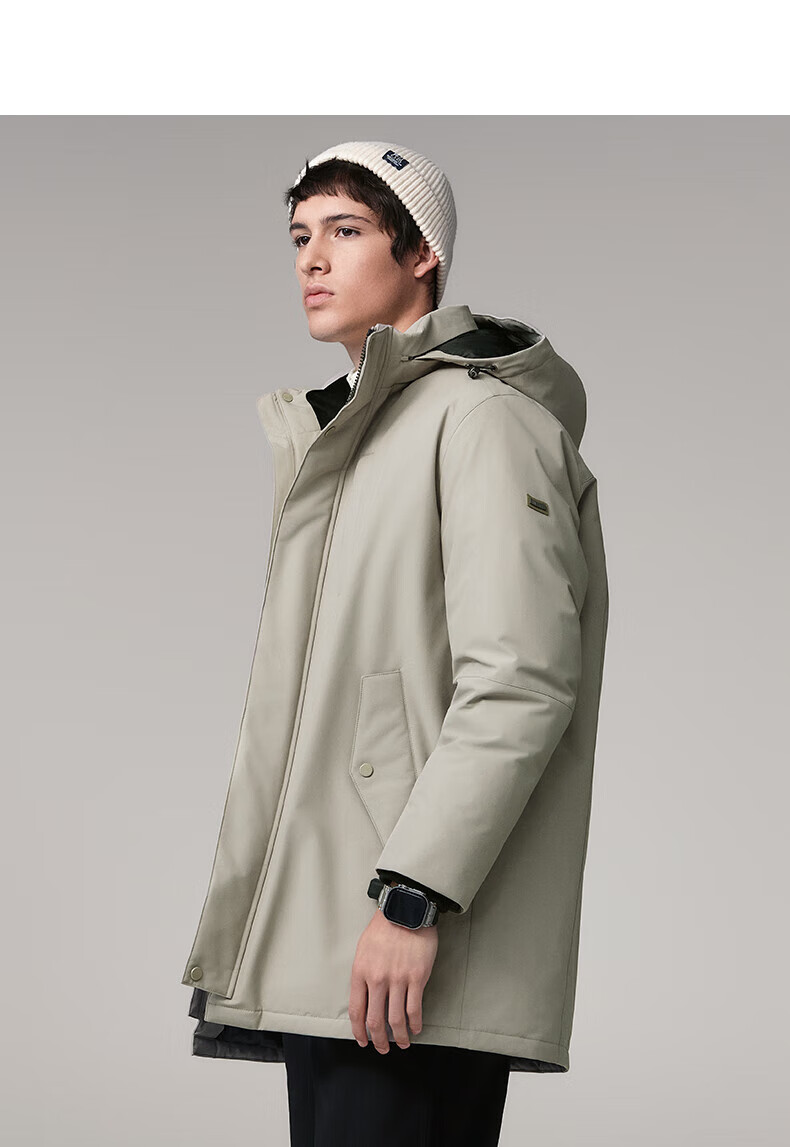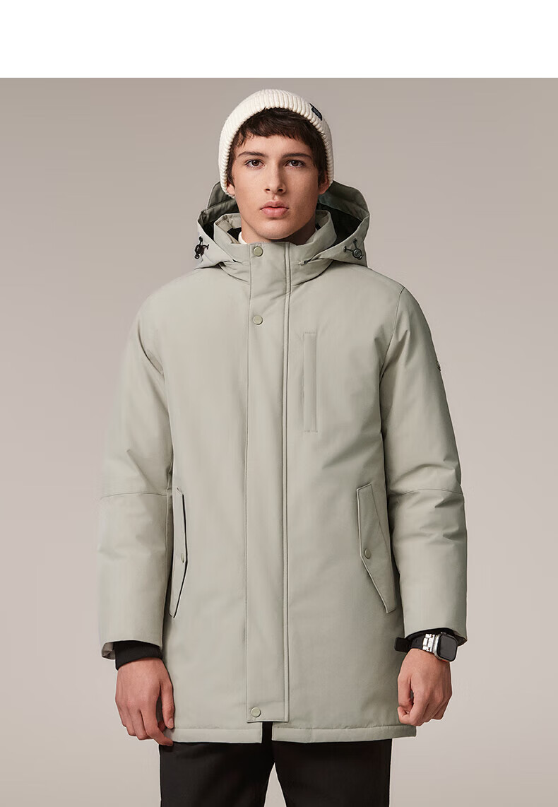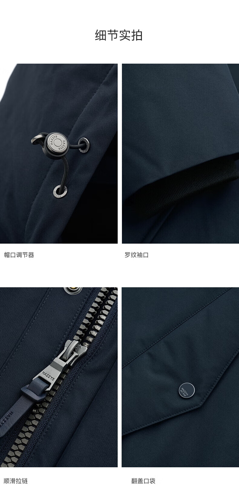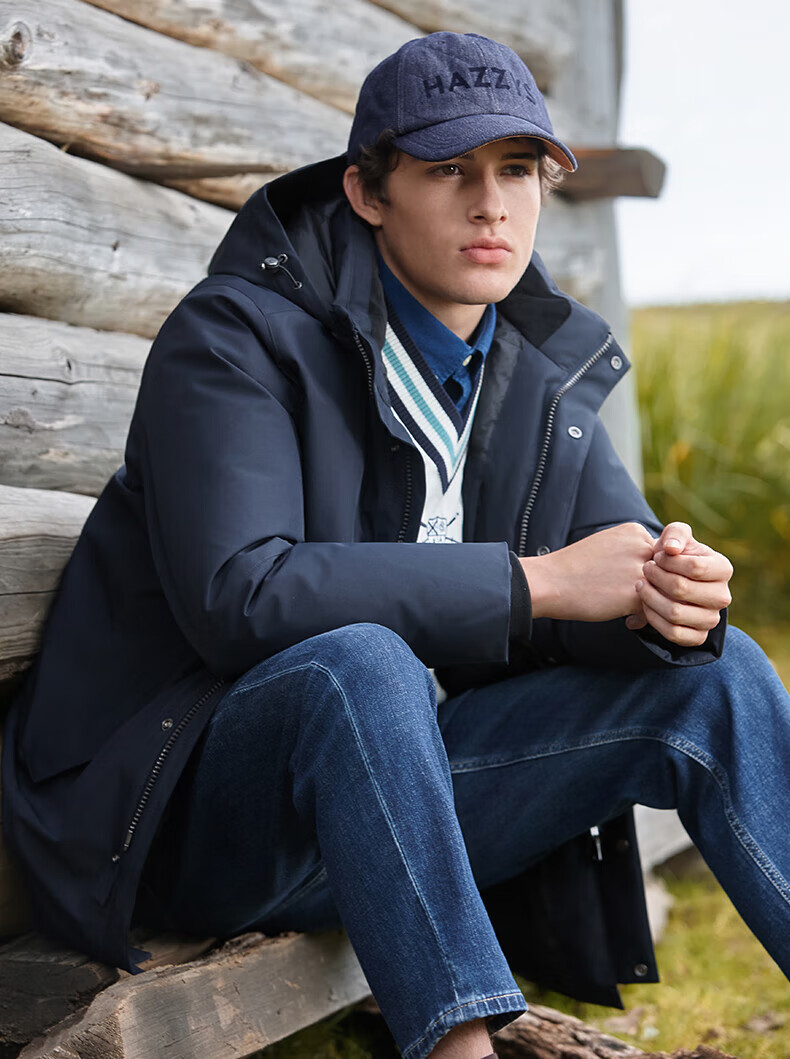 HAZZYS Men's 2025 Winter Jacket Three-Proof/Goose Down Mid-Length Down Jacket Men's ASFZU0CDX03