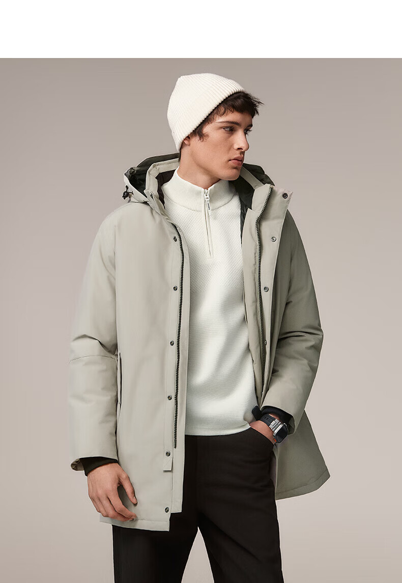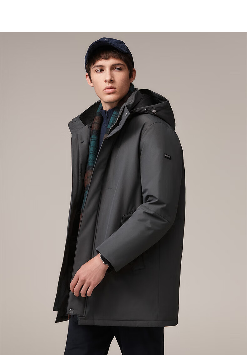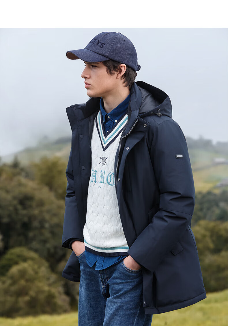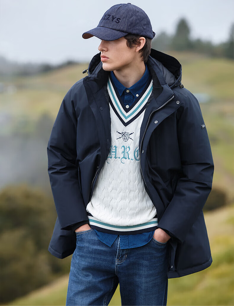 HAZZYS Men's 2025 Winter Jacket Three-Proof/Goose Down Mid-Length Down Jacket Men's ASFZU0CDX03