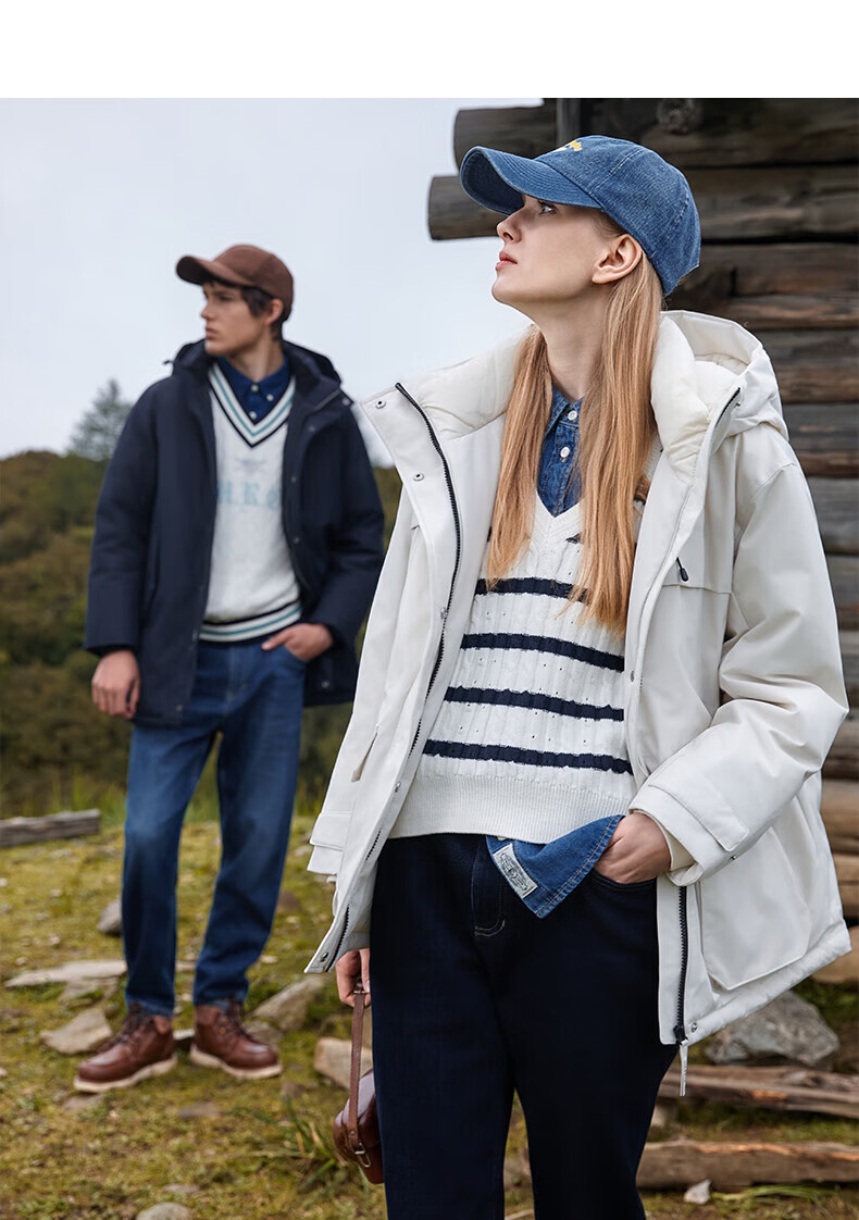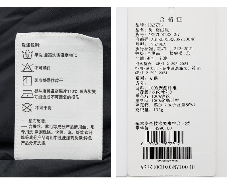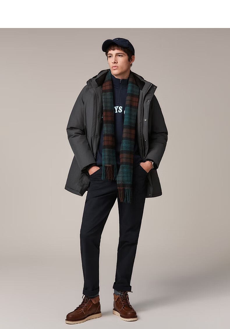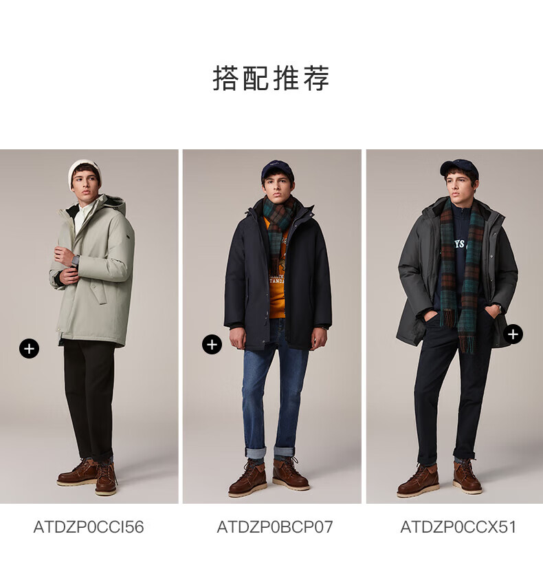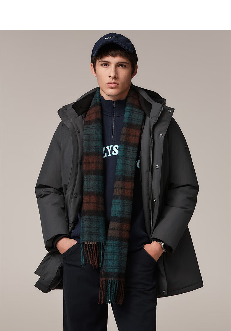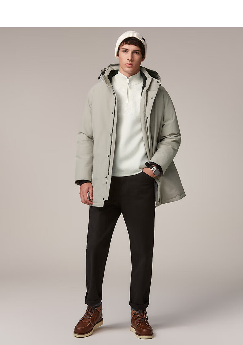HAZZYS Men's 2025 Winter Jacket Three-Proof/Goose Down Mid-Length Down Jacket Men's ASFZU0CDX03