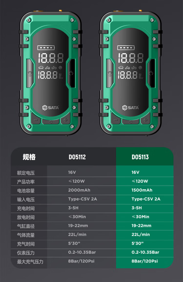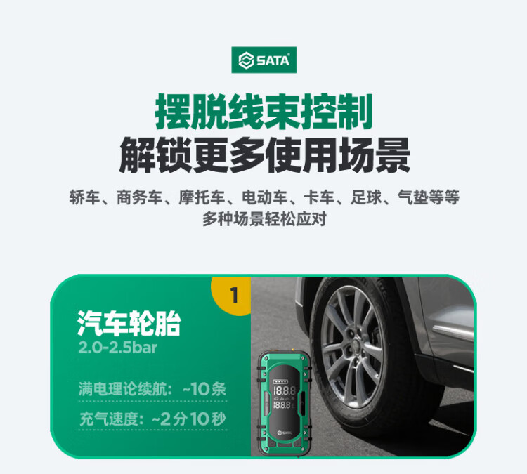 Shida SATA car-mounted lithium-ion air pump portable electric pump car tire car air-filler D05112