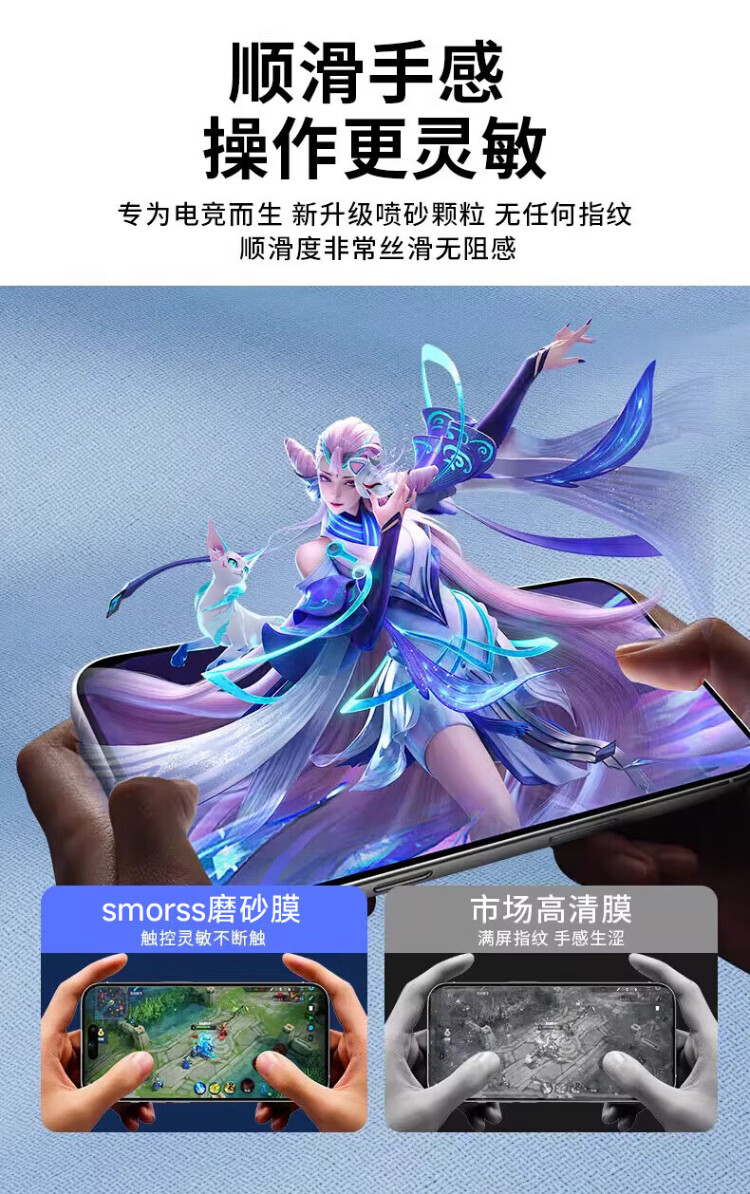 Smorss 2 pieces of frosted film, suitable for Apple iPhone13/13Pro/14 tempered film frosted film mobile phone film strong anti-fingerprint high-definition anti-fall e-sports mobile phone film