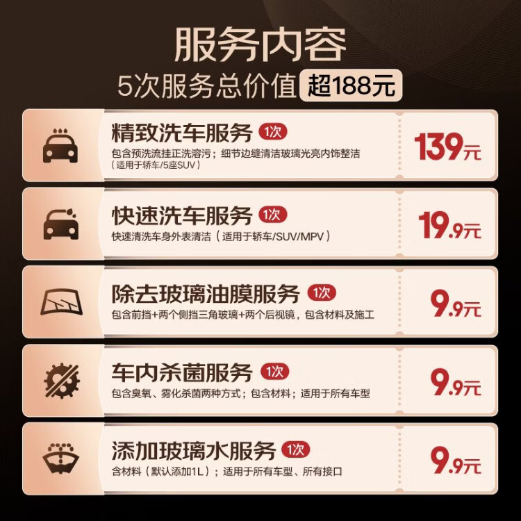Jingdong Car Ownership Exclusive Double Card Exquisite Car Wash + Quick Car Wash + Oil Remover + Sterilization + Adding Glass Water